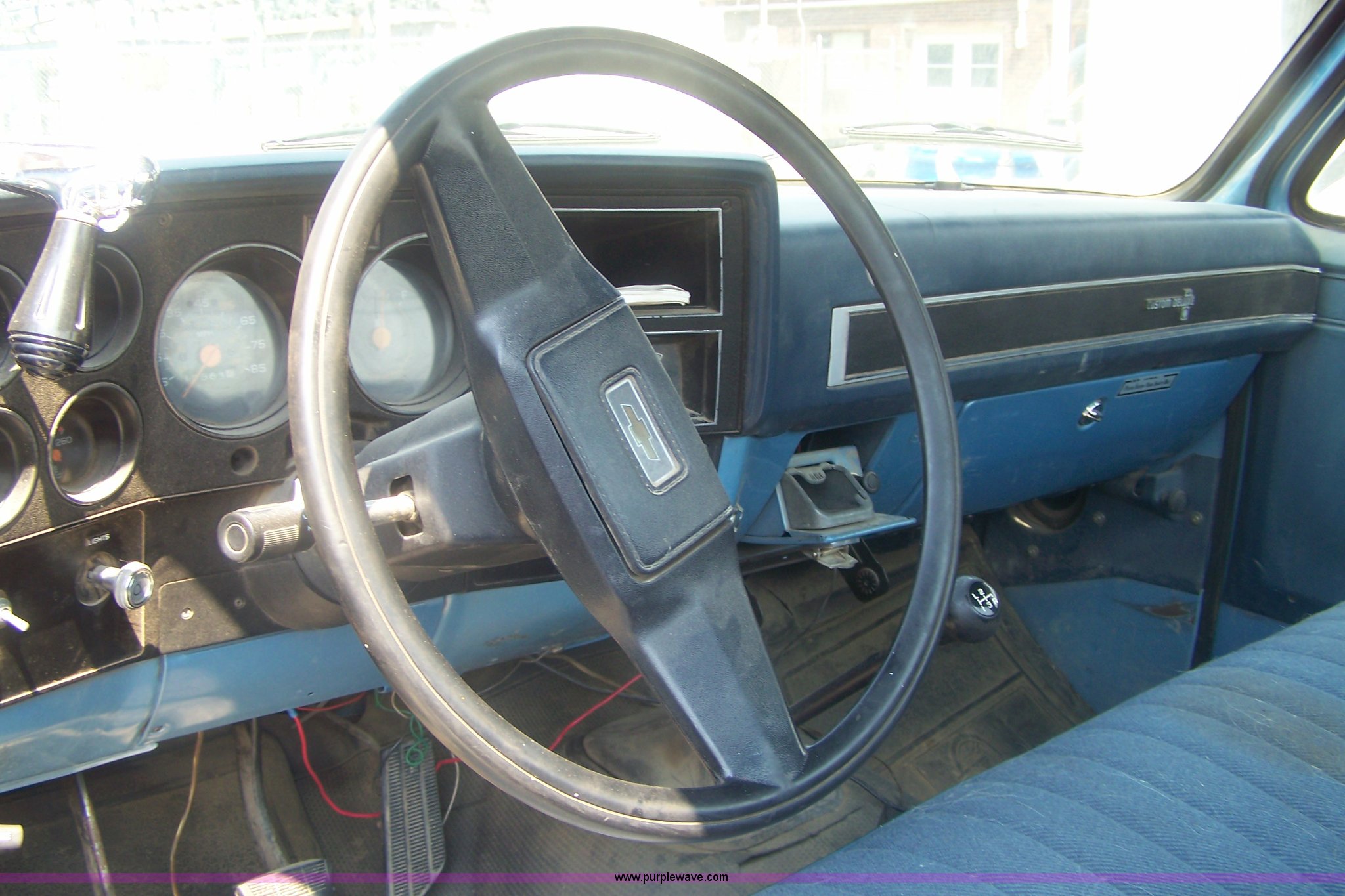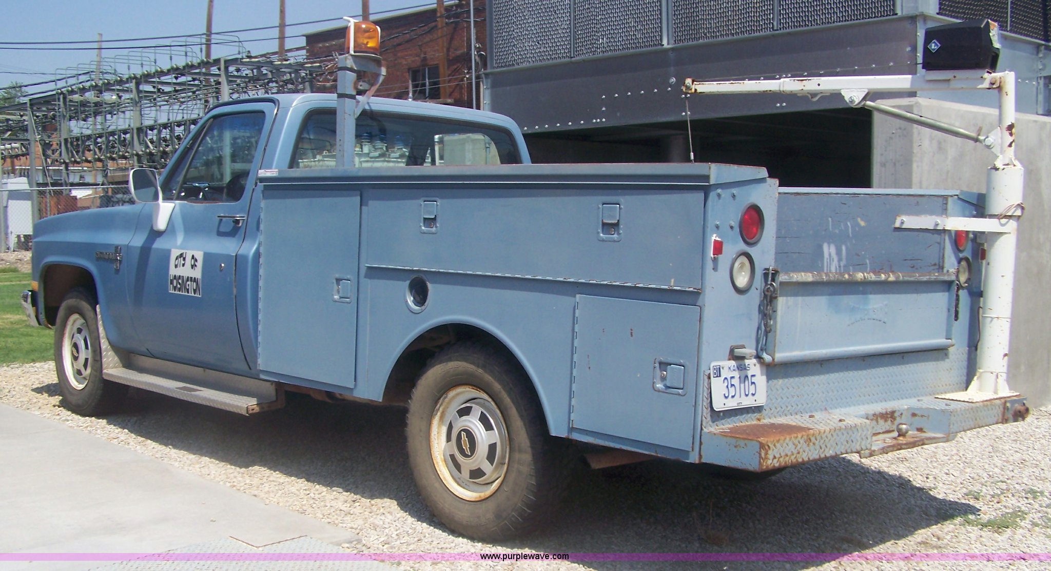 Purple Wave is selling a used Passenger Vehicle in Kansas. This item is a 1986 Chevrolet C20 Custom Deluxe pickup truck with the following: 112,563 miles on odometer, 4.8L gas engine, Four speed manual transmission, Heater, AM/FM/Cassette, Manual windows and locks, Knapheide utility bed, Strong Arm winch, 120/116N tires, Cracked windshield