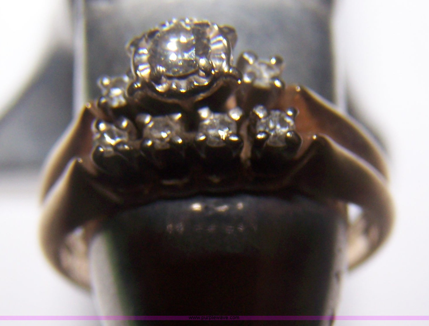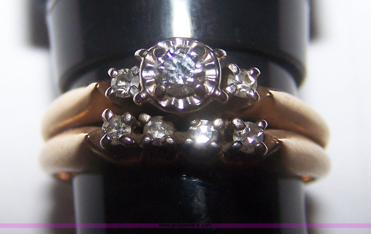 Purple Wave is selling a used Jewelery in Kansas. This item is a Women's 14k gold double band with the following: (7) diamonds, .25 total carat weight, 4.44 gram total gold weight