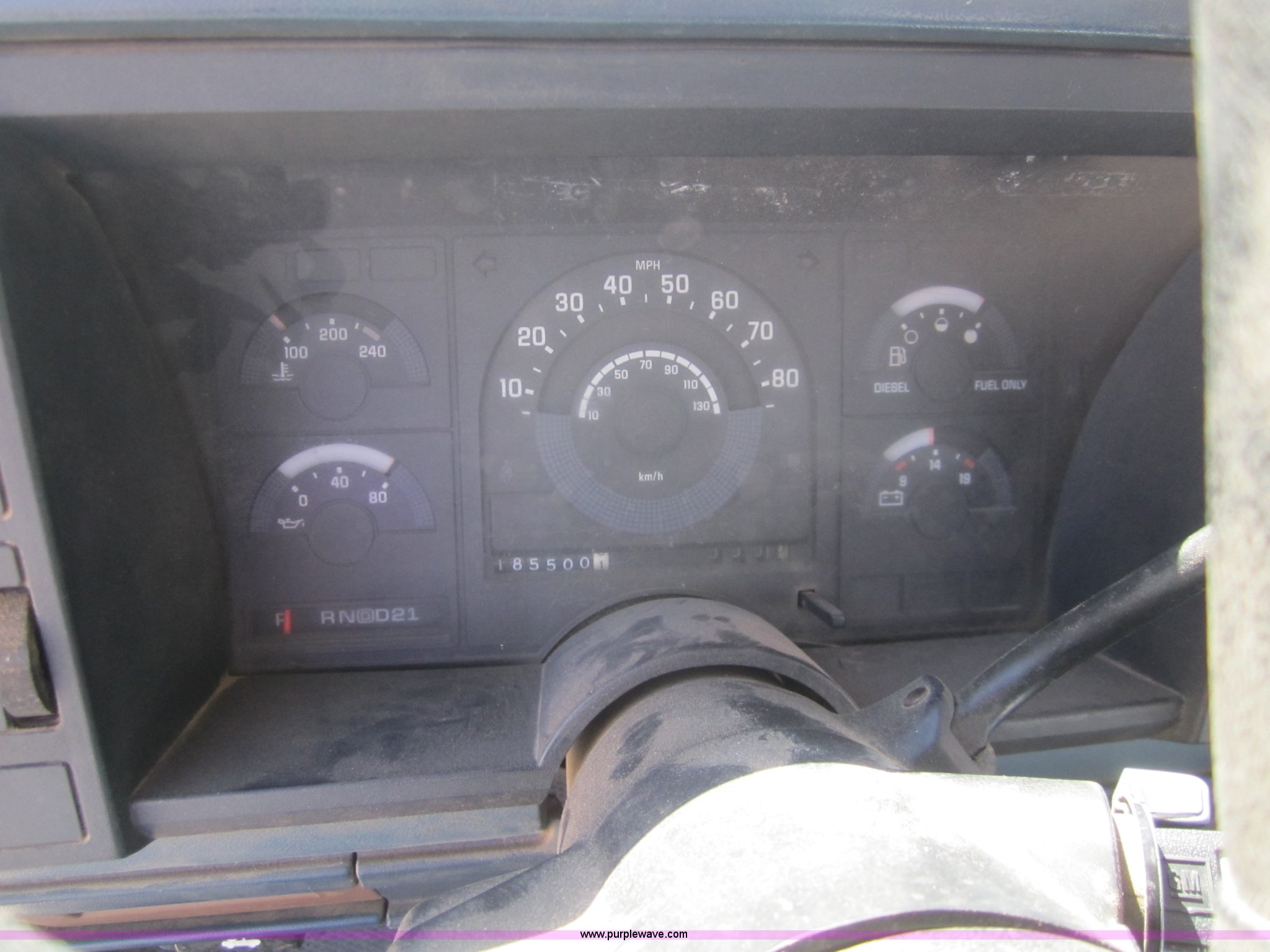 Purple Wave is selling a used Passenger Vehicle in Colorado. This item is a 1988 Chevrolet K1500 pickup truck with the following: 185,500 miles on odometer, Meter stopped working at 185,500, Hour meter installed, currently 2,381 hours, 6.2L V8 diesel engine, Automatic transmission, Four wheel drive, AC and heat, AM/FM/Cassette, Manual windows and locks, LT225/75R16 tires, Unit# 1126