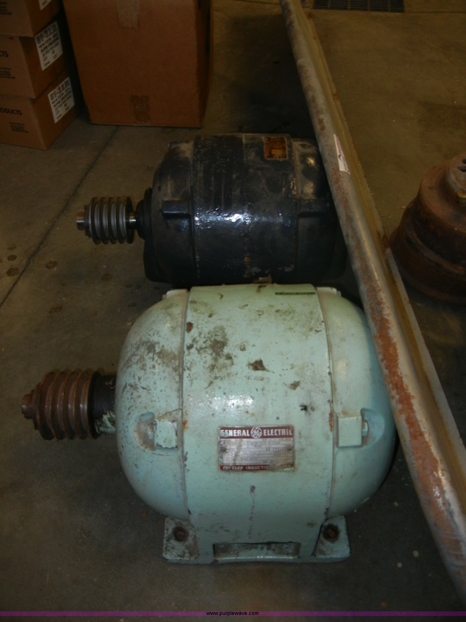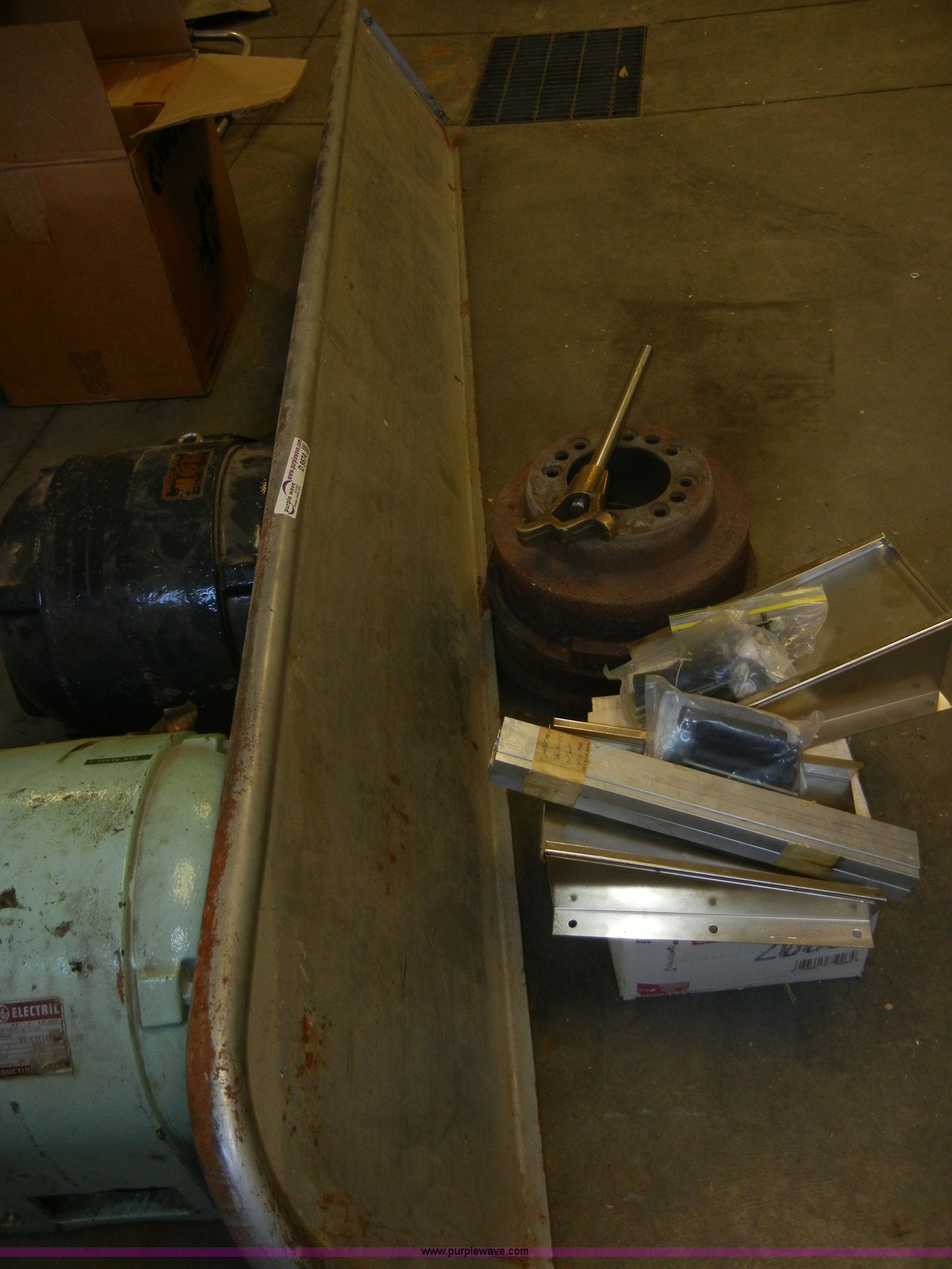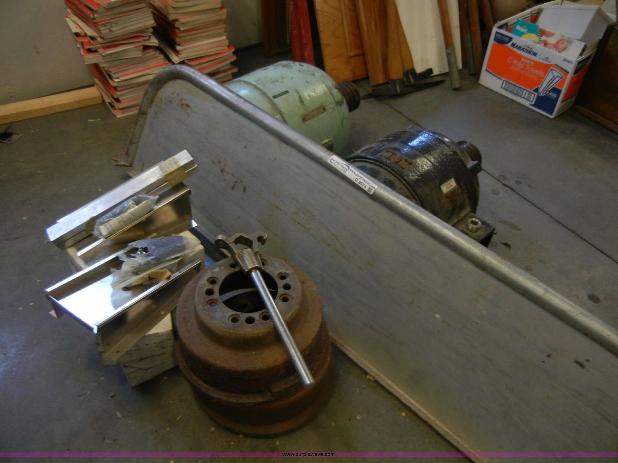 Purple Wave is selling a used Tools in Kansas. This item is a Assorted items with the following: Stainless steel firetruck divider, Roofing nails, (2) motors, GE and Sterling, 7.5 HP, Wheel hubs, And more