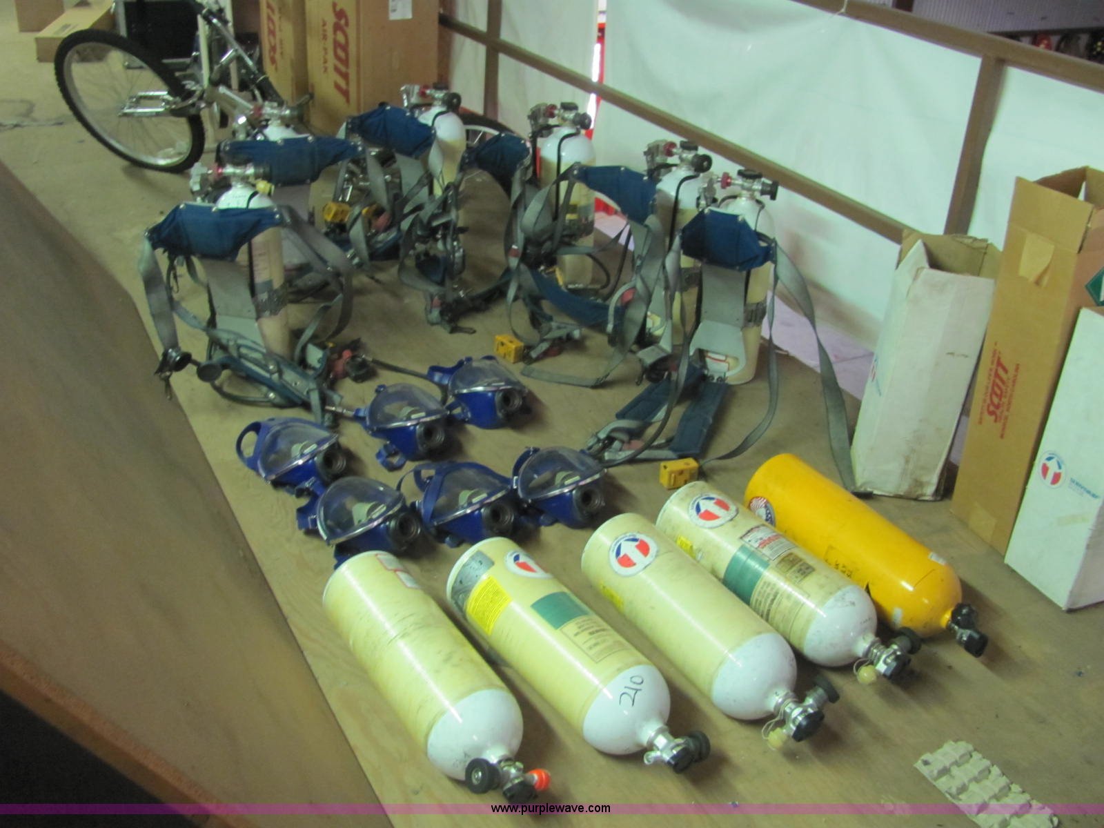 (6) Survivair SCBA units. (5) extra bottles, (2) air pack cases. City Of Lyons. 319 E Main. Lyons, KS 67554