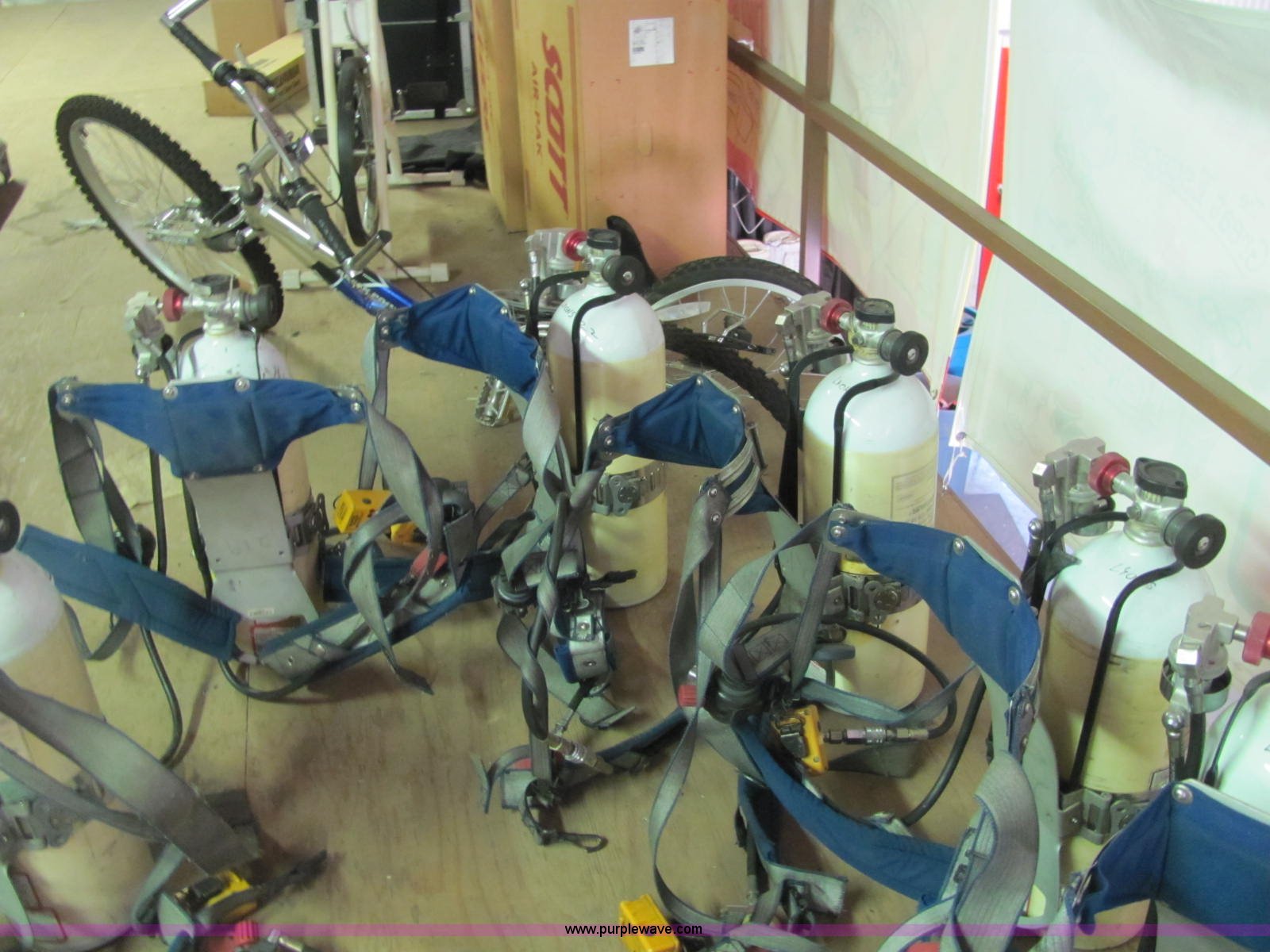 Purple Wave is selling a used Medical Equip. in Kansas. This item is a (6) Survivair SCBA units with the following: (5) extra bottles, (2) air pack cases