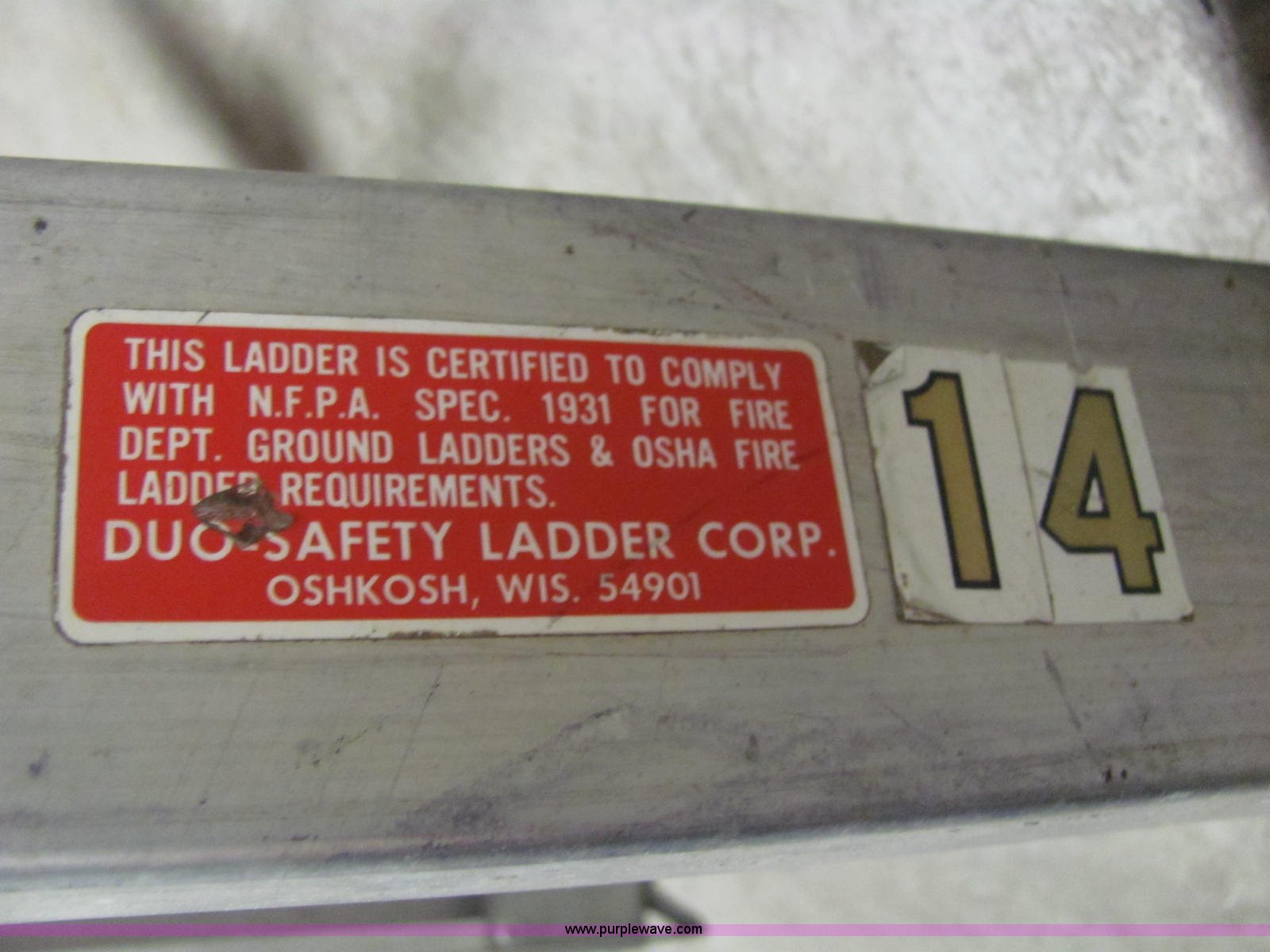 Purple Wave is selling a used Tools in Kansas. This item is a Duo safety 14' roof ladder with the following: Duo safety 14' roof ladder. City Of Lyons. 319 E Main. Lyons, KS 67554