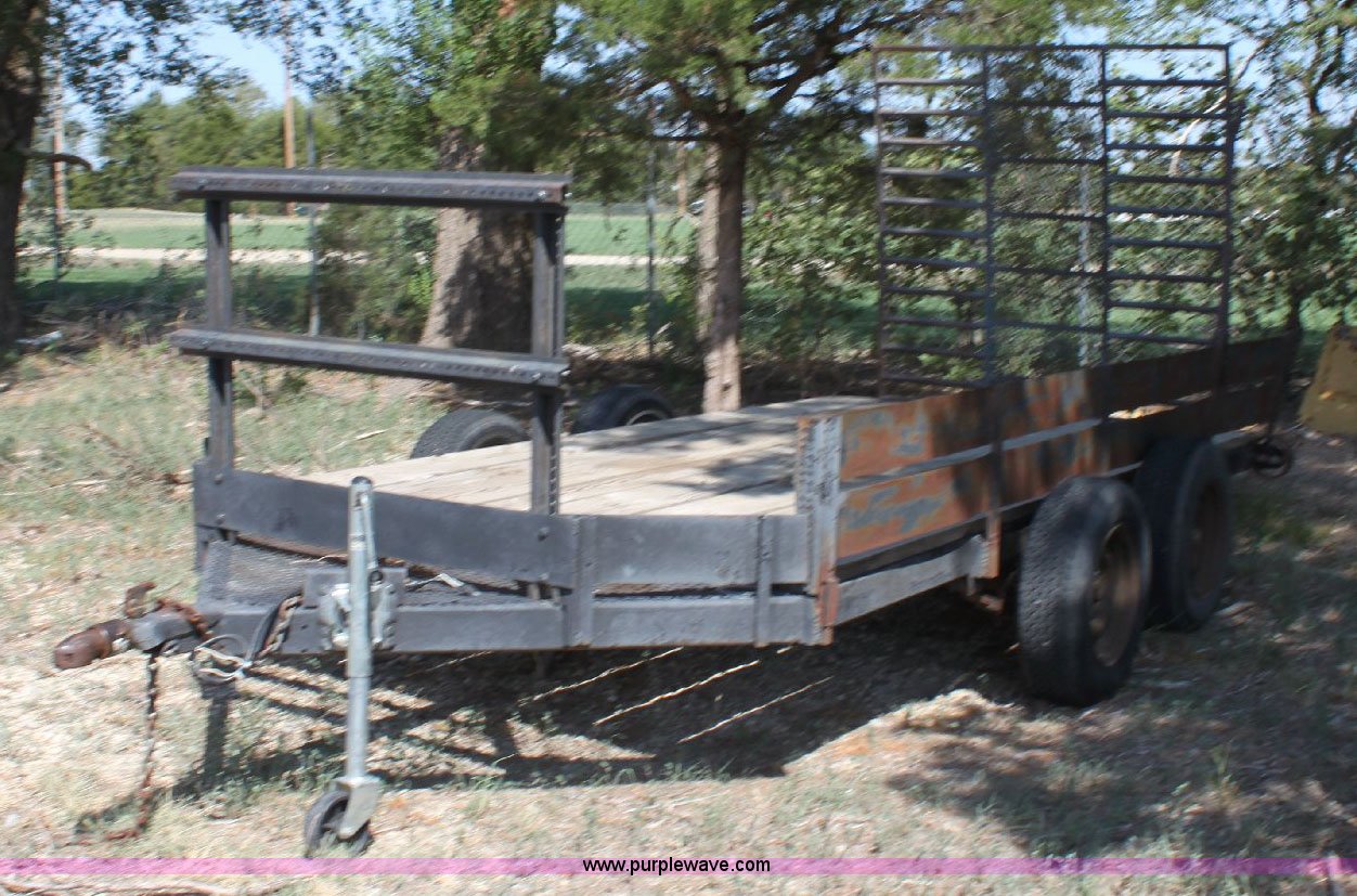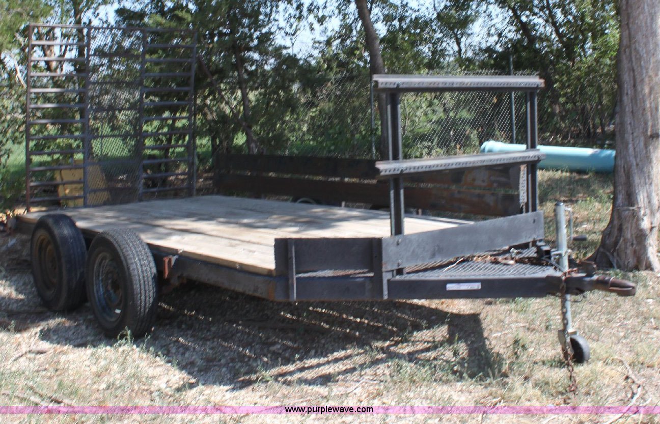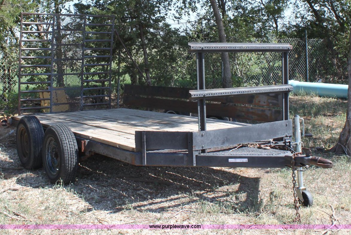 Purple Wave is selling a used Car or Utility Trailer in Kansas. This item is a Shop built tandem axle utility trailer with the following: 12' x 6' wood deck, 5' fold down ramp, 2" receiver, 195/75R14 tires