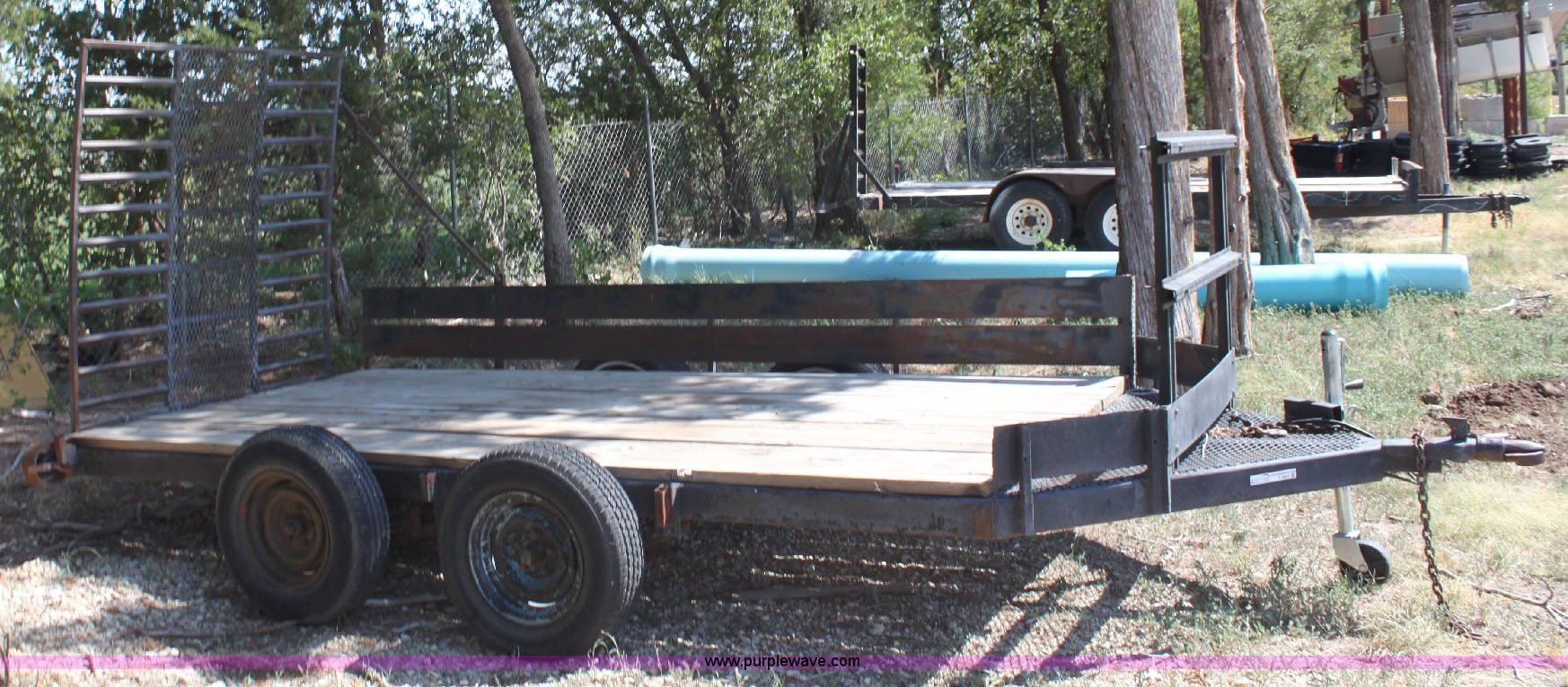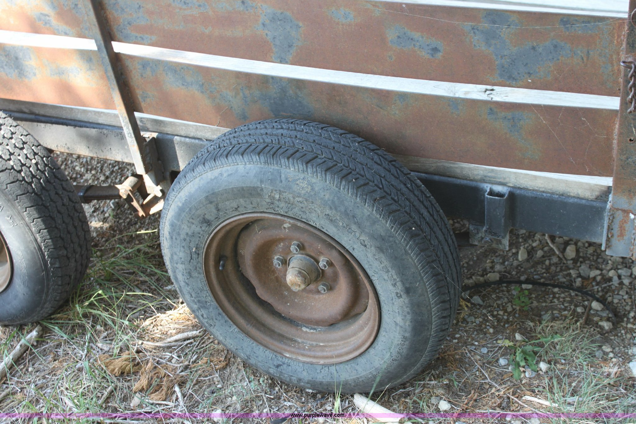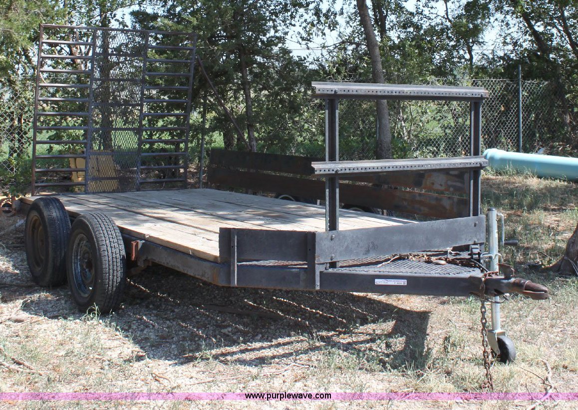 Purple Wave is selling a used Car or Utility Trailer in Kansas. This item is a Shop built tandem axle utility trailer with the following: 12' x 6' wood deck, 5' fold down ramp, 2" receiver, 195/75R14 tires
