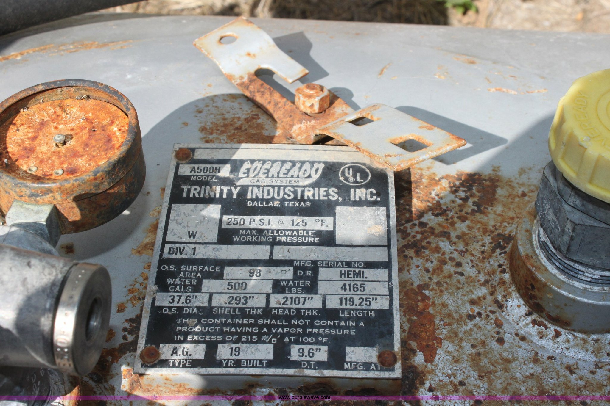 Purple Wave is selling a used Home Improvement in Kansas. This item is a Eoeready 500 gallon propane tank with the following: Eoeready 500 gallon propane tank. City Of Goddard. 118 N Main. Goddard, KS 67052