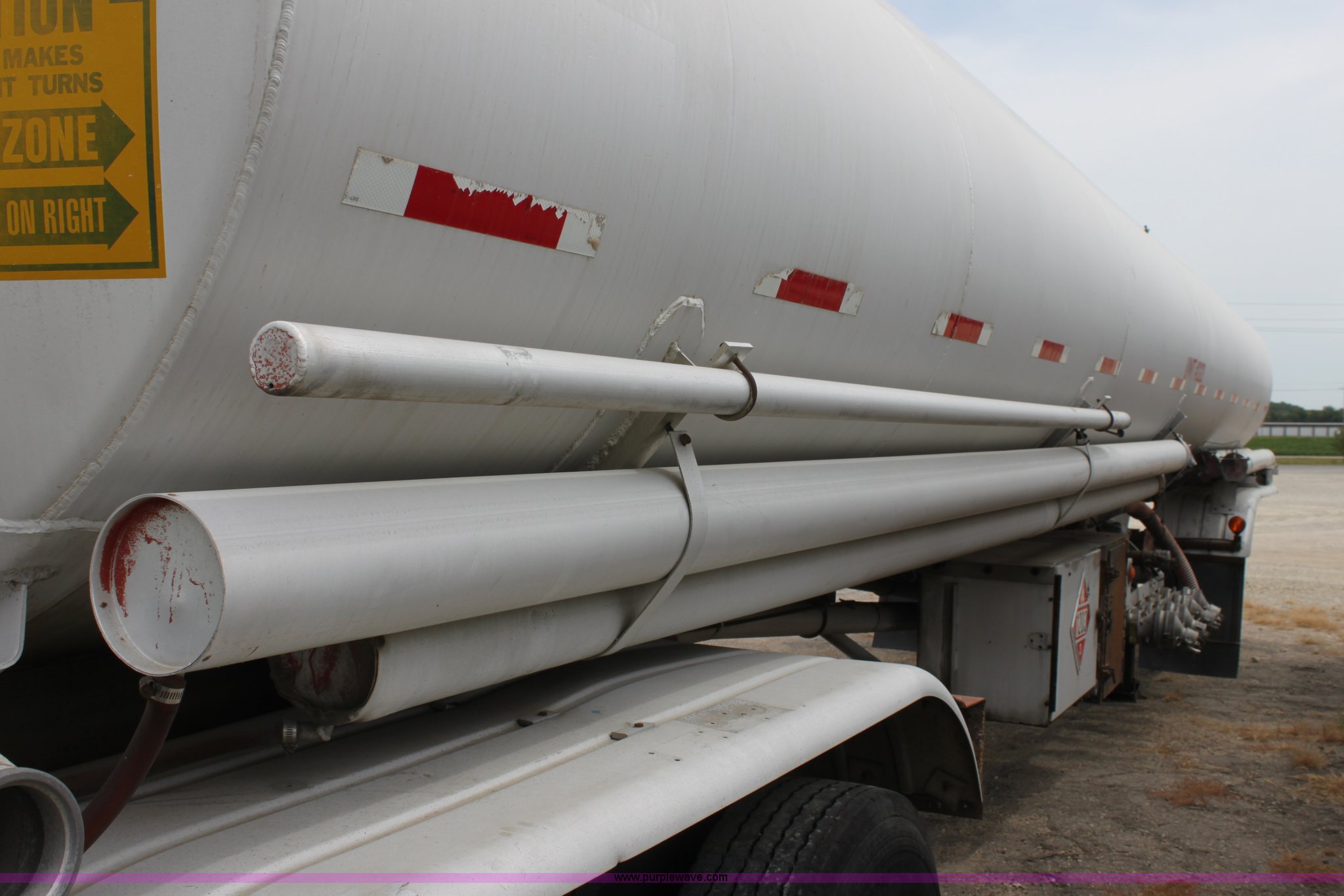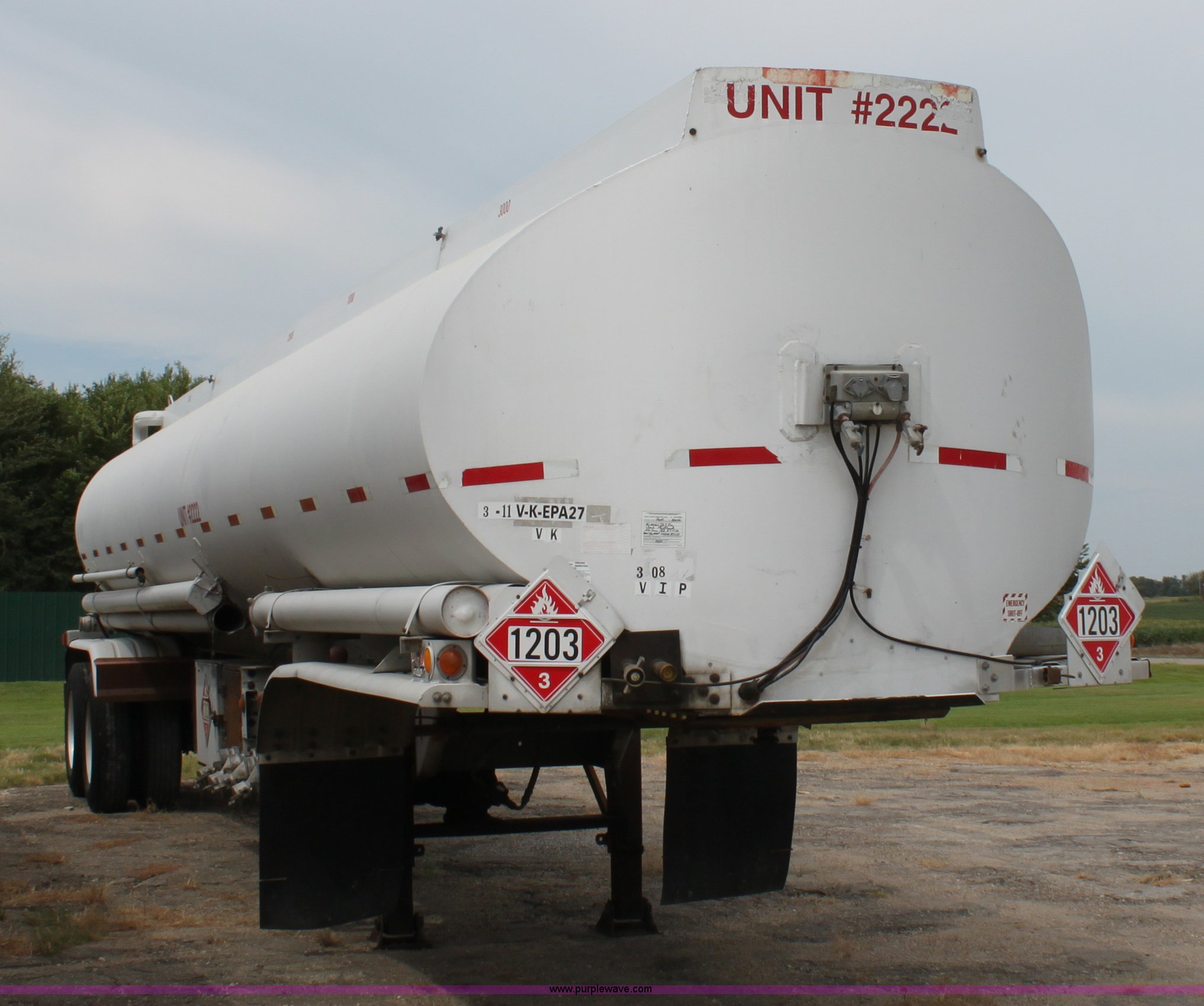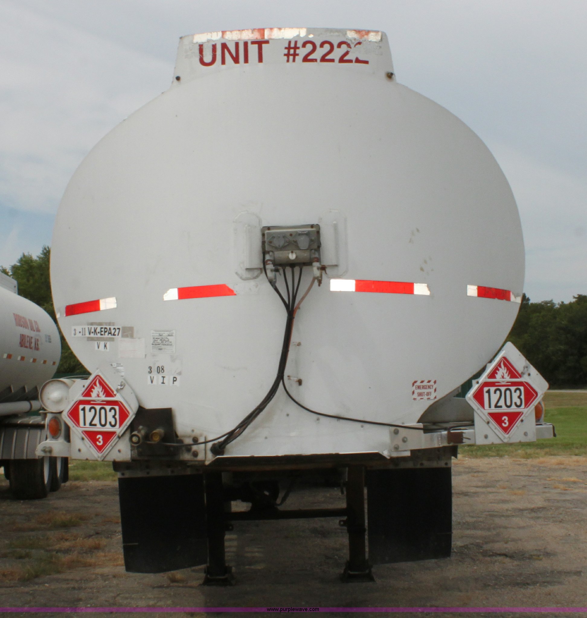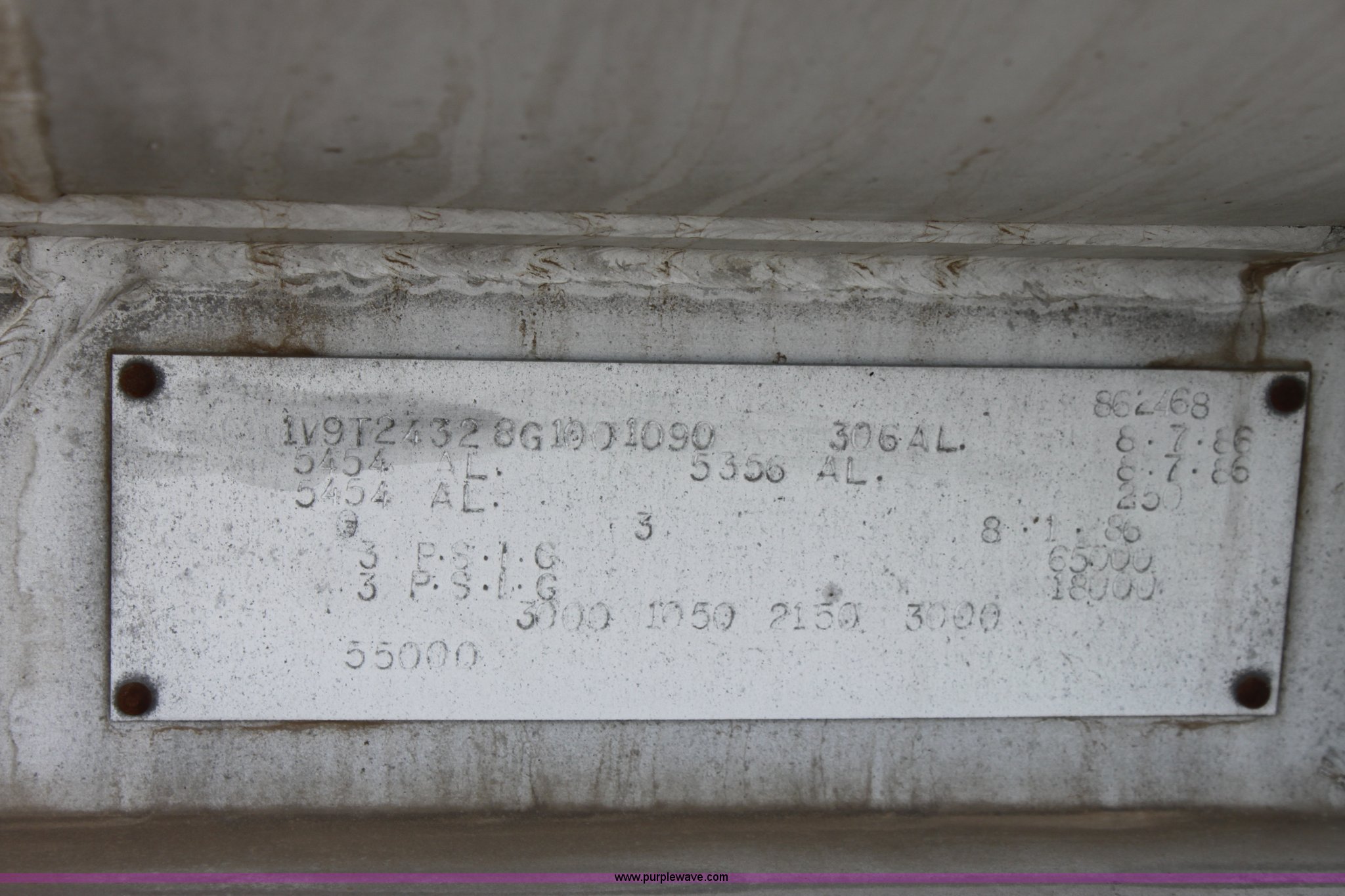 Purple Wave is selling a used Tank Trailer in Kansas. This item is a 1986 VIM tanker trailer with the following: (4) baffles, 9,200 gallon capacity, 3,000 gallons, 2,200 gallons, 1,000 gallons, 3,000 gallons, (4) 3" discharge outlets, 3" Blackmier transfer pump, Eaton hydraulic pump, Air brakes, 295/75R22.5 tires