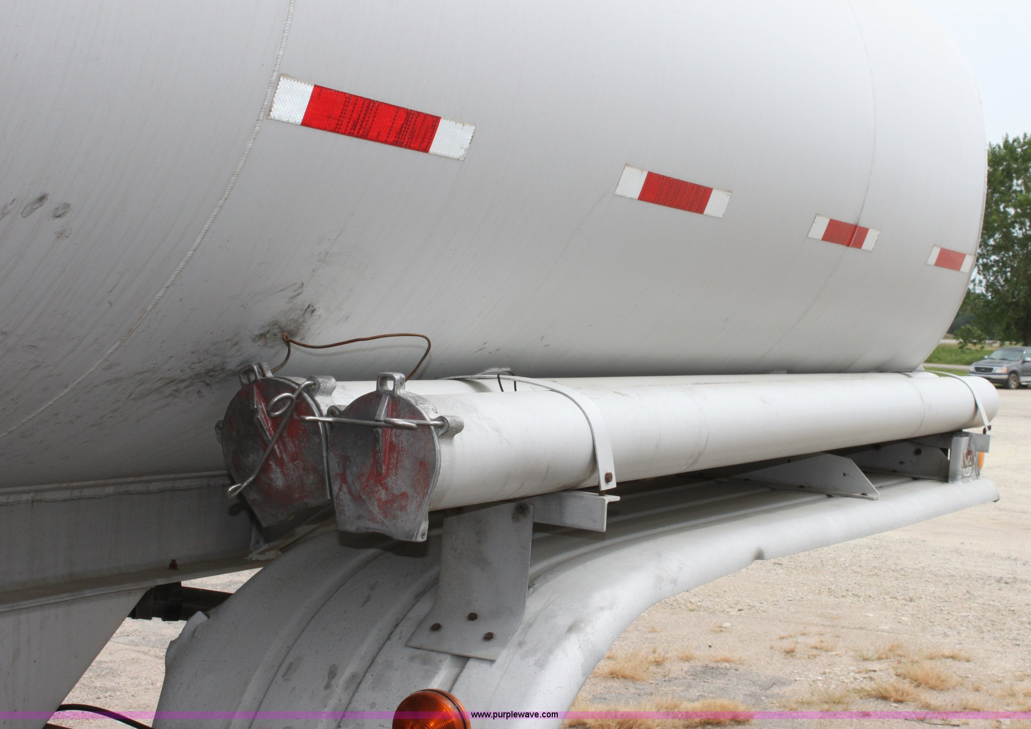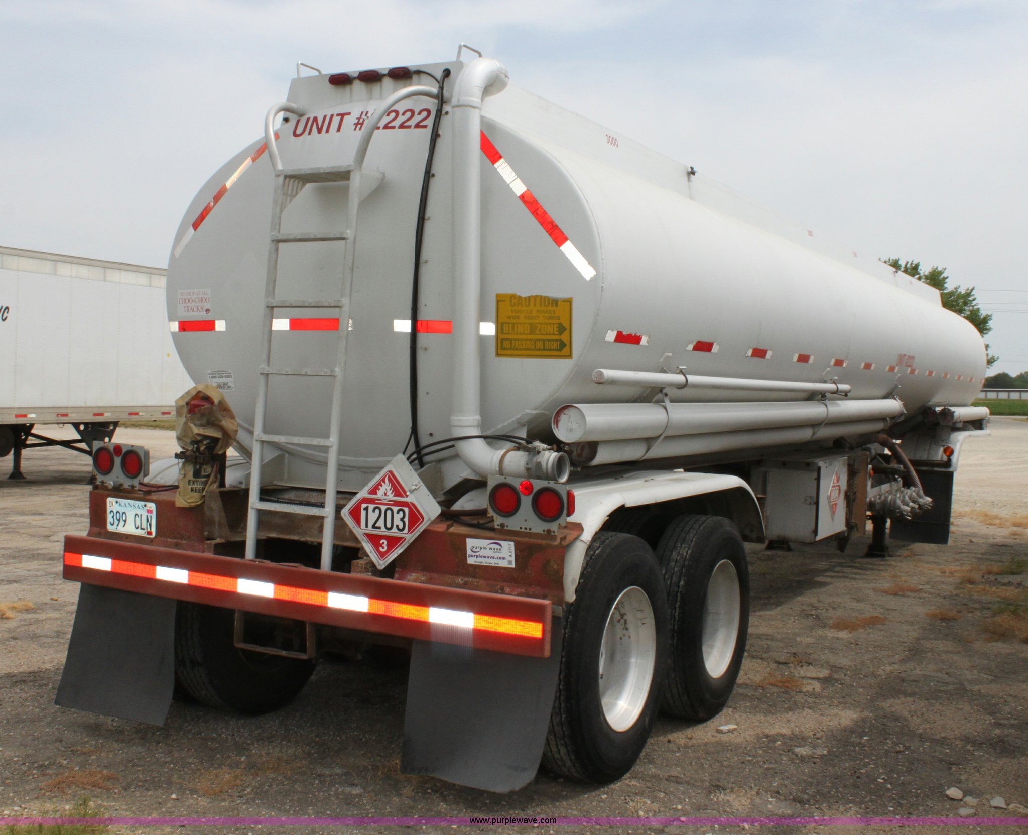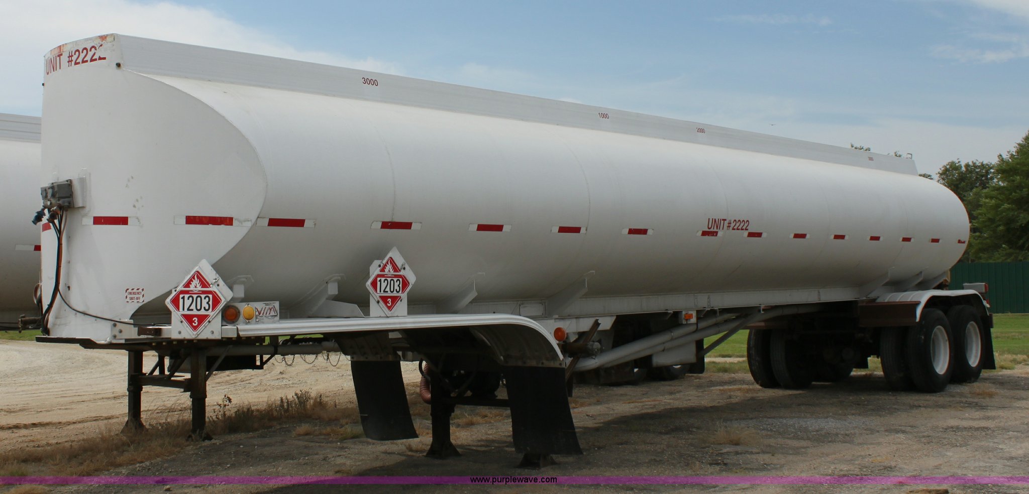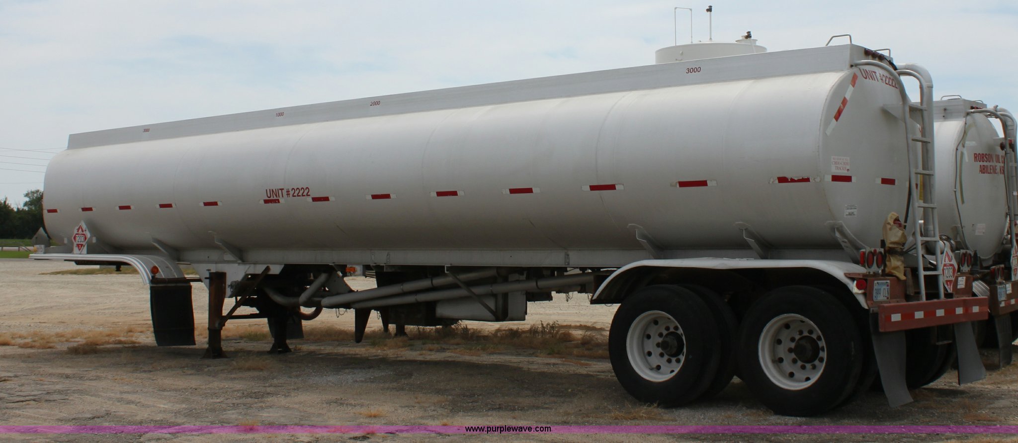 Purple Wave is selling a used Tank Trailer in Kansas. This item is a 1986 VIM tanker trailer with the following: (4) baffles, 9,200 gallon capacity, 3,000 gallons, 2,200 gallons, 1,000 gallons, 3,000 gallons, (4) 3" discharge outlets, 3" Blackmier transfer pump, Eaton hydraulic pump, Air brakes, 295/75R22.5 tires