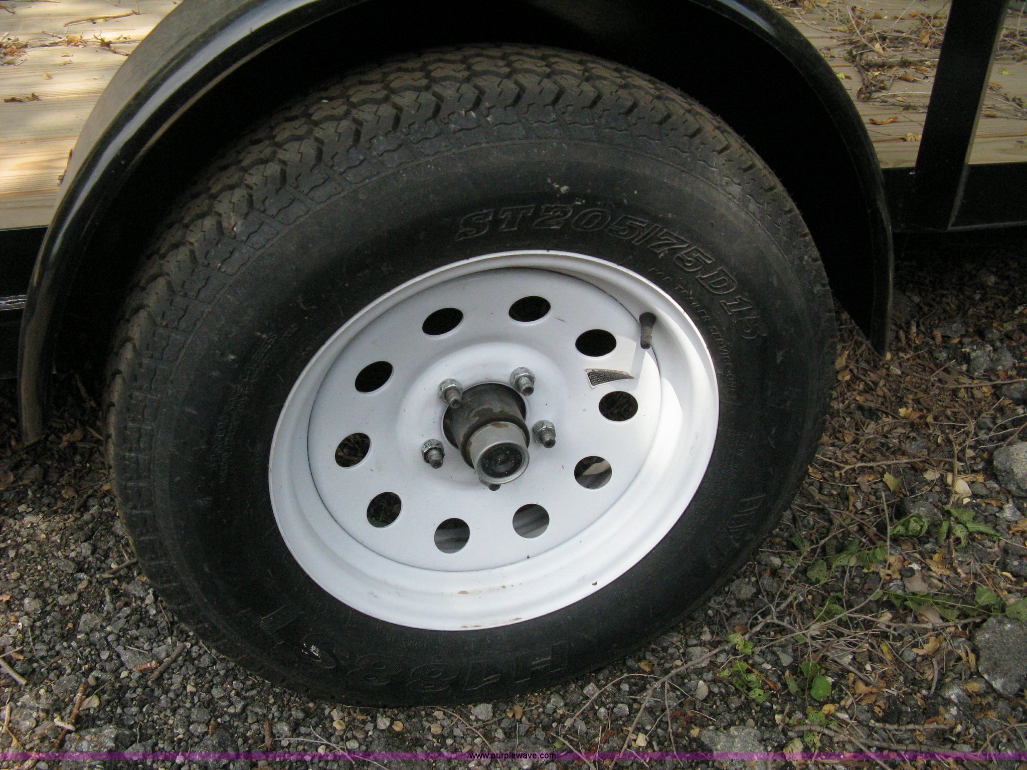 Purple Wave is selling a used Car or Utility Trailer in Kansas. This item is a 2011 Liberty flatbed trailer with the following: 12.5'L x 6'W, 6'W x 4.2'L pin-up/drop down ramp, 2x6 wood floor, 12" side rail, Easy lube hub, 5-lug wheels, Trailer lights, 2" ball hitch, Brake-away chains, ST205/75D15 tires, New