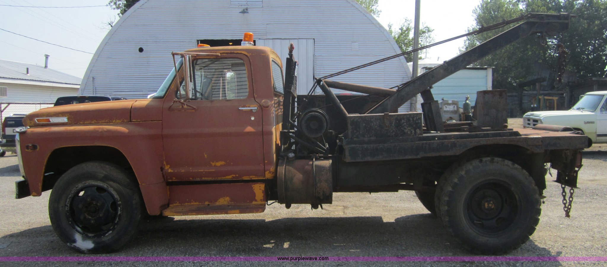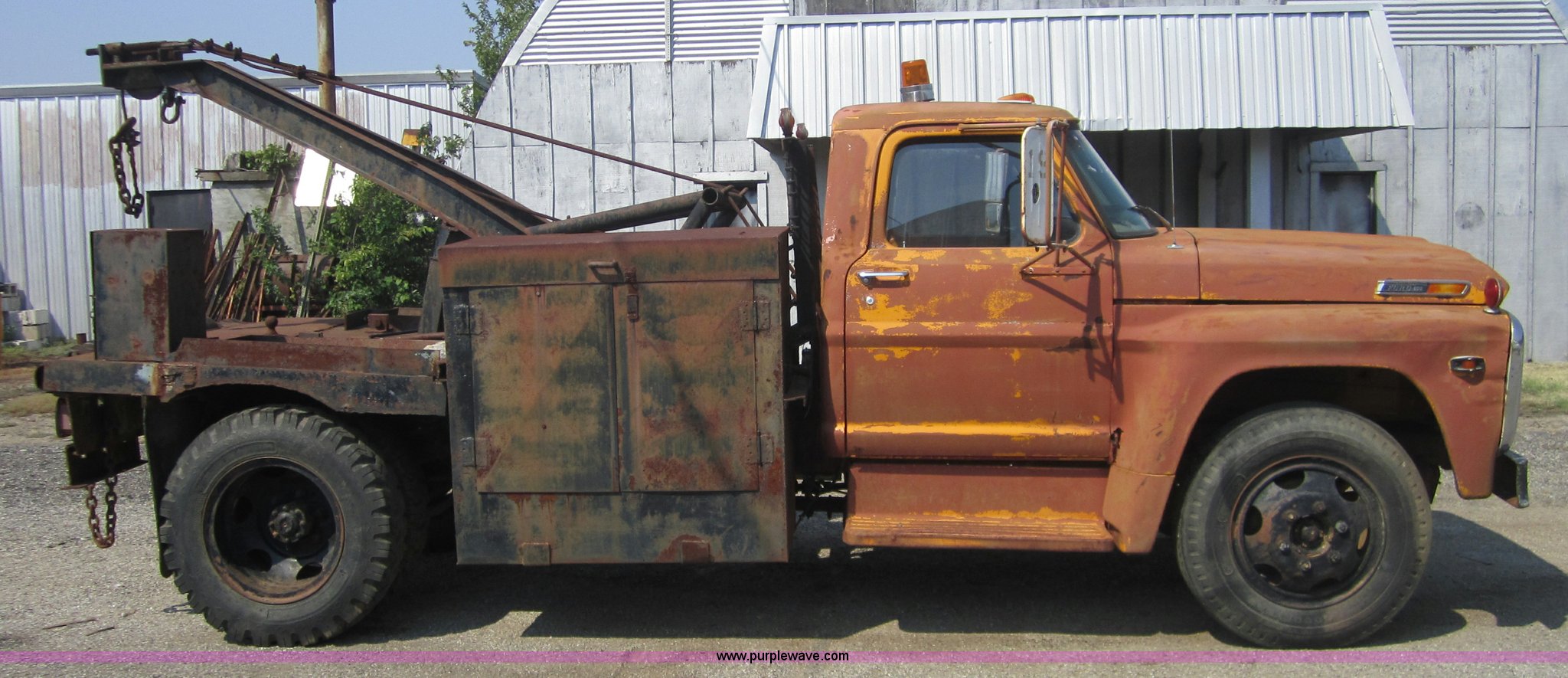 Purple Wave is selling a used Rollback or Tow Truck in Kansas. This item is a 1969 Ford F600 winch truck with the following: 13,791 miles on odometer, V8 gas engine, Manual transmission, Braden 25 ton winch, Wisconsin gas powered air compressor, PTO, Recently replaced battery, 8.25-20 tires, Includes sling, Brakes worn