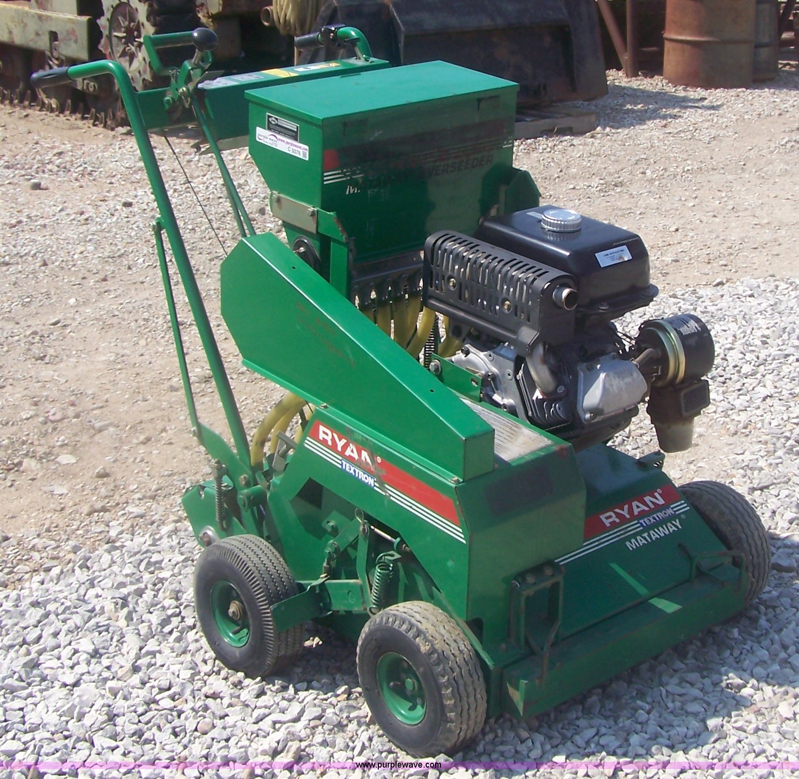 Purple Wave is selling a used Lawn and Garden in Kansas. This item is a Ryan Mataway Textron overseeder with the following: Recently replaced Kohler engine, Serial 86252