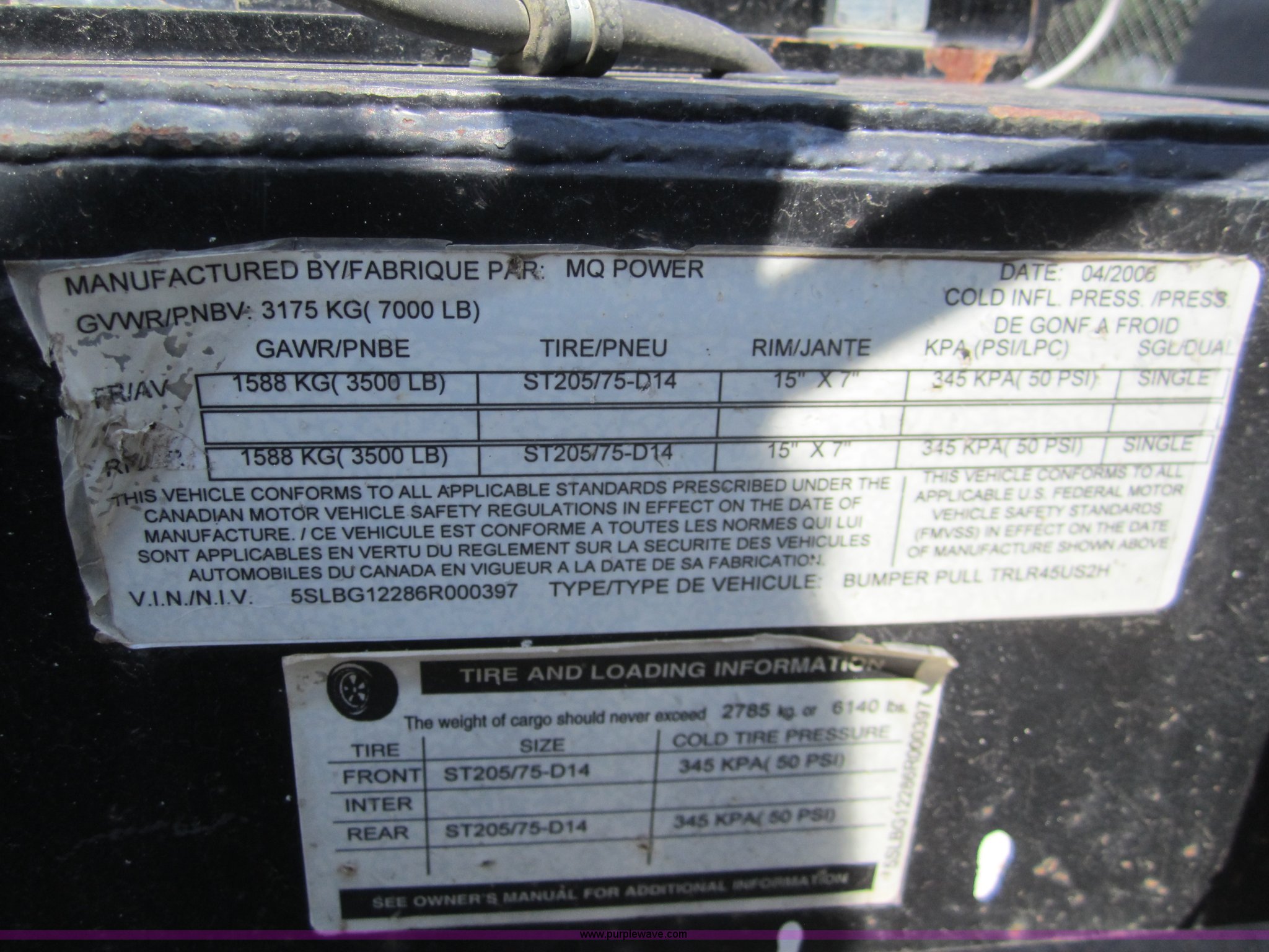 Purple Wave is selling a used Trailer Other in Colorado. This item is a 2006 MQ Power tandem axle trailer with the following: 4' x 8', Pintle hitch, 205/75R14 tires