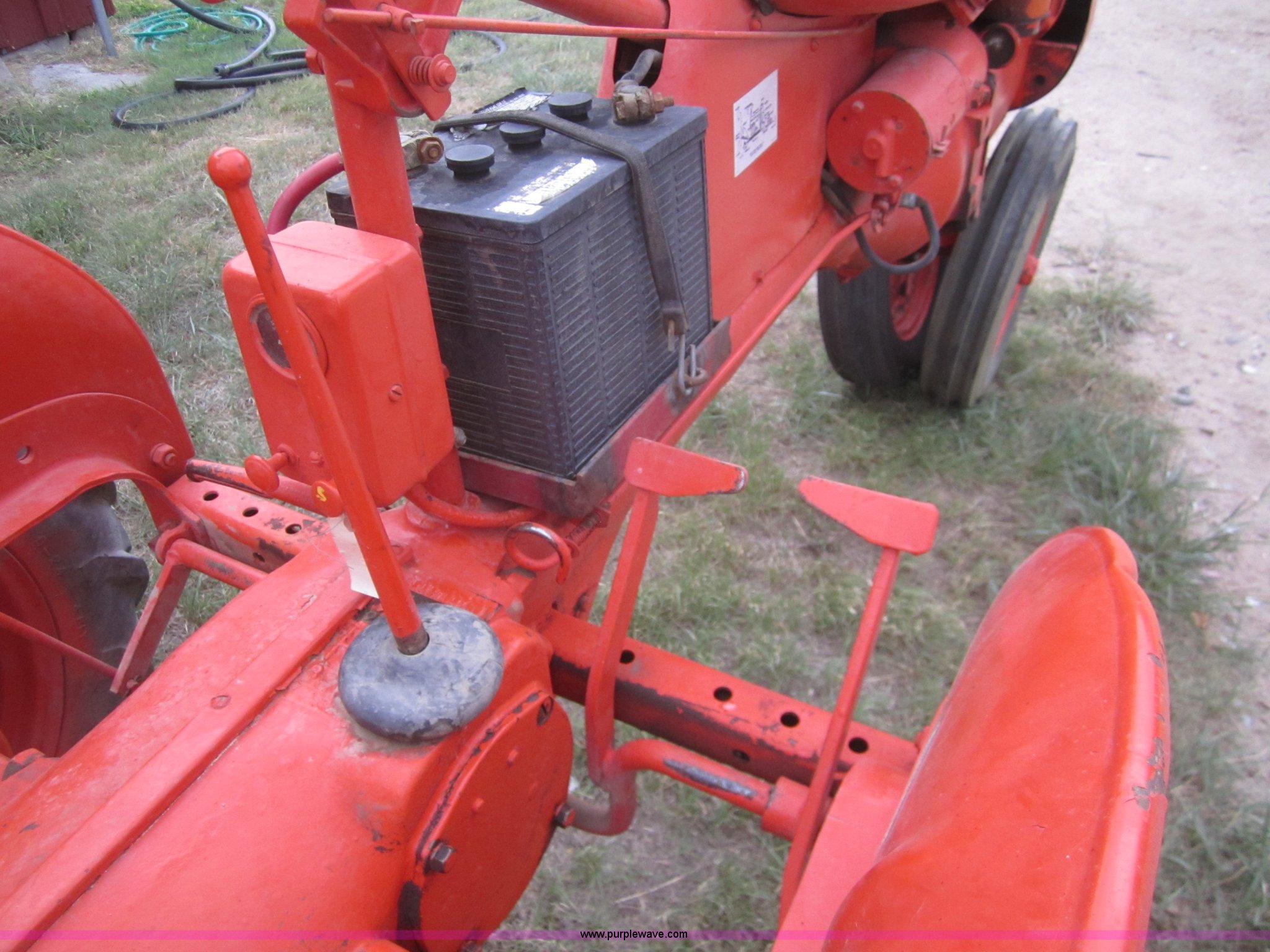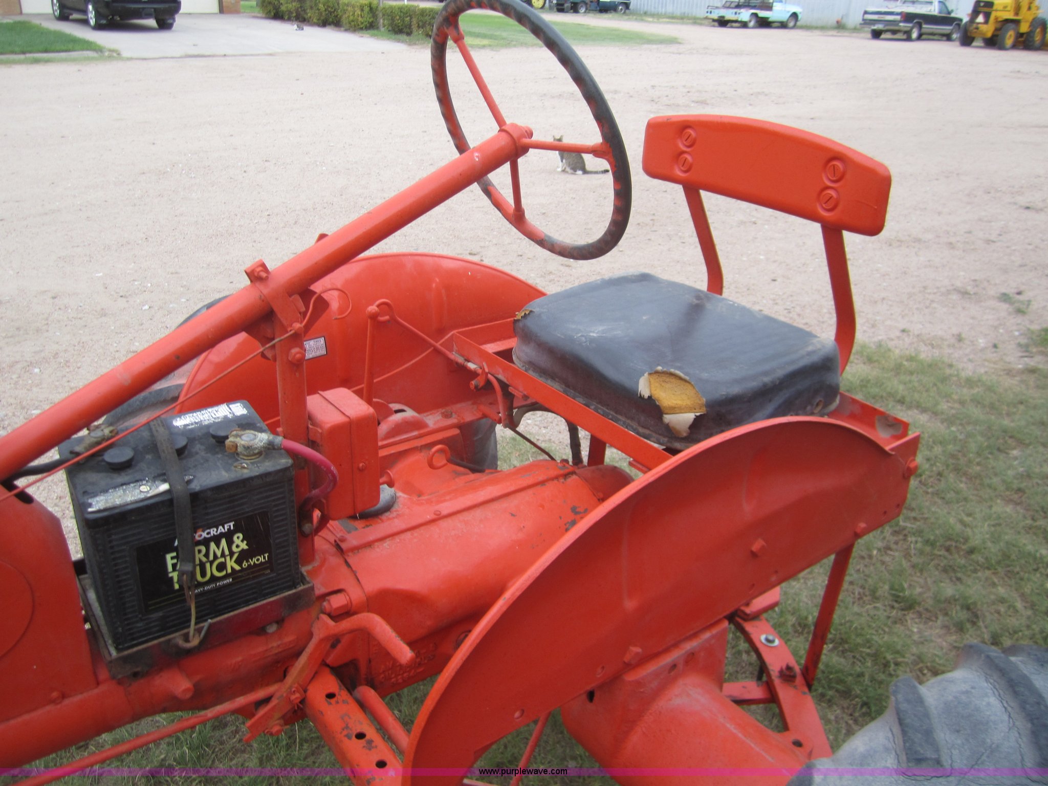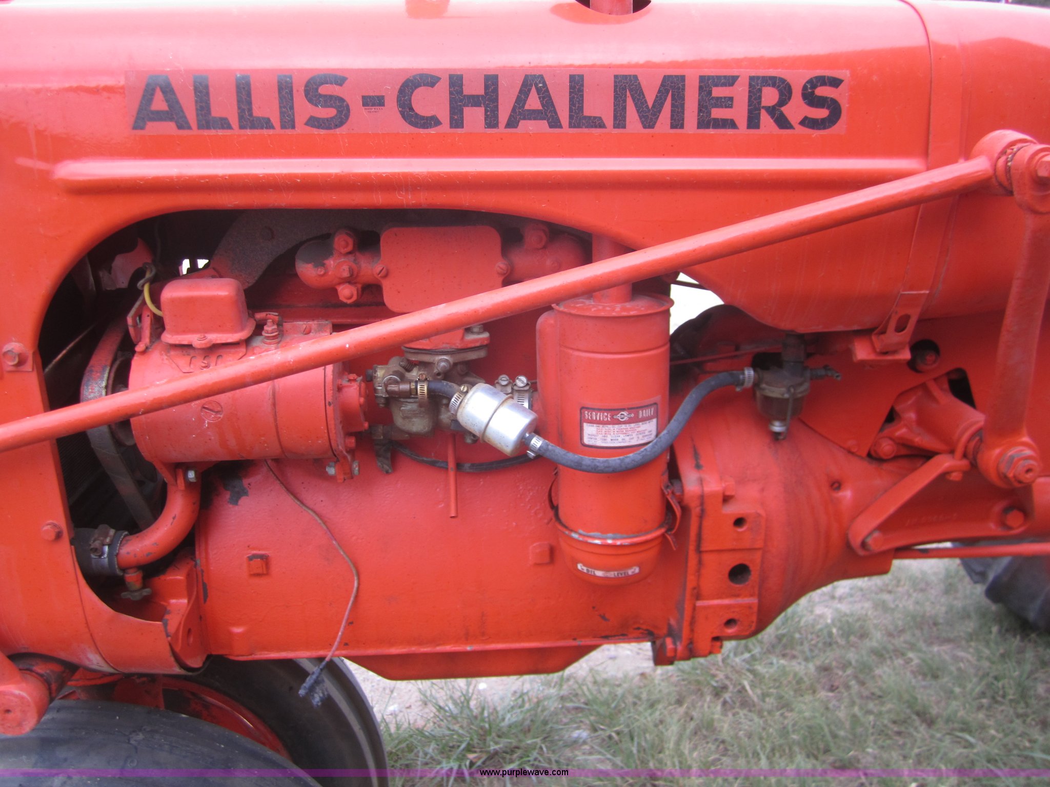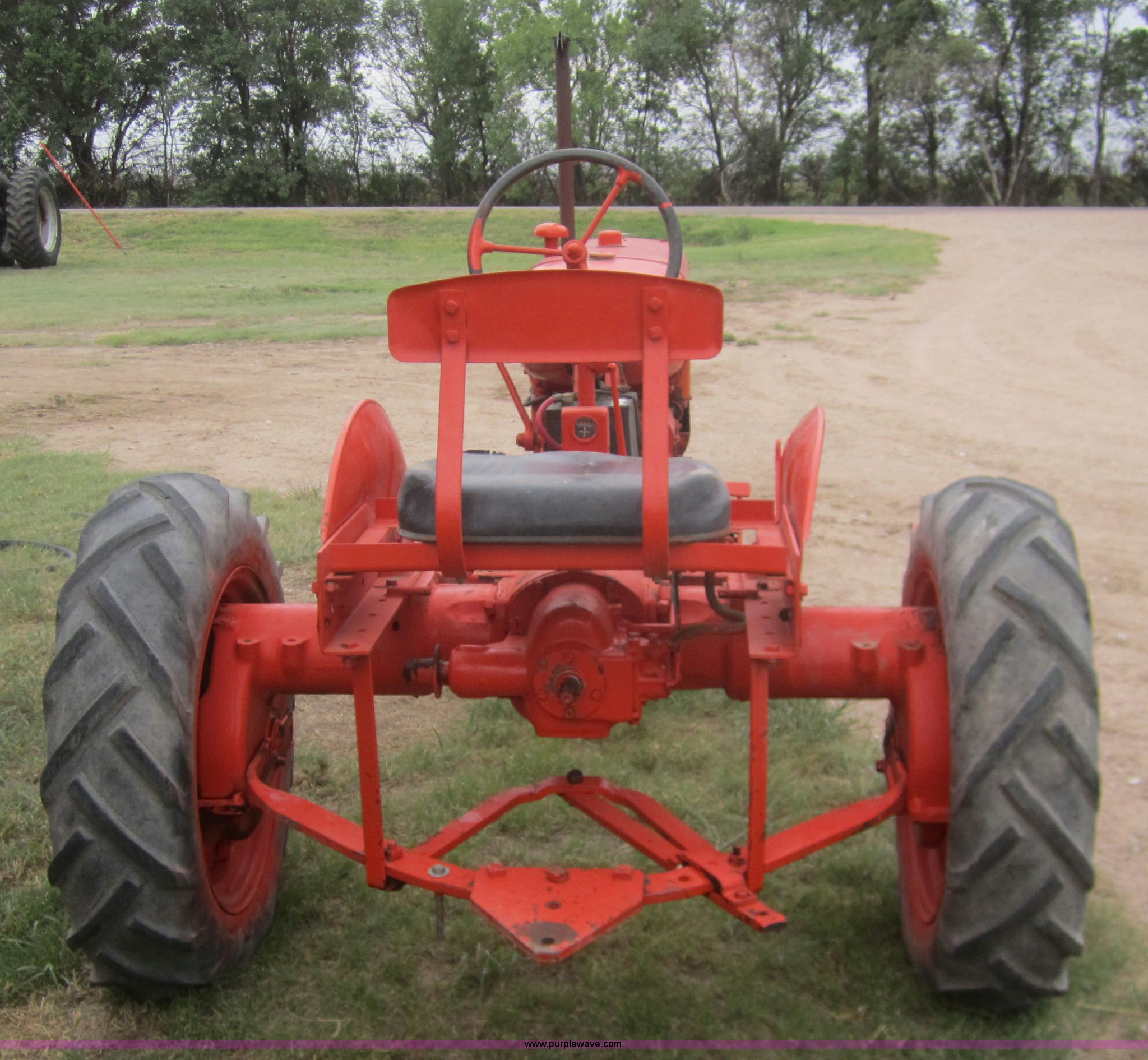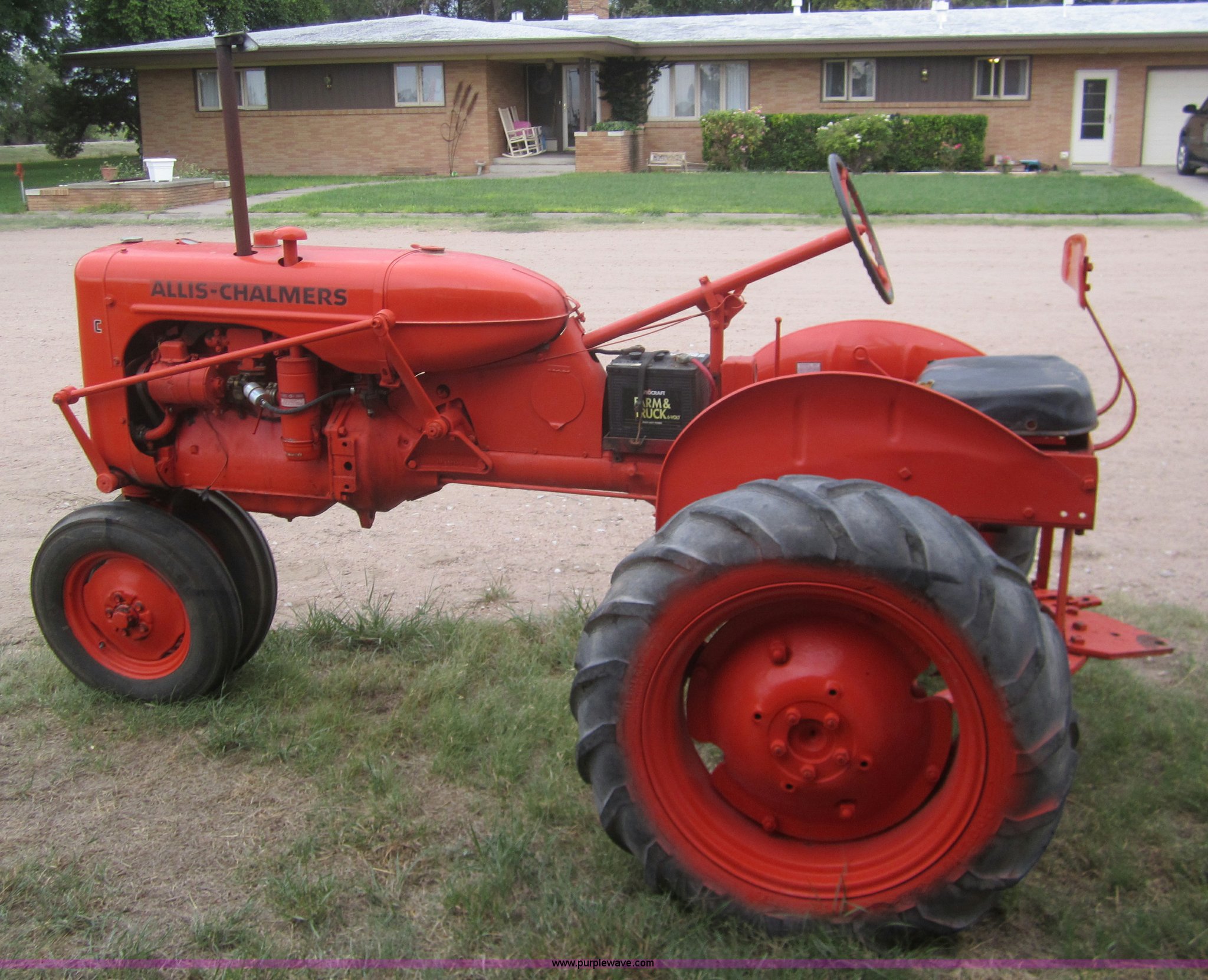 Purple Wave is selling a used Tractor in Kansas. This item is a 1947 Allis Chalmers C tractor with the following: Four cylinder gas engine, PTO, Draw bar, Belt pulley, New seat included, 9.00-24 rear tires, 5.00-15 front tires, 69" wheelbase, Serial 48252