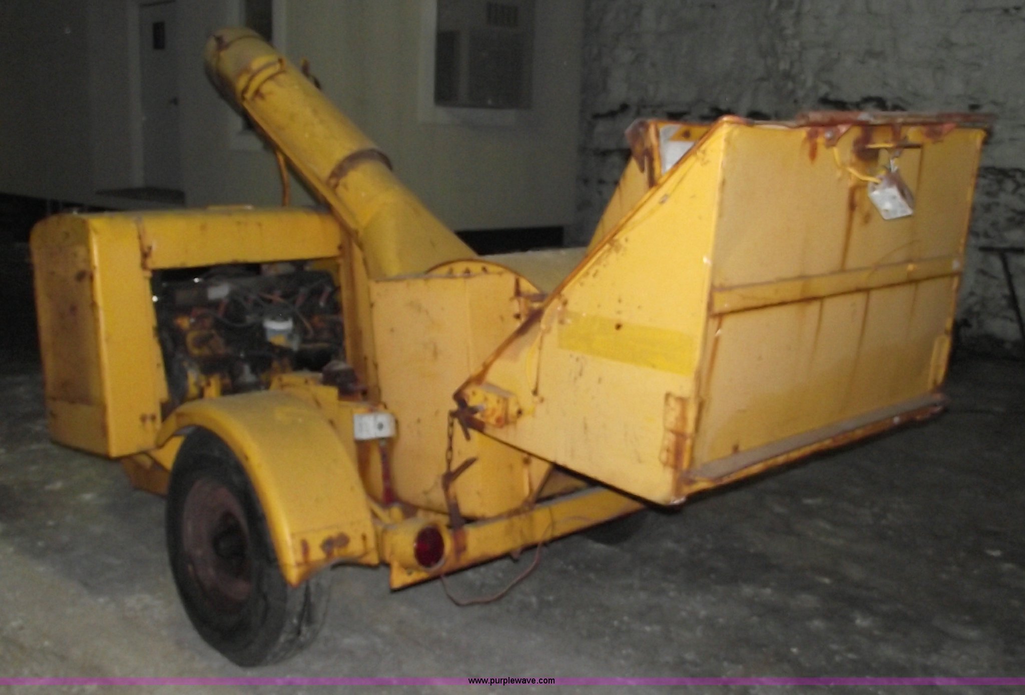 Purple Wave is selling a used Wood Chipper or Stump Grinder in Missouri. This item is a Mits M&M wood chipper with drum cutter with the following: 78 hours on meter, Hours may vary, Actual hours unknown, Ford 4.9L six cylinder gas engine, Liquid cooled, 12 volt, Electric start, 2" ball