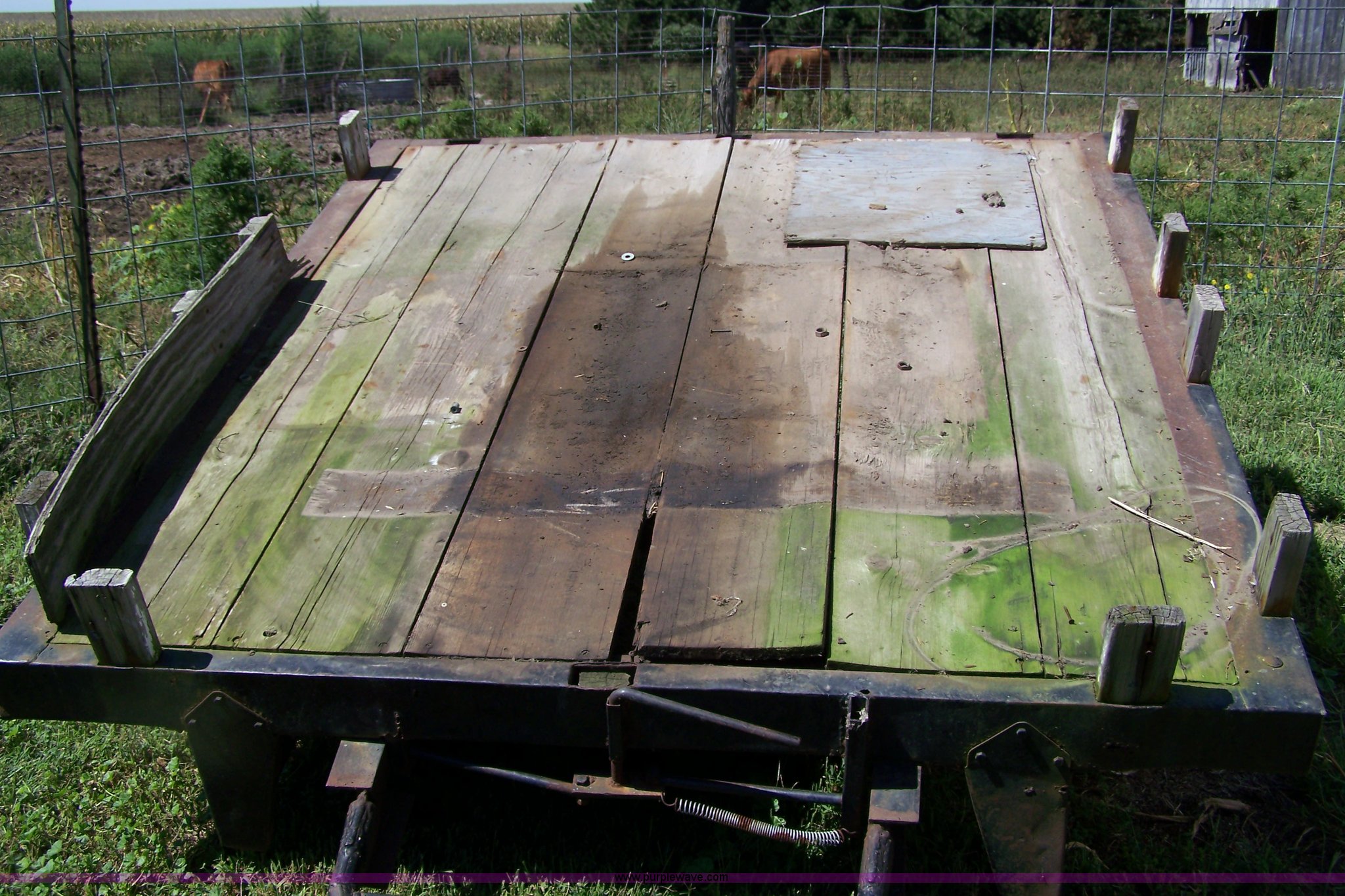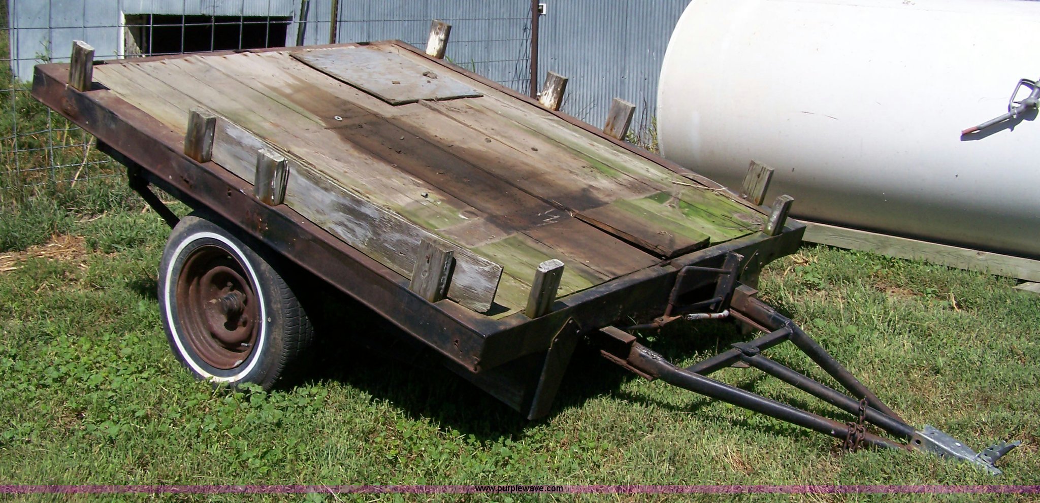 Purple Wave is selling a used Car or Utility Trailer in Kansas. This item is a Shop built two wheel trailer with the following: Tilt bed, 6'W x 81"L, 2" ball, P195/75R14 tires