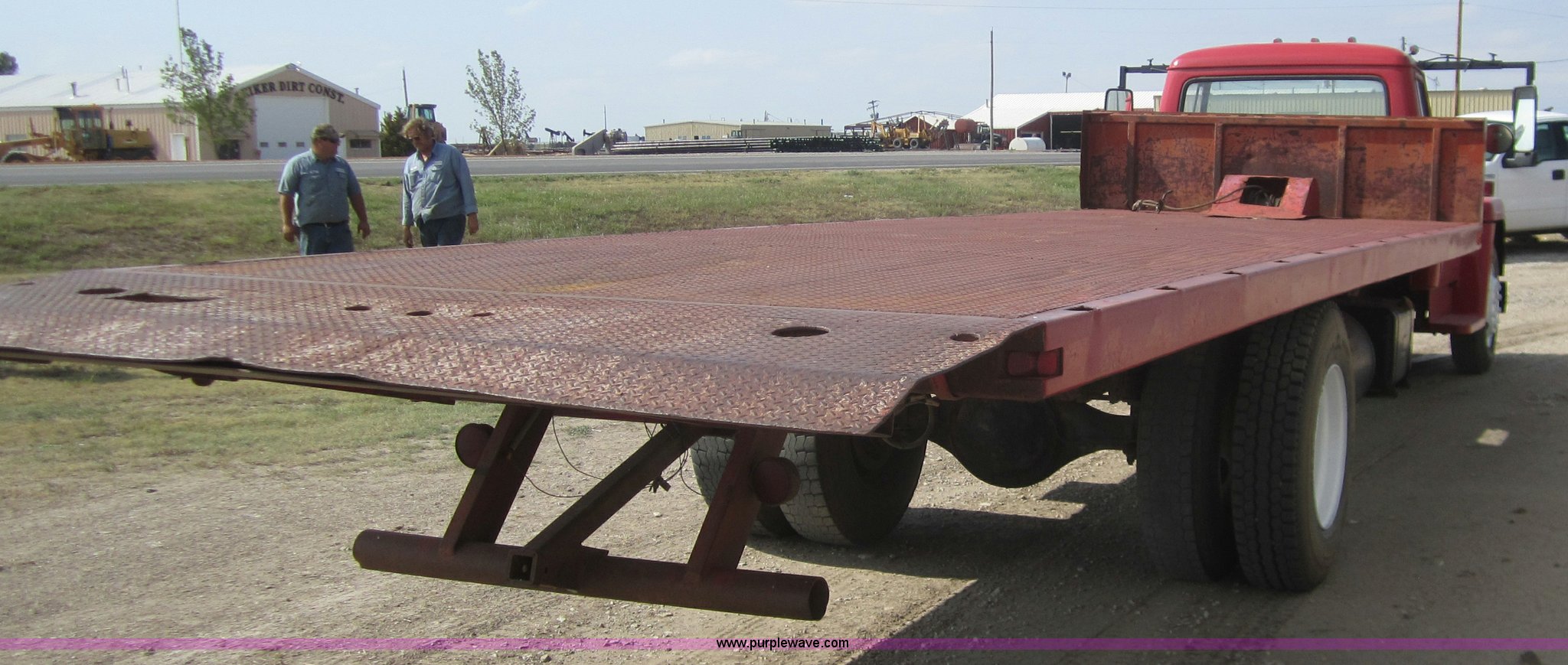 Purple Wave is selling a used Flat Bed Truck in Kansas. This item is a 1973 International LoadStar 700 rollback truck with the following: 25,309 miles on odometer, 392 V8 gas engine, Five speed manual transmission with two speed rear end, 24'L x 8'W steel bed, Steel cable winch, 8.25-20 front tires, 11R22.5 rear tires