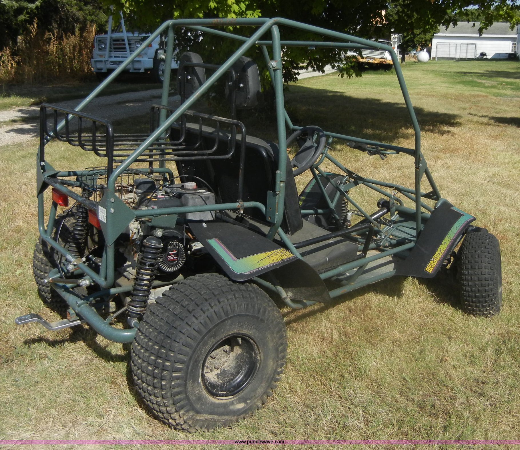 Purple Wave is selling a used ATV in Kansas. This item is a Deuce two person go kart with the following: Tecumseh 12 HP engine, Forward and reverse, Rear tow hitch, 20x7.00-8 front tires, 25x12-9 rear tires