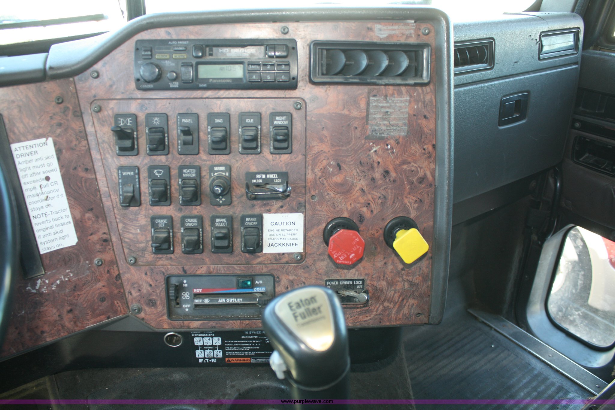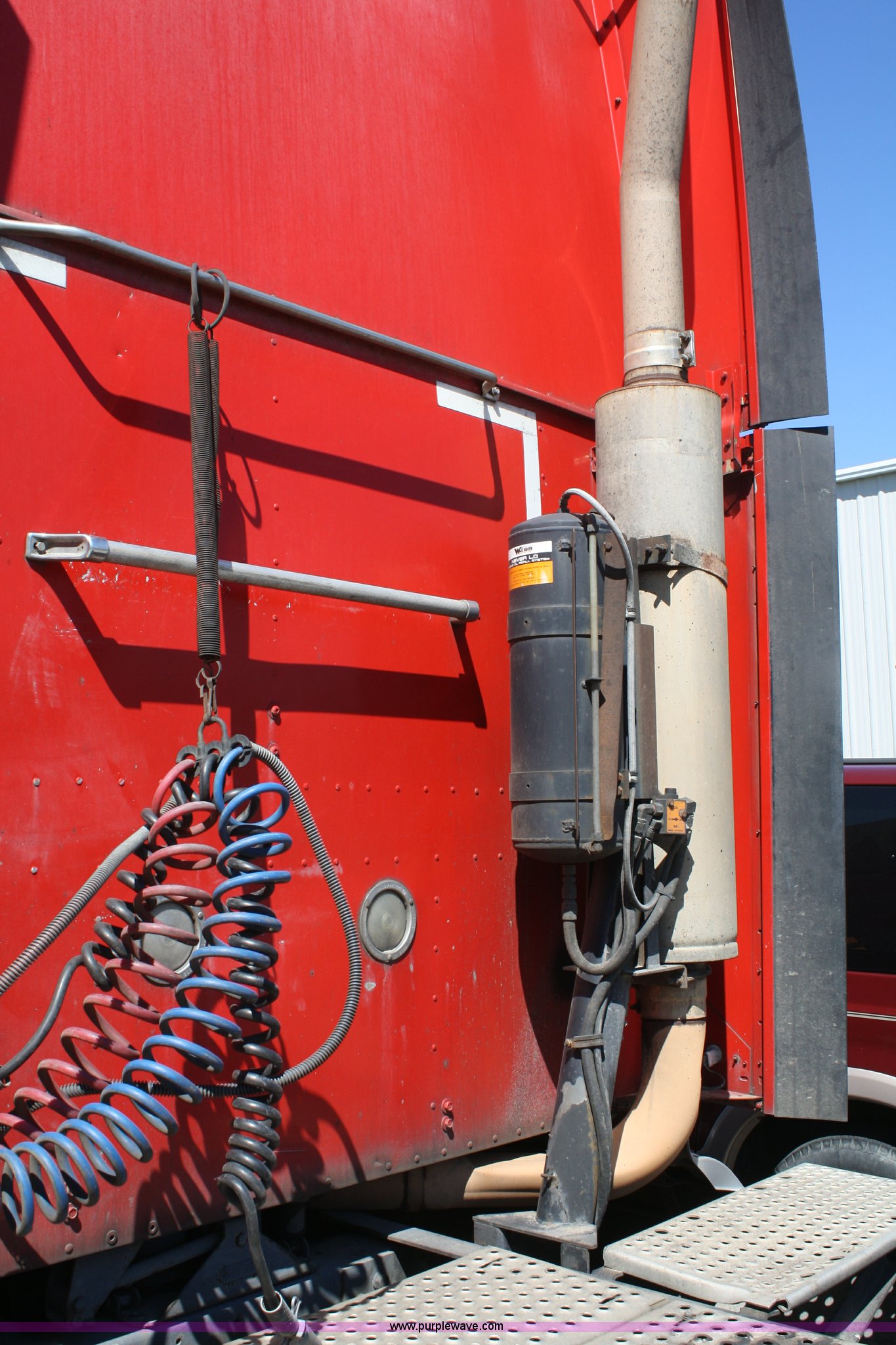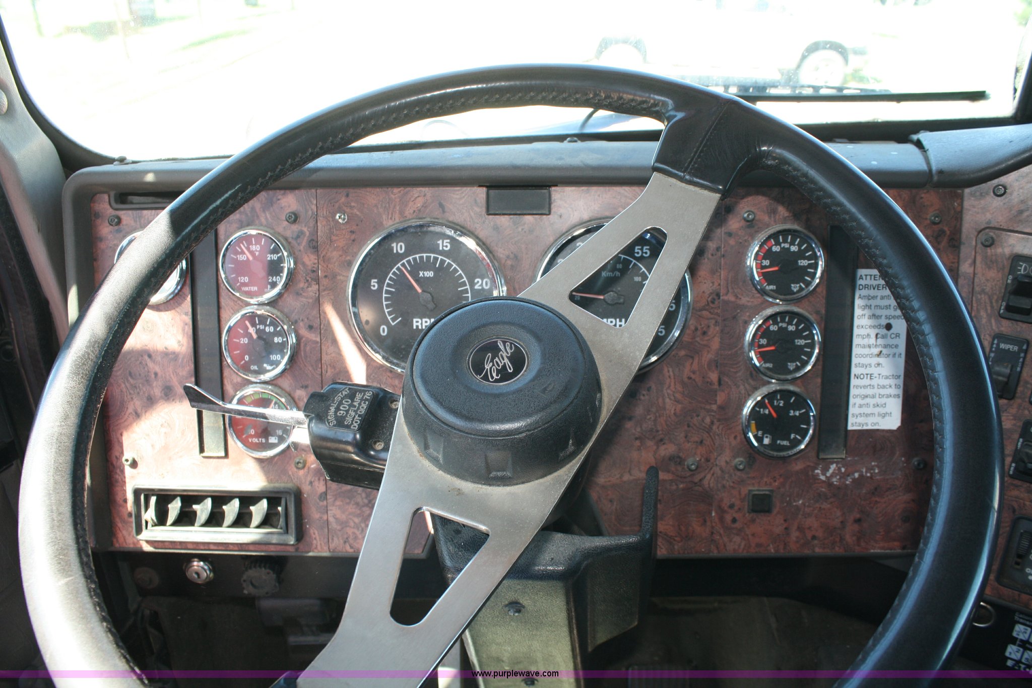 Purple Wave is selling a used Truck Tractor in Kansas. This item is a 2000 International 9200 Eagle semi truck with the following: 522,327 miles on odometer, Cummins N14 Plus 14.0L diesel engine, 10 speed manual transmission, Twin screw, AC and heat, Cruise, Passenger daylight door, Power passenger window, Power and heated mirrors, Pro Sleeper, Double bed, Storage, Exterior visor, Chrome bumper, Block heater, Cab extender, Dual 150 gallon fuel tanks, Rear exhaust stack, Air suspension, Air brakes, Jake brake, Brake controller, 275/80R22.5 tires, GVWR 52,000 lbs, FAWR 12,000 lbs, IAWR 20,000 lbs, RAWR 20,000 lbs