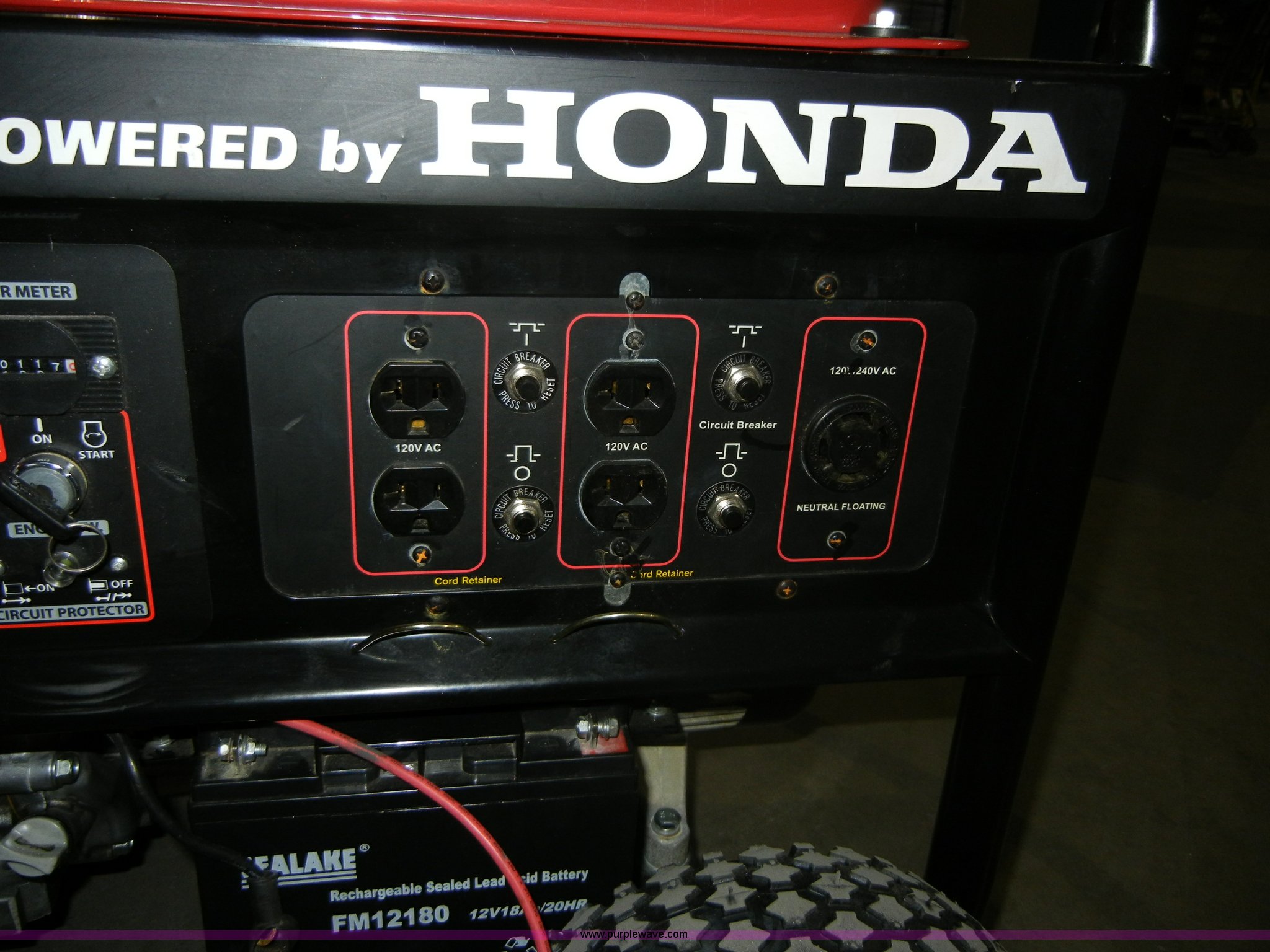 Purple Wave is selling a used Generator Set in Kansas. This item is a Black Max 7,000 watt generator with the following: Electric start, Honda 13 HP GX390 engine, Includes battery, (2) 120 volt receptacles, 240 volt receptacle, Circuit protected outlet
