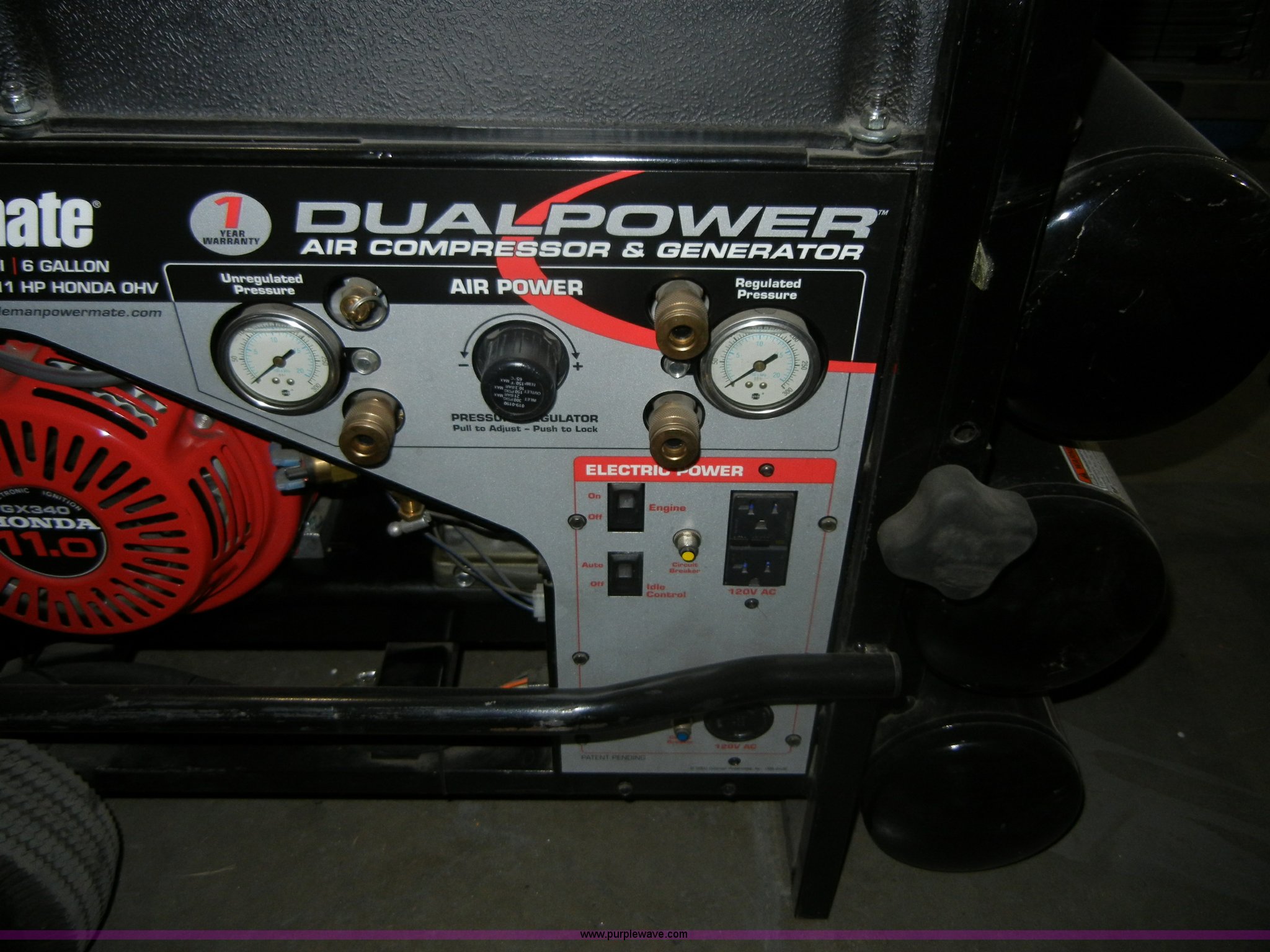 Coleman Powermate dual power air compressor/generator has sold in Spring Hill, Kansas for $632.50. Item C9066 sold on October 4th, 2011.