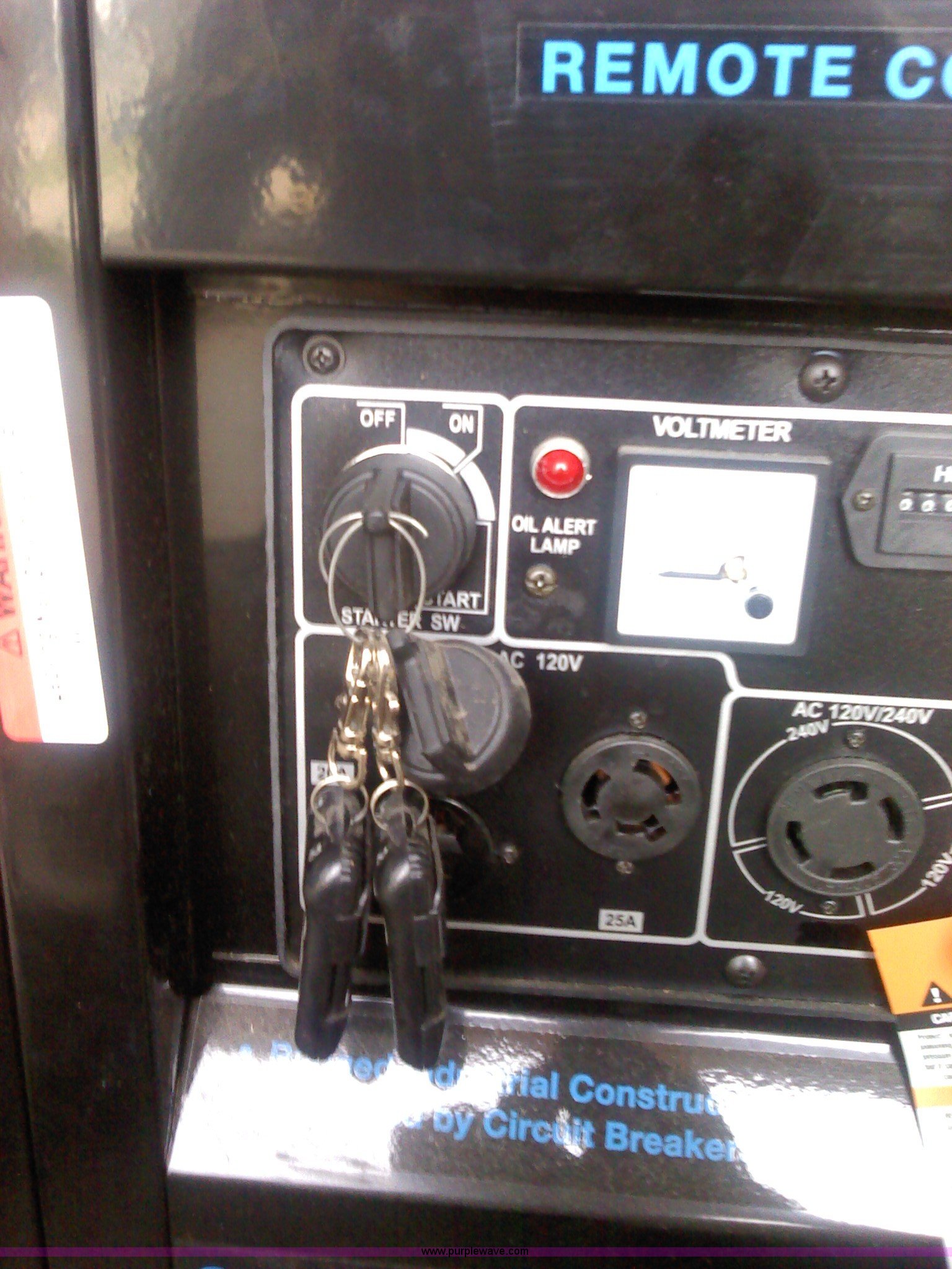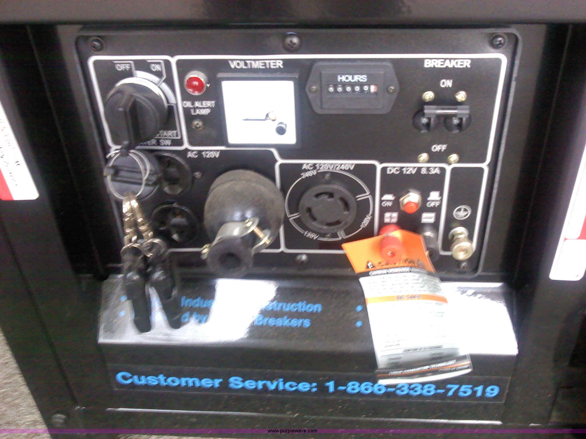Purple Wave is selling a used Generator Set in Kansas. This item is a Pacific 6,800 watt diesel generator with the following: LCT 9 HP diesel engine, Electric start with wireless remote, 3.5 gallon fuel tank, Single phase, Two wheeled cart with handle, Lifting eye, (4) receptacles, (2) 20A, 120v, 25A, 120v twist lock, 20A, 240v, Volt meter, Hour meter, 8A, 12v DC connection, Low oil shut down, Brushless generator head, 270 lbs, New