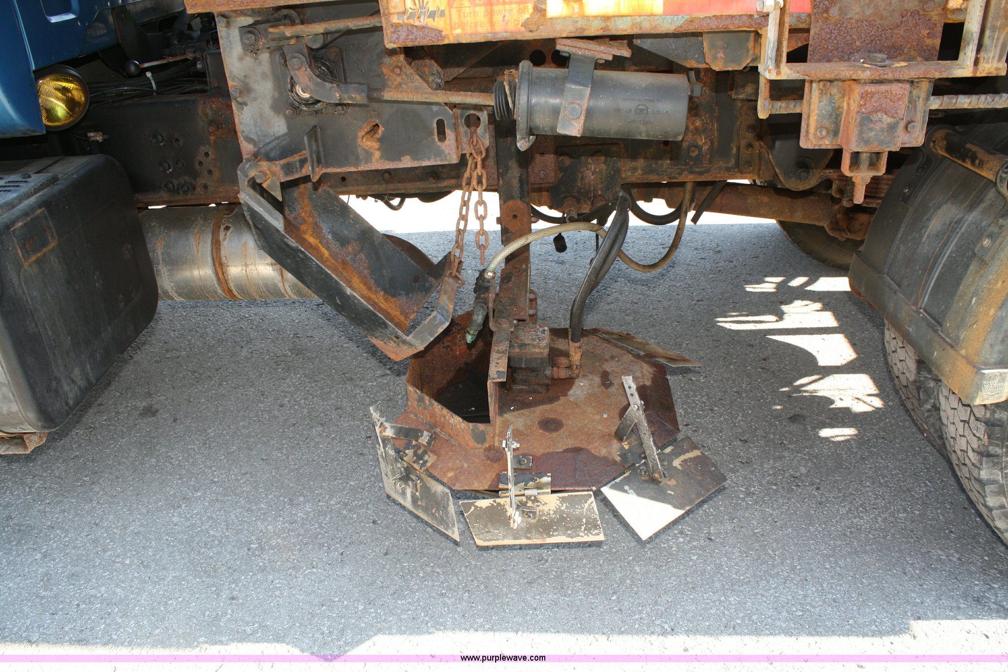 Purple Wave is selling a used Construction Dump Truck in Kansas. This item is a 1999 GMC C8500 dump truck with the following: 26,311 miles on odometer, 2,987 hours on meter, Caterpillar 3126 7.2L six cylinder diesel engine, Allison automatic transmission, Western 10' snow plow, Hydraulic angle adjust, Some cracks, Swenson APB 10' dump bed, 28" conveyor belt, Left side discharge spreader, 70 gallon pre wet system, Mesh tarp, Pneumatic tailgate latch, Bed plate to cover conveyor, Central hydraulic system, Front engine mount hydraulic pump, 50 gallon fuel tank, Pintle hitch, Strobe system, Recently replaced muffler, 12R22.5 tires, Rust, Cracked windshield, Dashboard loose