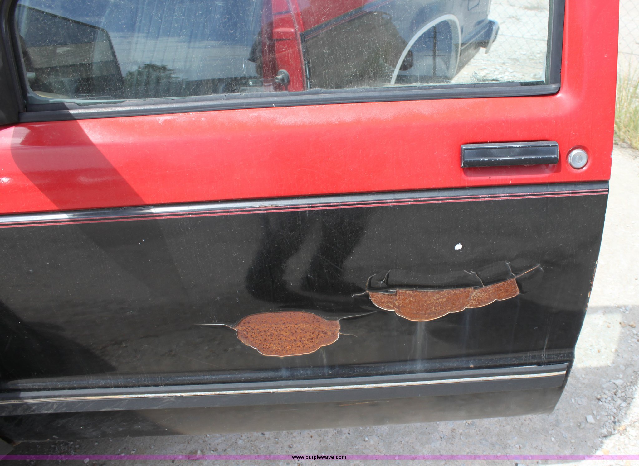 Purple Wave is selling a used Passenger Vehicle in Kansas. This item is a 1989 Chevrolet S10 Blazer SUV with the following: 247,704 miles on odometer, 4.3L V6 TBI engine, Automatic transmission, Four wheel drive, AC and heat, Tilt, Cruise, AM/FM/CD, Manual windows and locks, Leather interior, Receiver hitch, Trailer wiring, 235/75R15 tires, Interior cosmetic damage, Dents, Paint peeling