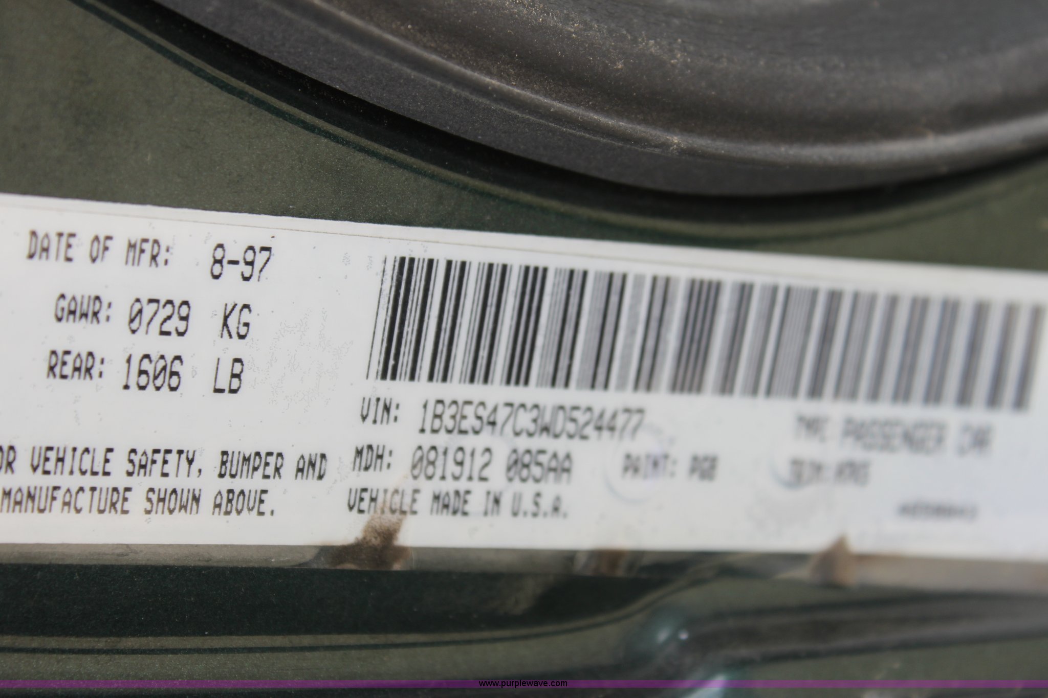 Purple Wave is selling a used Passenger Vehicle in Kansas. This item is a 1998 Dodge Neon with the following: 128,338 miles on odometer, 2.0L I4 SFI engine, Automatic transmission, AC and heat, Tilt, Cruise, AM/FM/CD, Manual windows and locks, 185/65R14 tires, Paint scratched