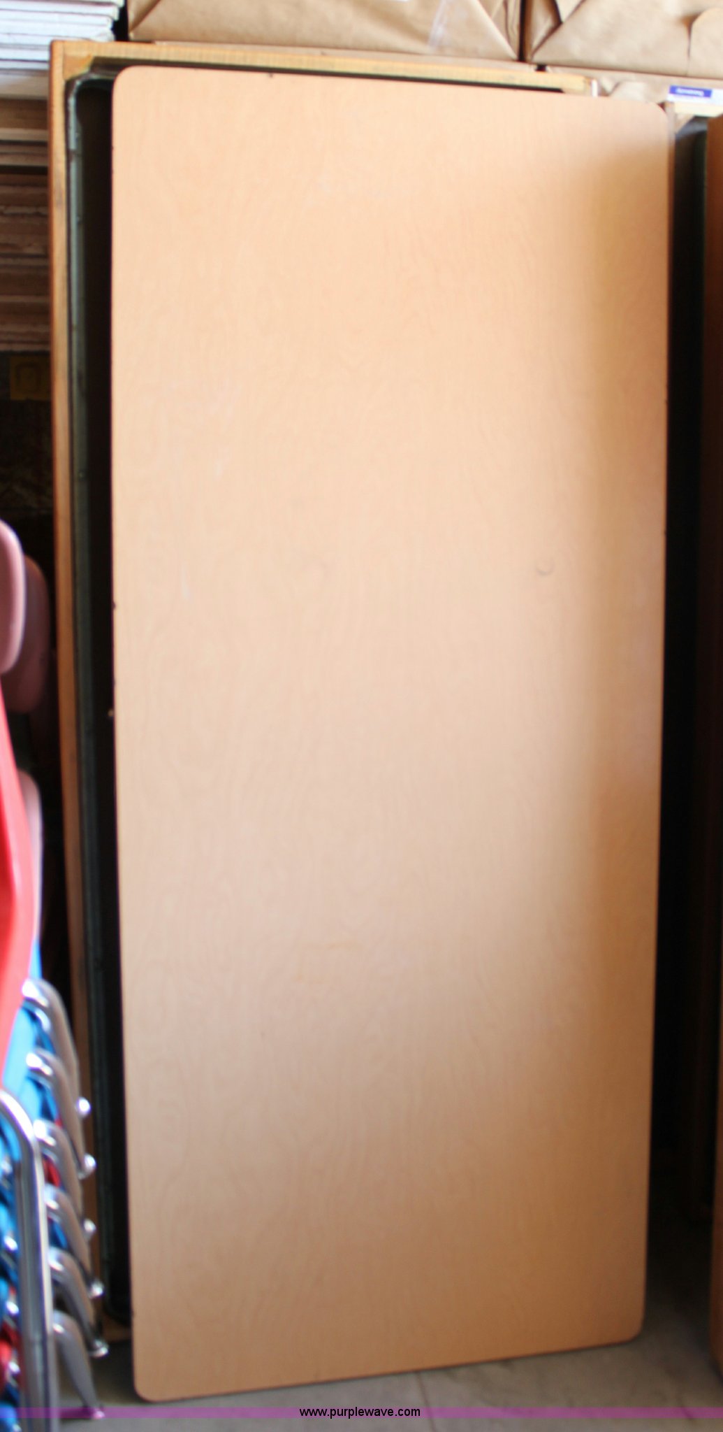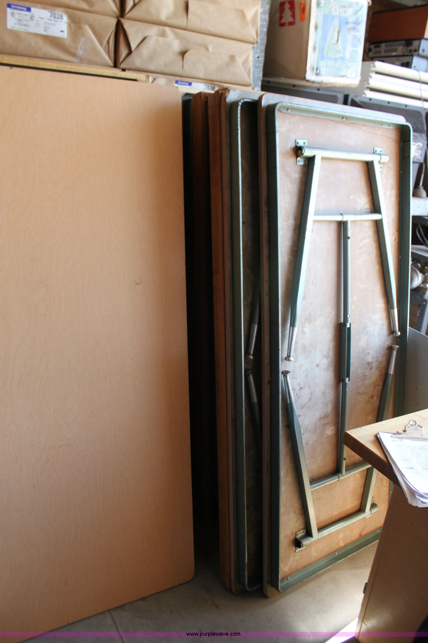 Purple Wave is selling a used Furniture in Kansas. This item is a (3) laminate top folding tables with the following: 6' x 30"