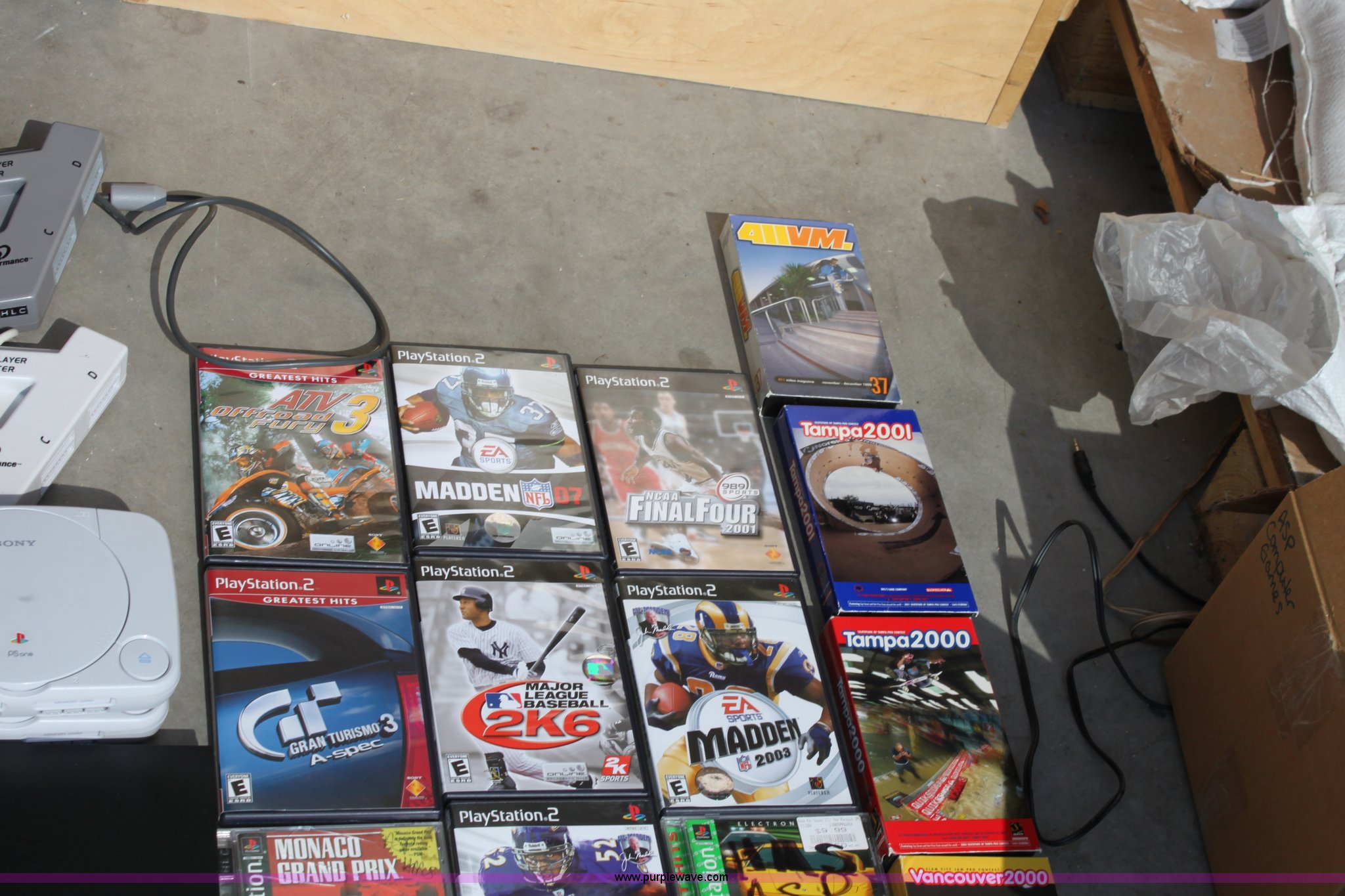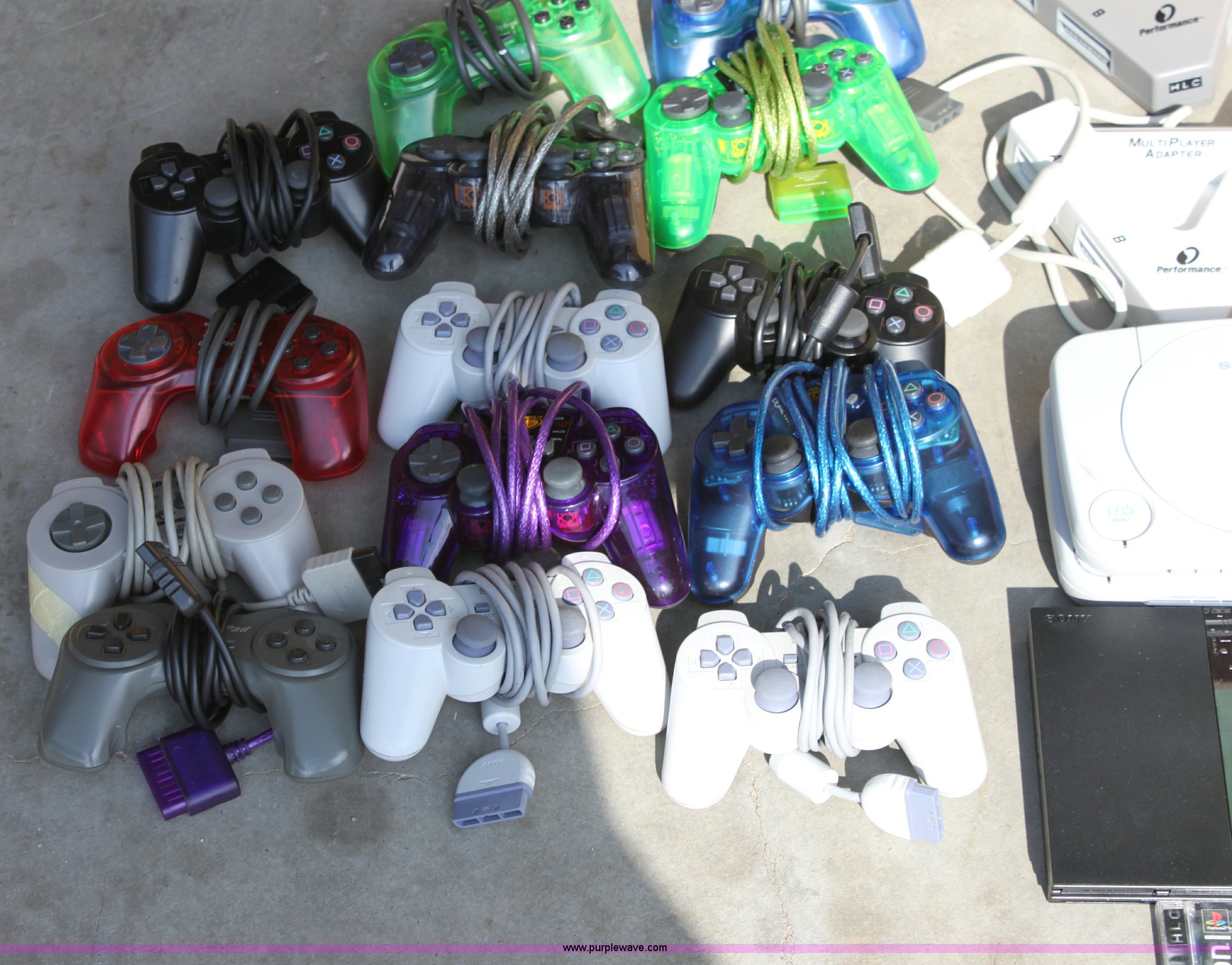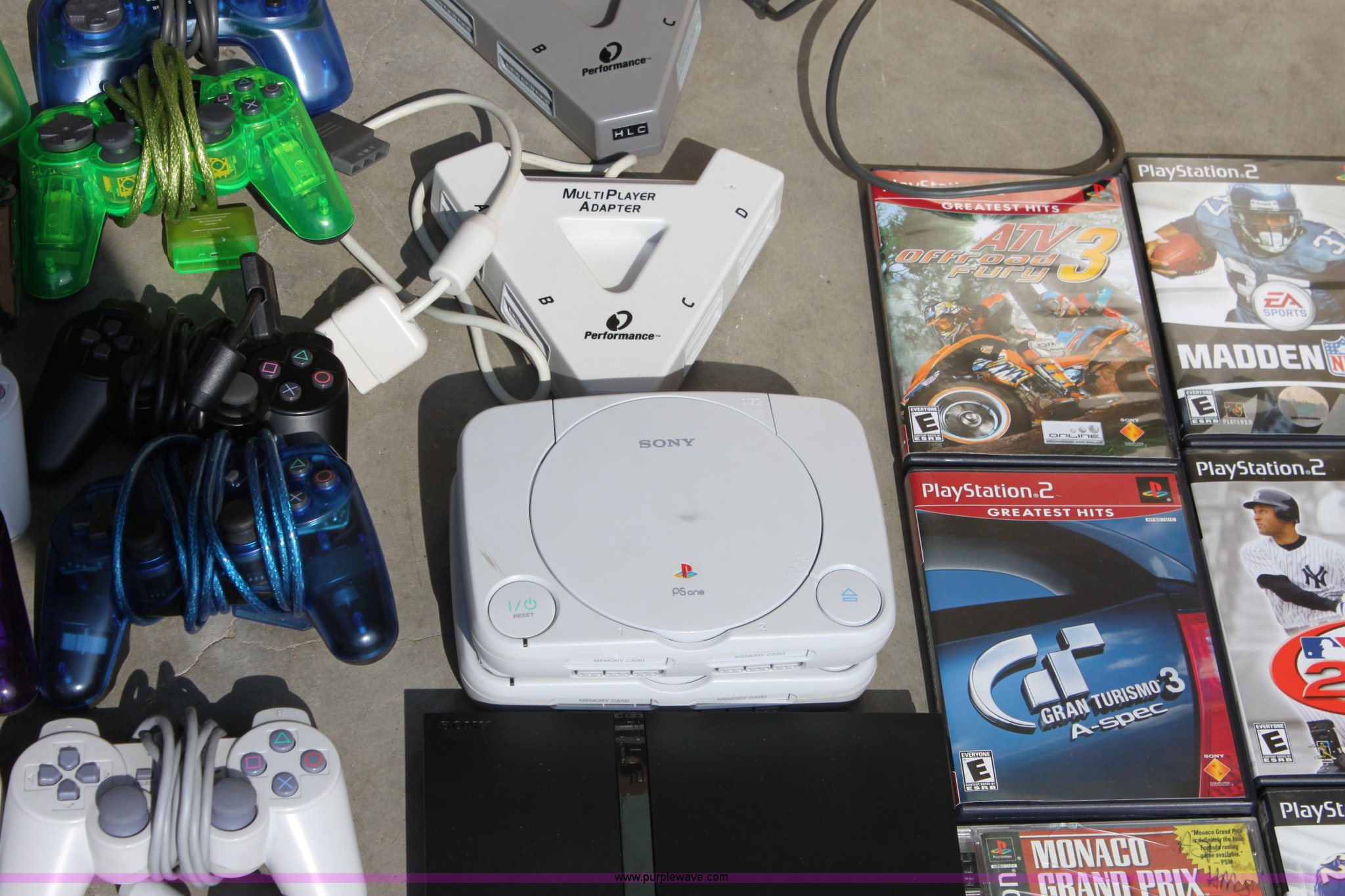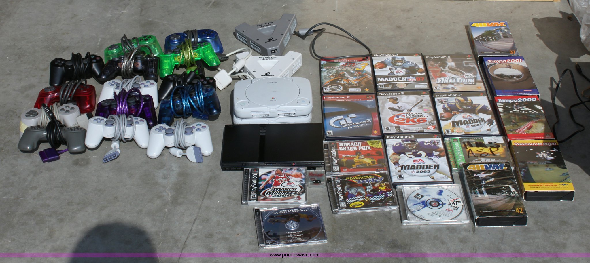 Assorted Sony Playstation game consoles and more. Sony Playstation 2 game console, (2) Sony Playstation, (14) controllers, (2) multiplayer adapters, (12) games, (4) VHS tapes, And more. USD 460. 150 N Ridge Rd. Hesston, KS 67062
