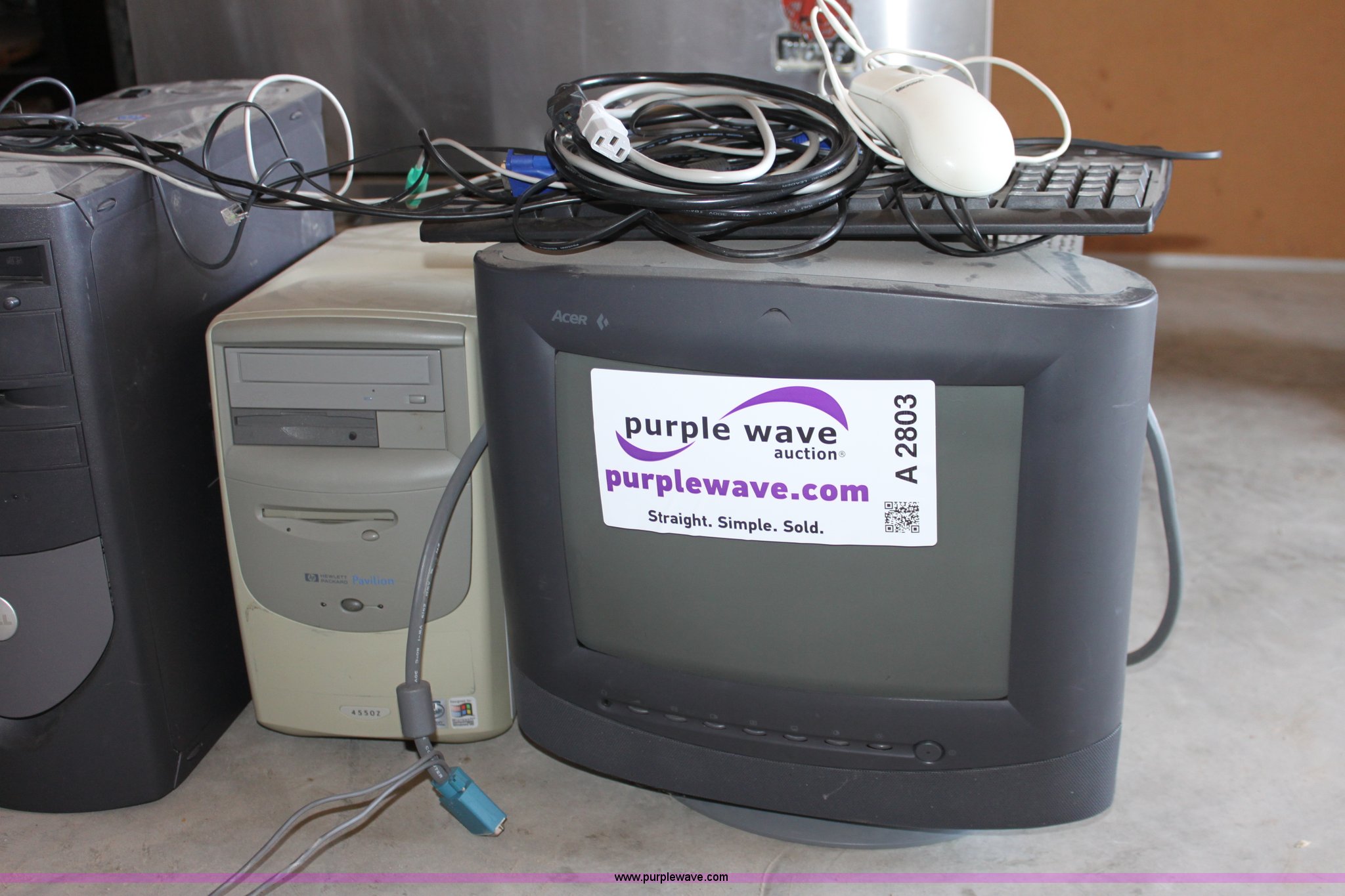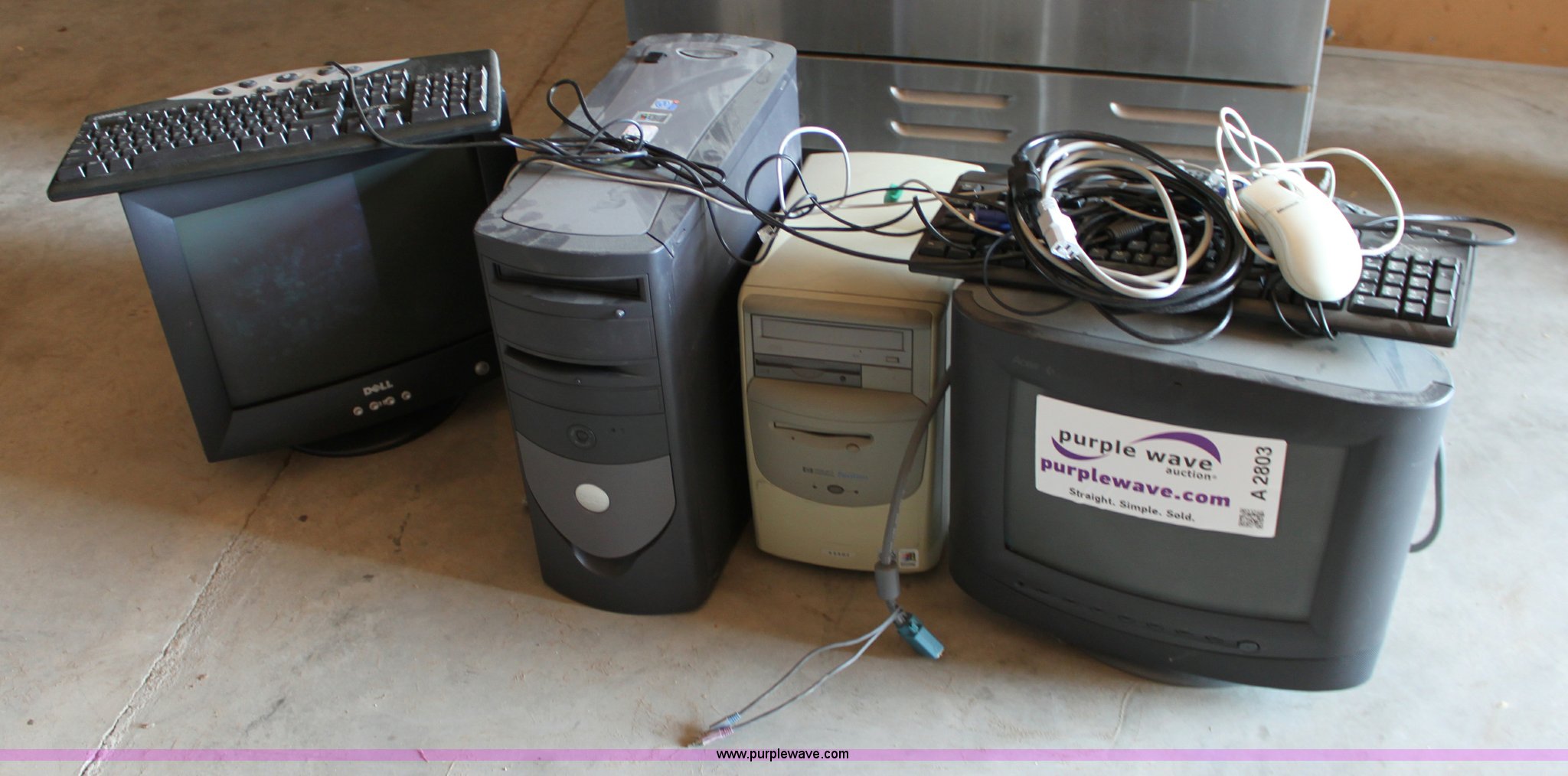 Purple Wave is selling a used Computers in Kansas. This item is a Assorted computer equipment with the following: (2) CRT monitors, Dell Optiplex GX240 computer, Intel Pentium 4 processor, Windows 2000, HP Pavilion 4550Z computer, Intel Celeron processor, Windows 2000, (2) keyboards, S2, Mouse
