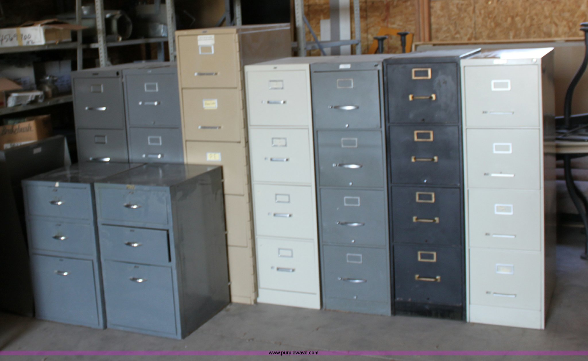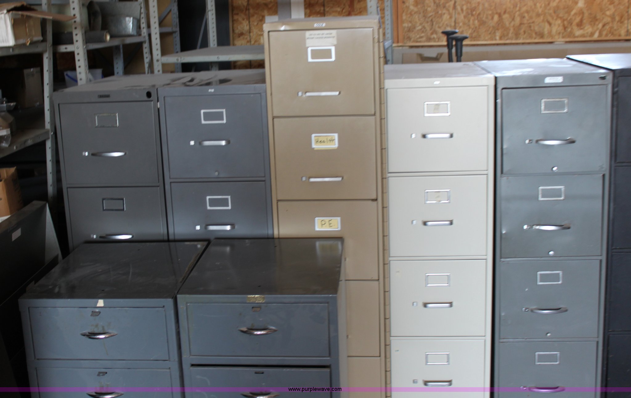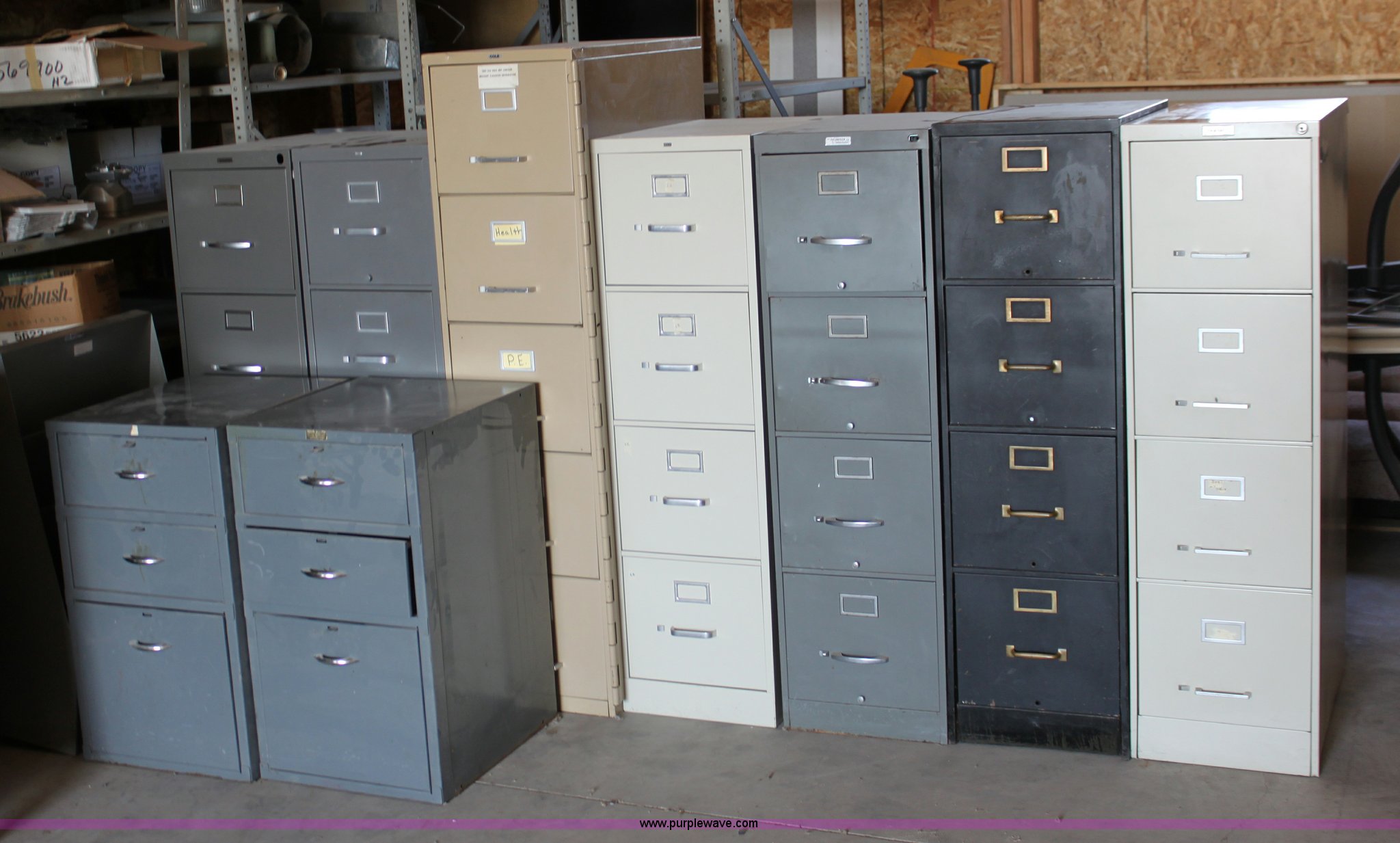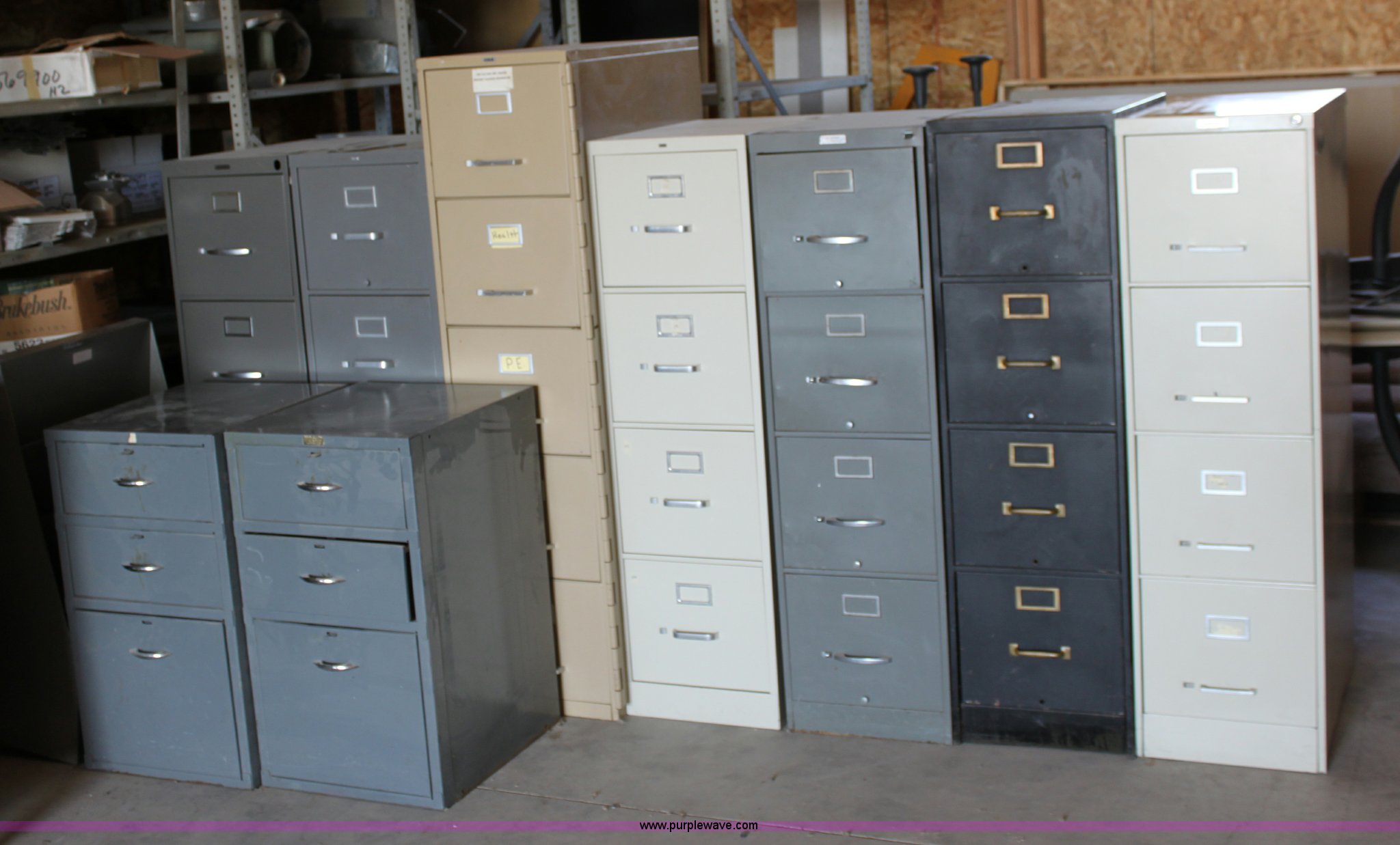Purple Wave is selling a used Office Supplies and Equip. in Kansas. This item is a (9) file cabinets with the following: (6) four-drawer, (2) three-drawer, Five-drawer, Magazine rack