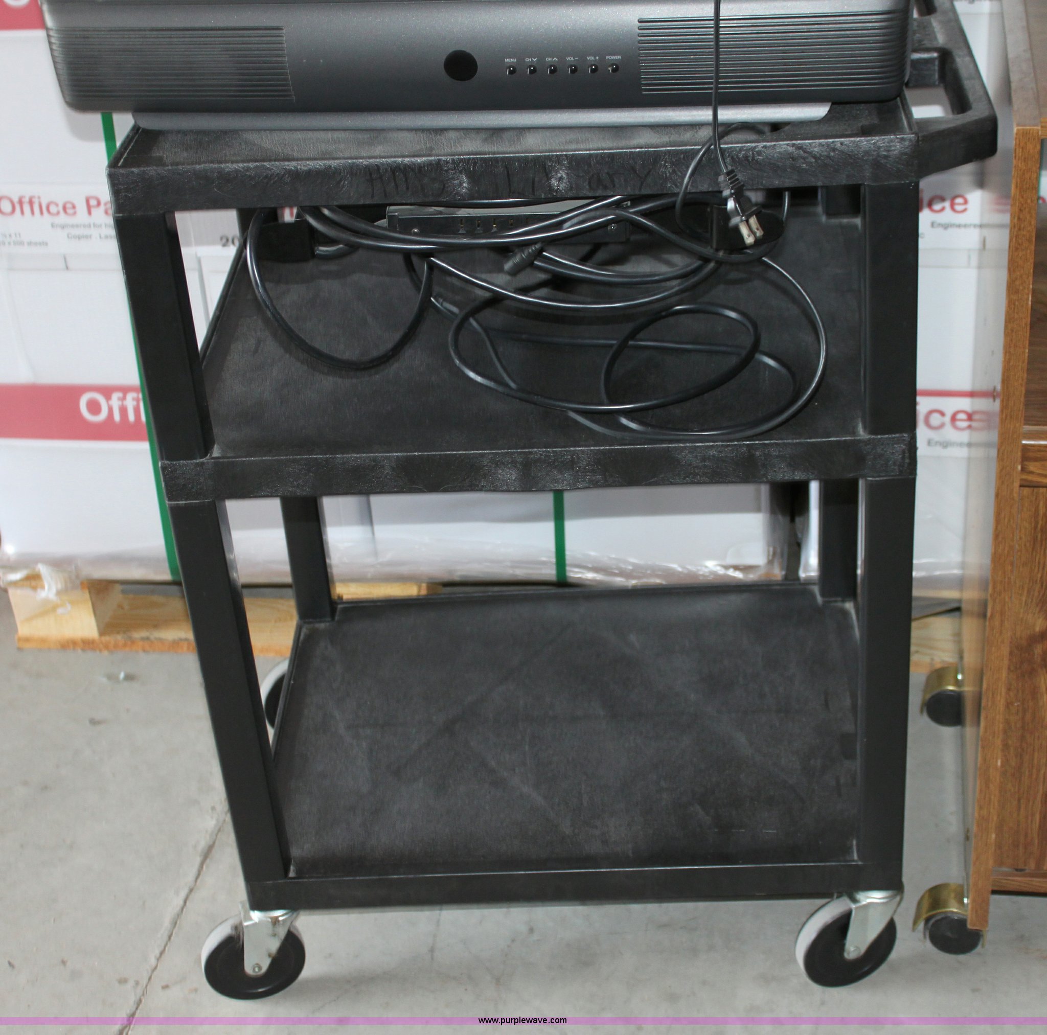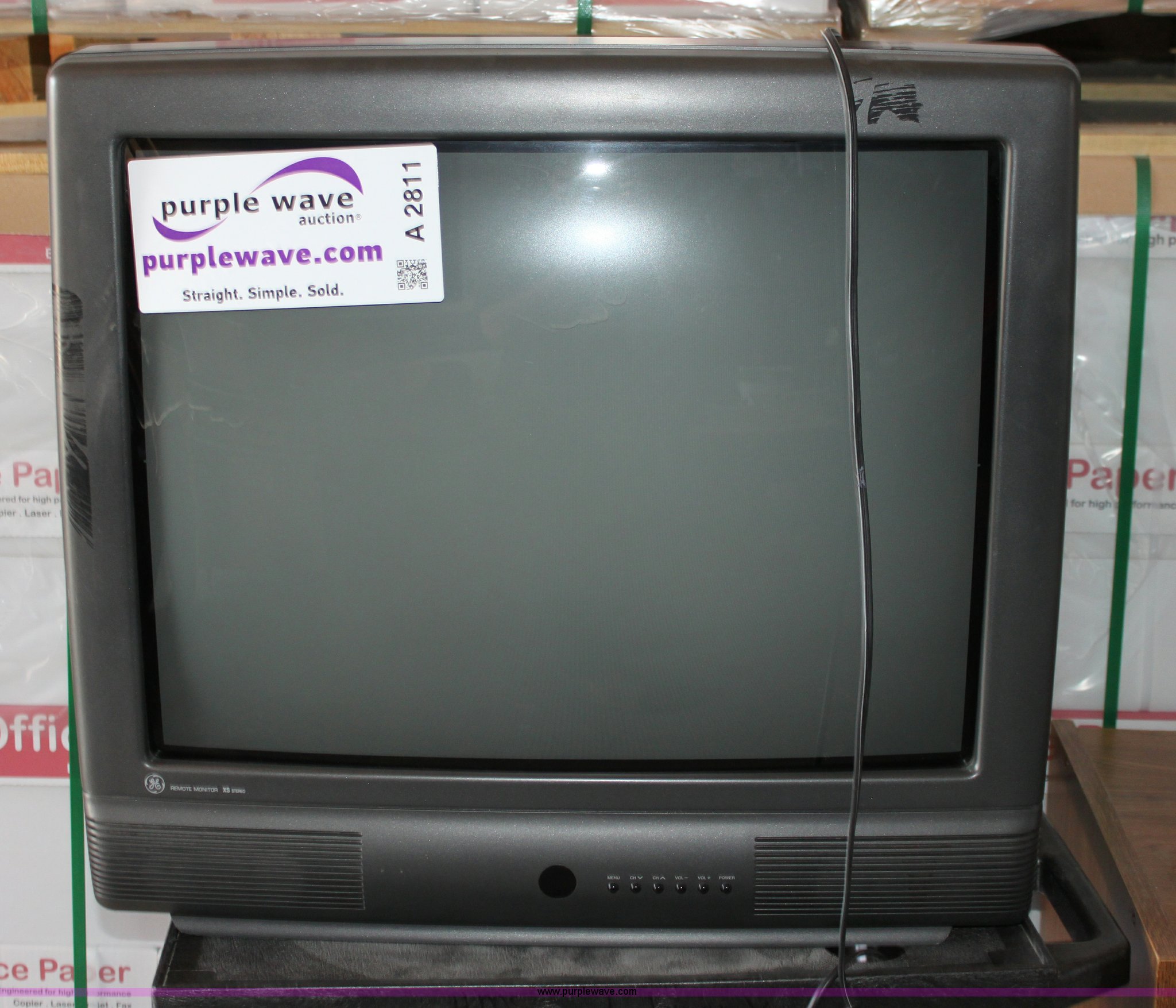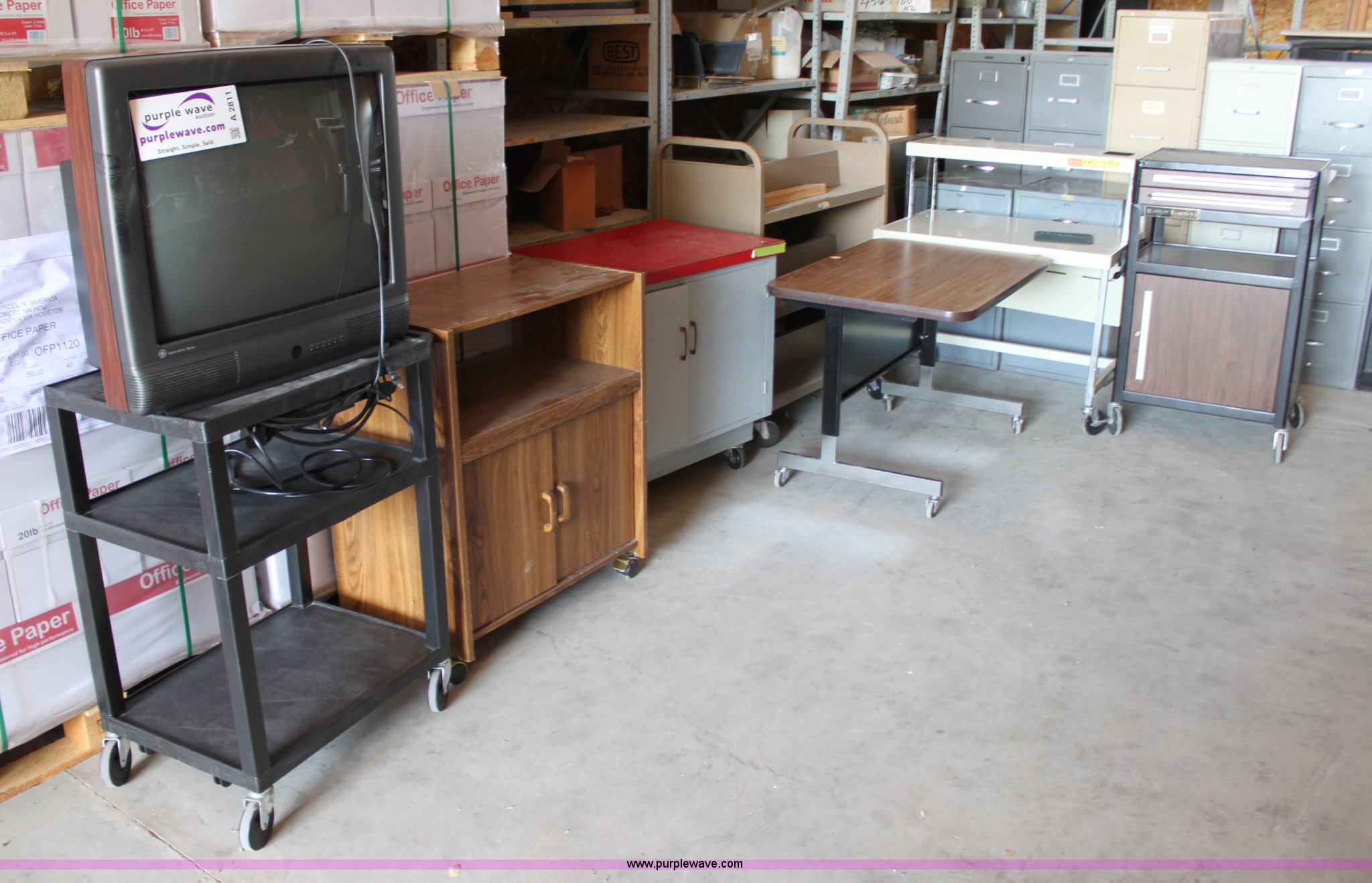 Purple Wave is selling a used Furniture in Kansas. This item is a (7) assorted rolling carts and cabinets with the following: GE 27" television