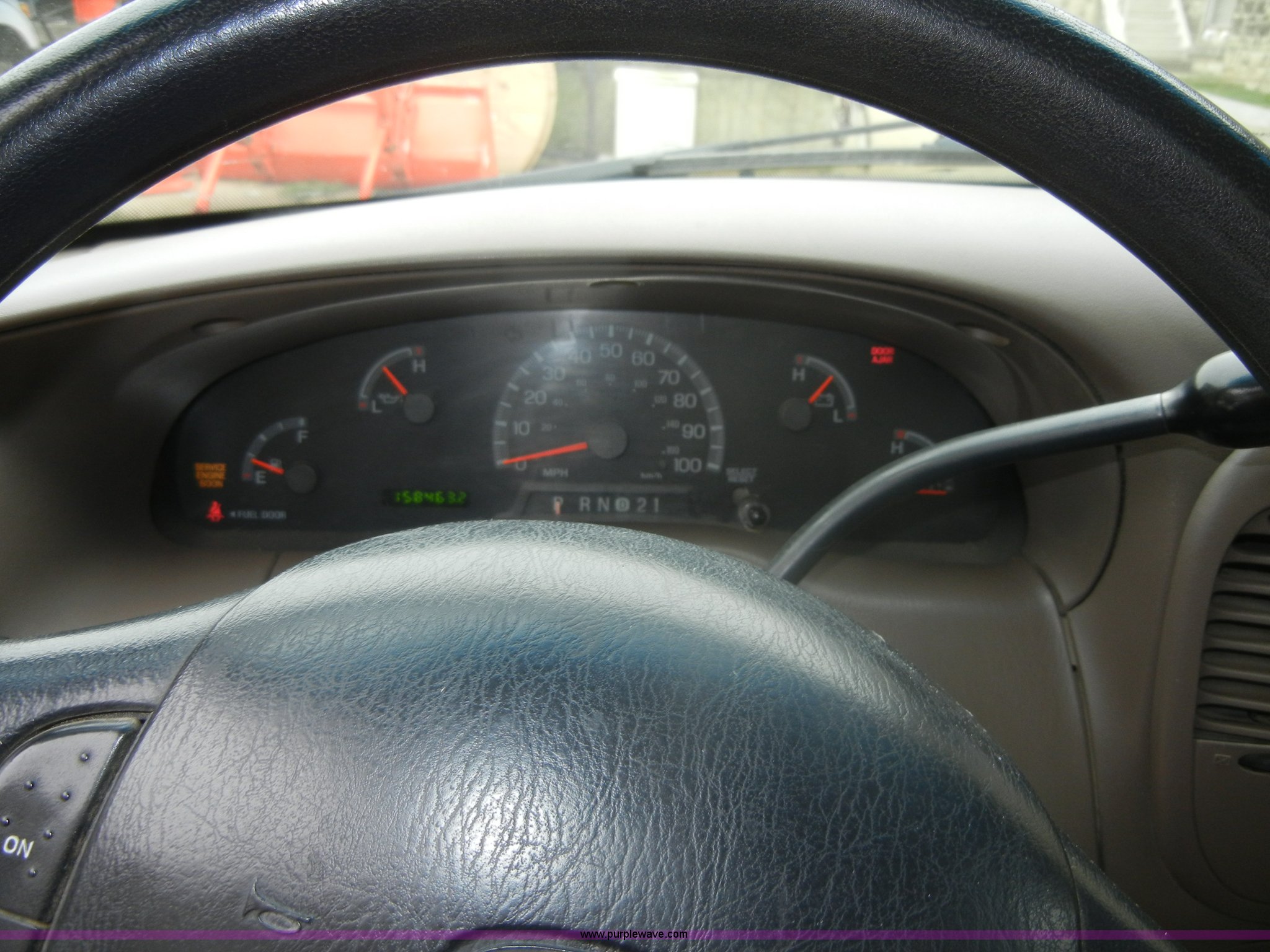 Purple Wave is selling a used Passenger Vehicle in Kansas. This item is a 1999 Ford F150 pickup truck with the following: 158,463 miles on odometer, 4.2L V6 SPI engine, Automatic transmission, Four wheel drive, AC and heat, Tilt, Cruise, AM/FM, Manual windows and locks, Vinyl bench seat, Toolbox, Trailer wiring, 245/75R16 tires, Spare rim, no tire, Service engine soon light on, Knock sensor in engine going out, Headliner falling down, Interior dome light cover will be replaced, Exterior cosmetic damage, Front bumper and passenger door damage