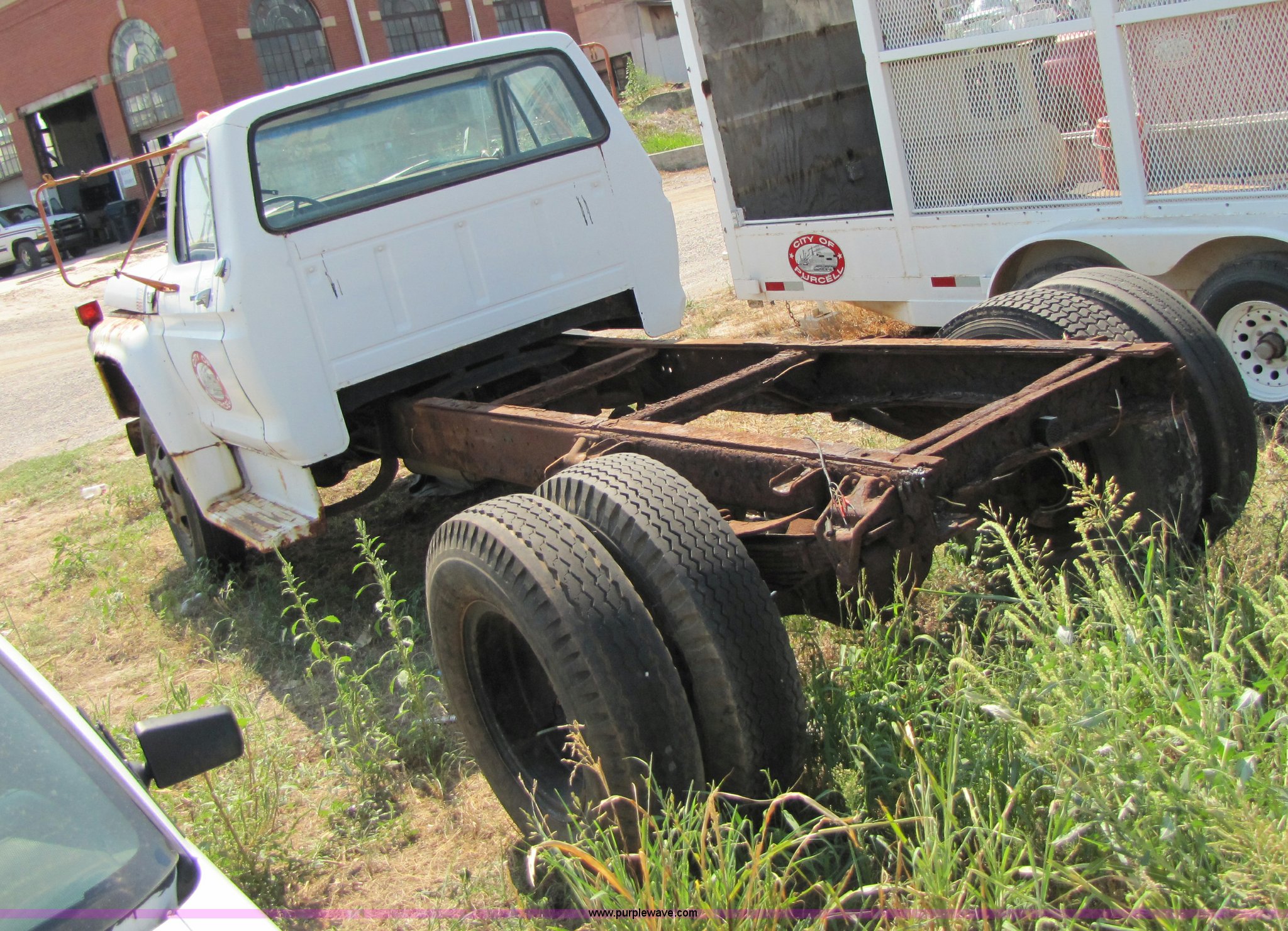 1973 Ford F600 truck cab and chassis. 56,016 miles on odometer, V8 gas engine, Manual transmission, Heater, Manual windows and locks, 9.00R20 tires. Title distribution may be delayed up to 14 days from verification of funds. F60DUR20334. City Of Purcell. 701 S 6th. Purcell, OK 73080