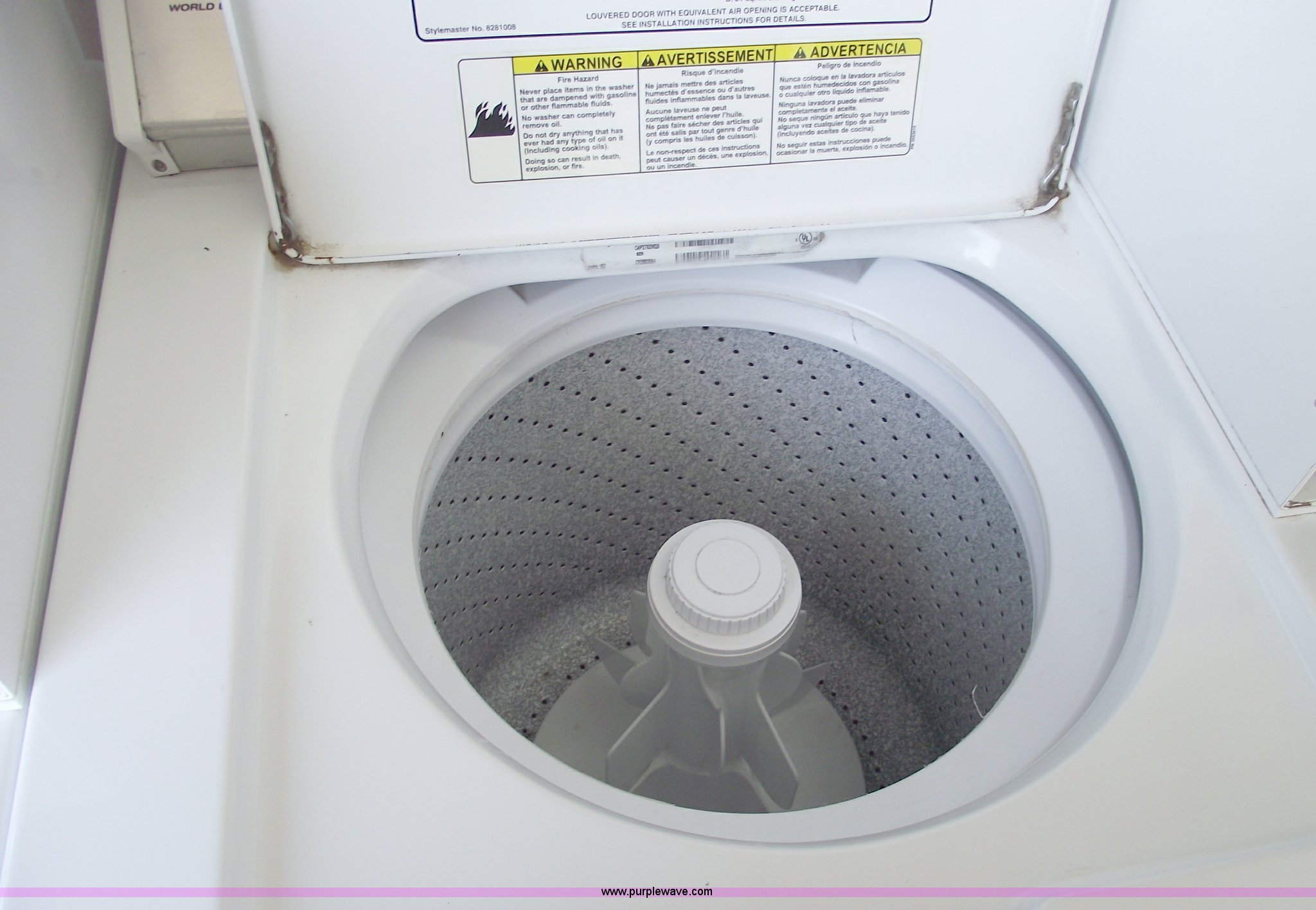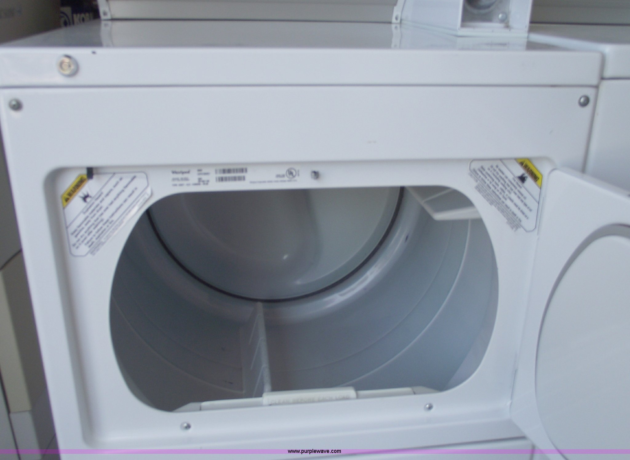 Purple Wave is selling a used Appliances in Missouri. This item is a Whirlpool commercial coin operated washer and dryer with the following: Keys, $1.25 per use, 110v washer, 220v dryer