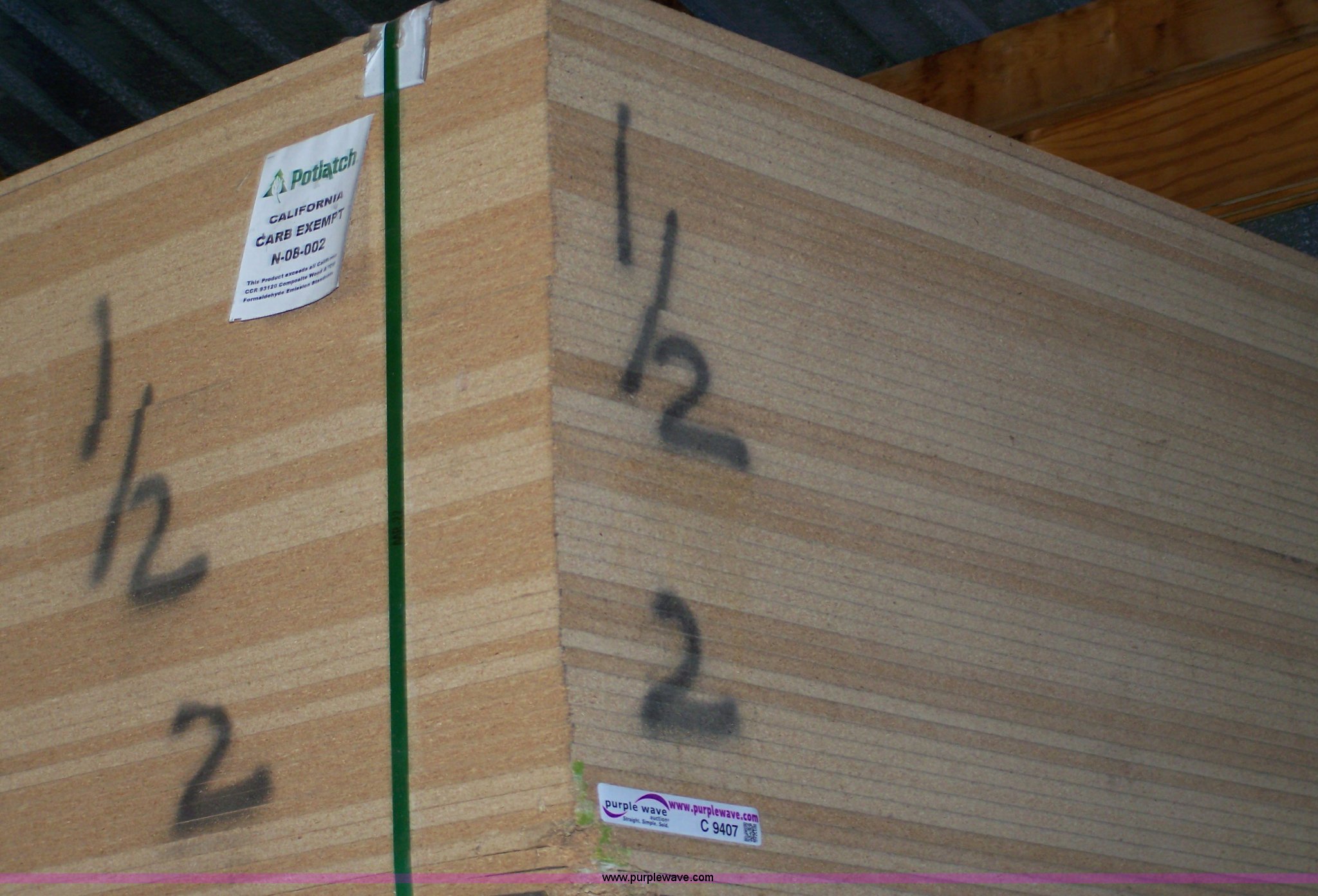 Purple Wave is selling a used Home Improvement in Kansas. This item is a (50) full sheets of particle board with the following: 49" x 97" x 1/2", Some have edge and corner damage