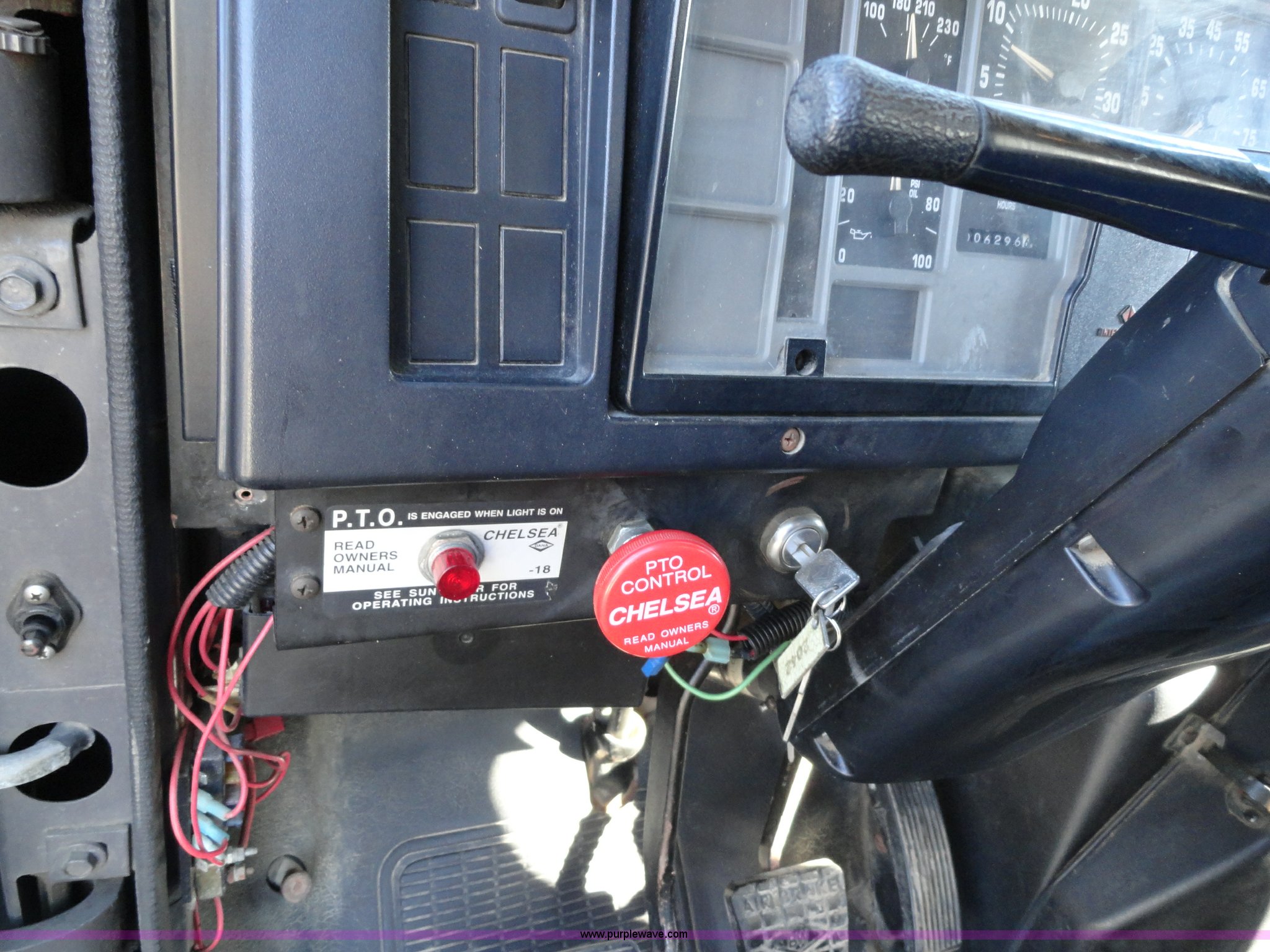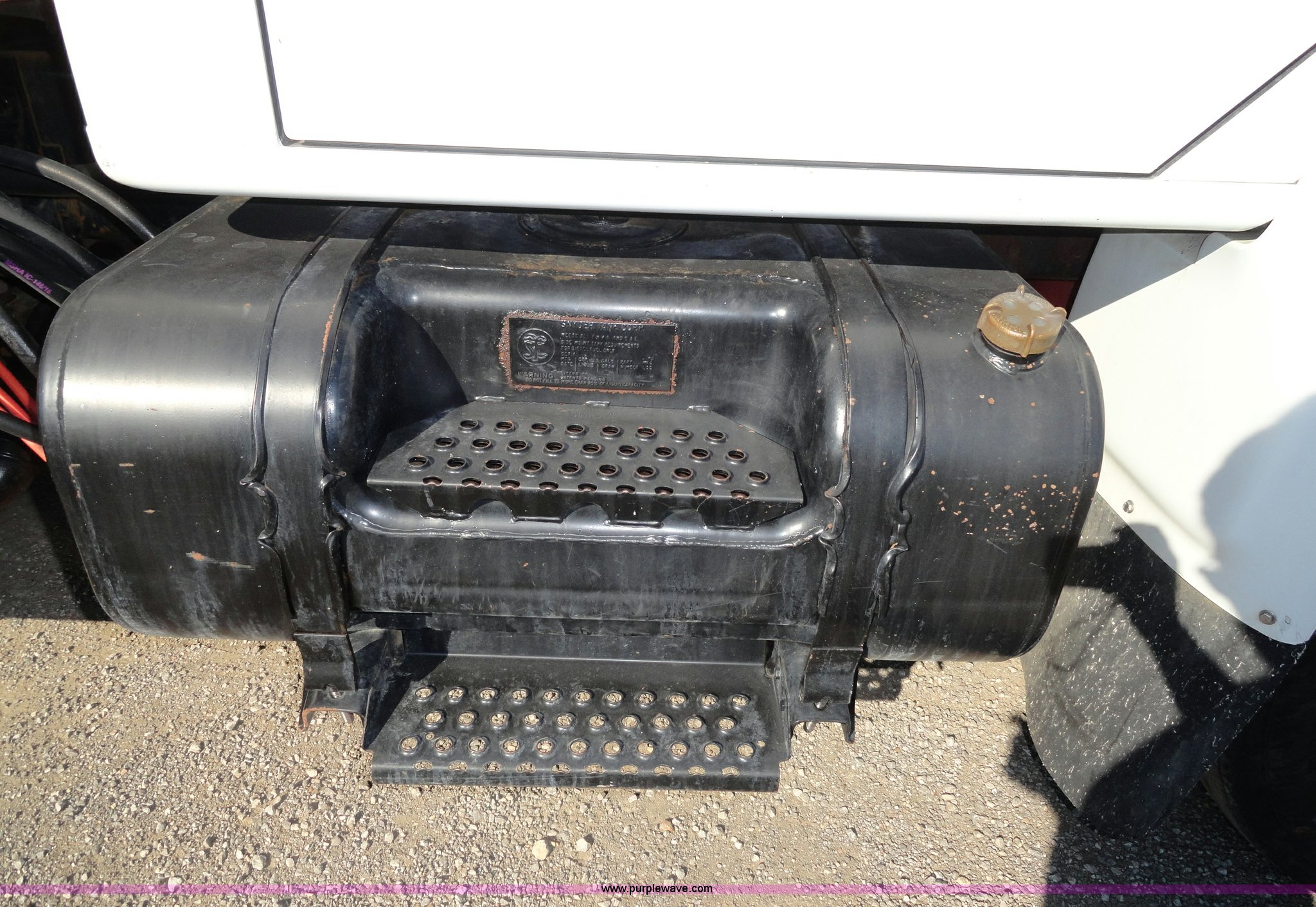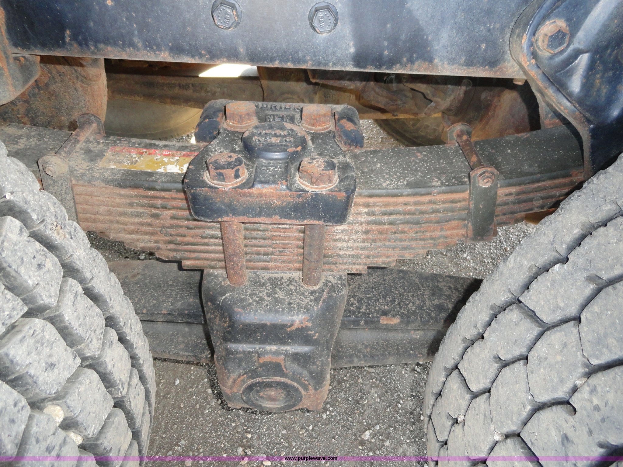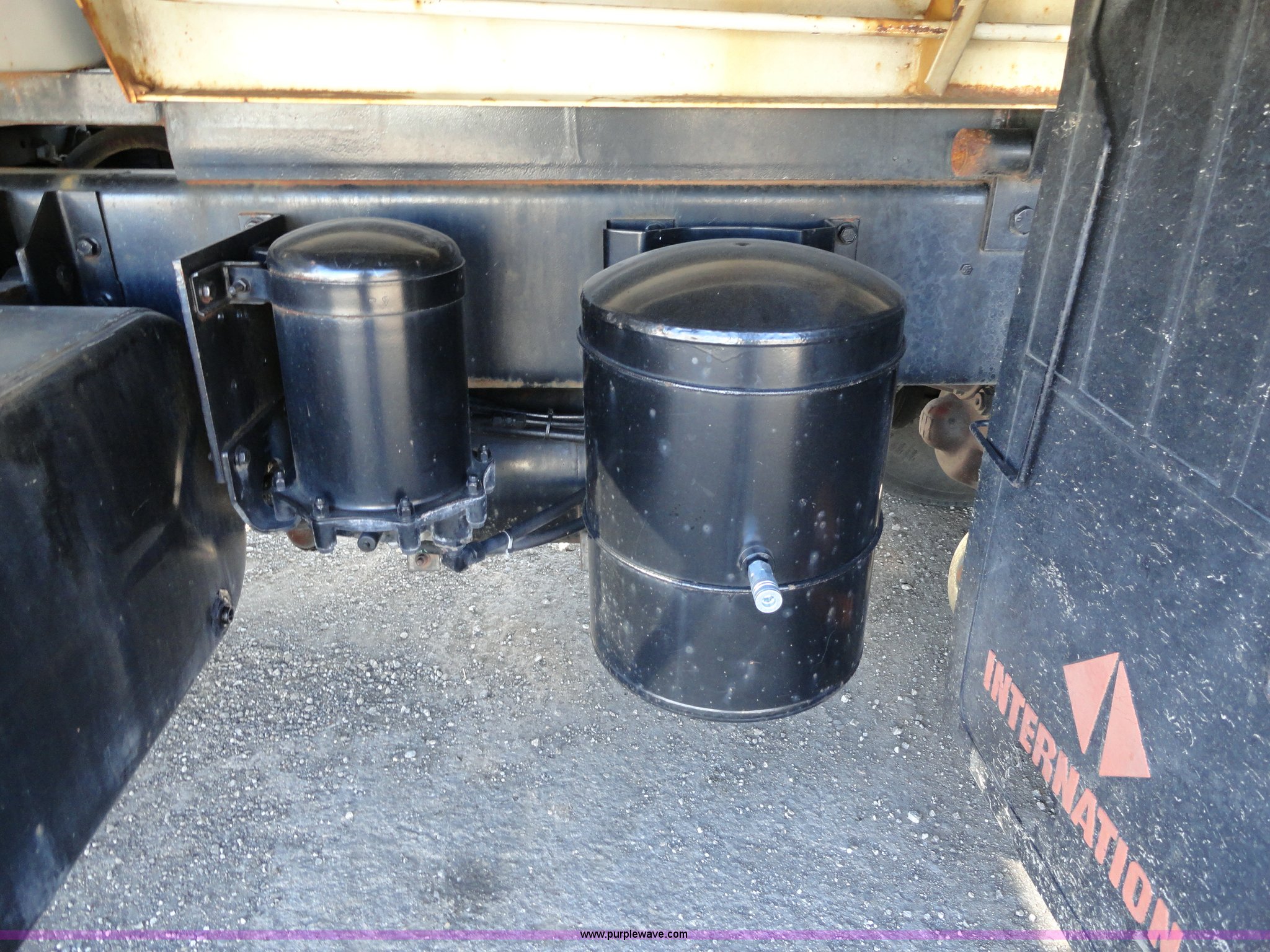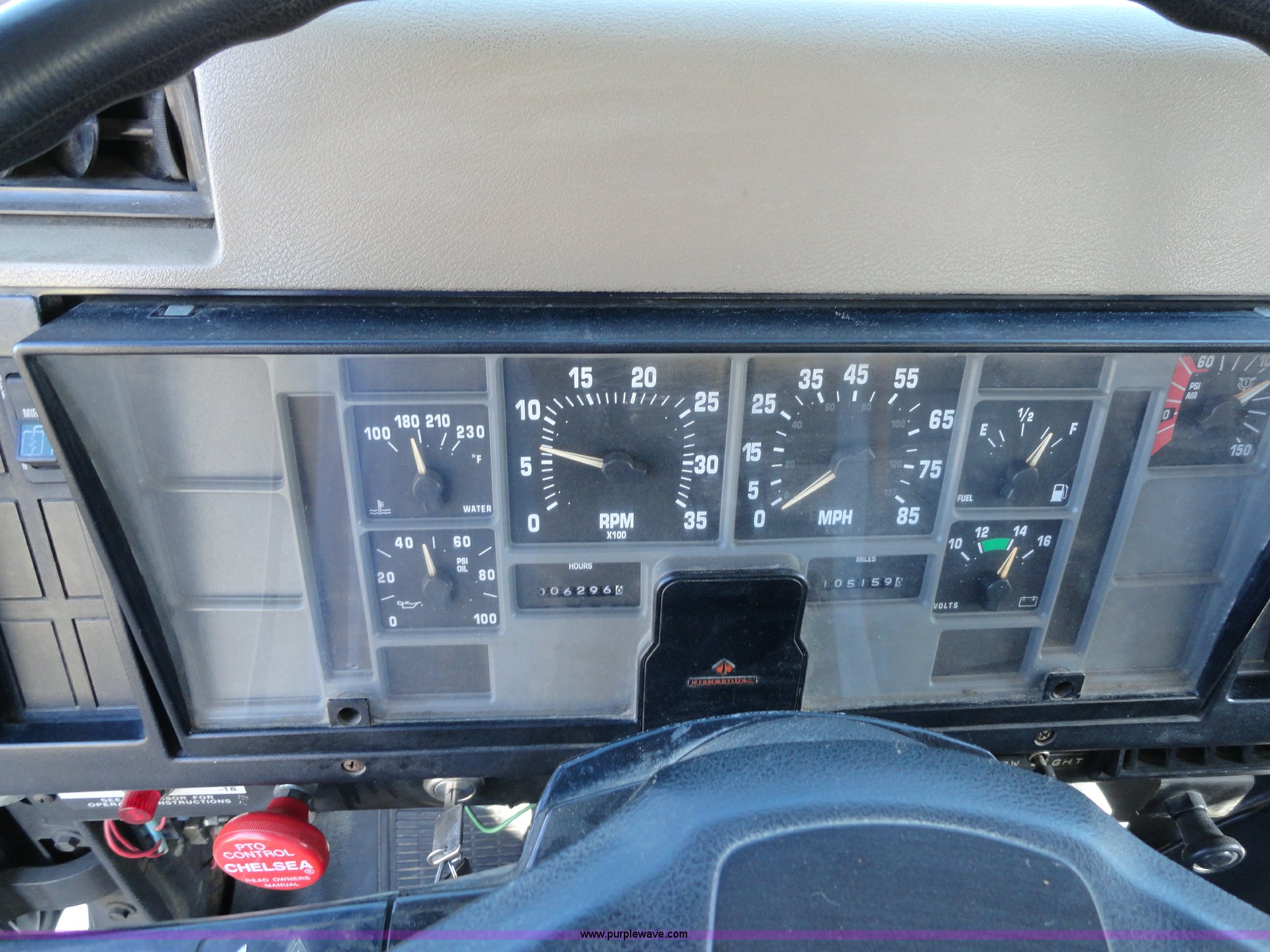 Purple Wave is selling a used Construction Dump Truck in Kansas. This item is a 1995 International 4900 tandem axle dump truck with plow and spreader with the following: 105,159 miles on odometer, 6,296 hours on meter, Navistar DT466 7.6L diesel engine, 250 HP, Eaton Fuller 10 speed manual transmission, Twin screw, Heater, AM/FM/Cassette, Power windows, 12' dump bed, Manual end gate, Flink 11' snow plow, Model 11PA38B, Serial 189, Plow lights, Flink 10 yd. stainless steel spreader, Tailgate included, Strobe lights and power supply, 6' x 20" x 12" toolbox, Spring suspension, Dual 50 gallon fuel tanks, PTO, Air brakes, Tow hooks, 11R22.5 tires, Equip# 2042