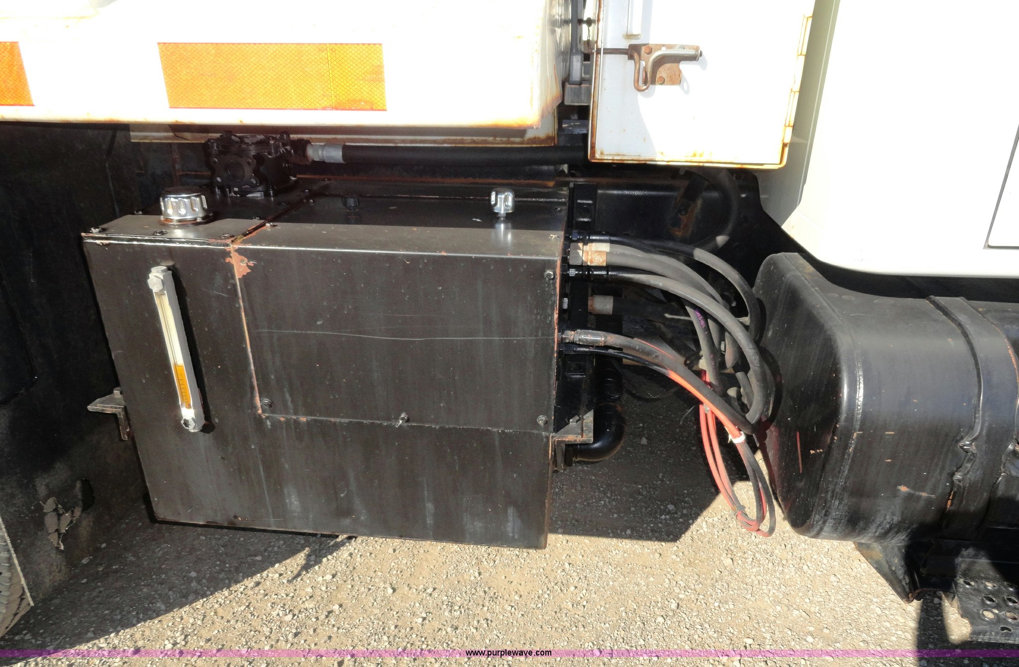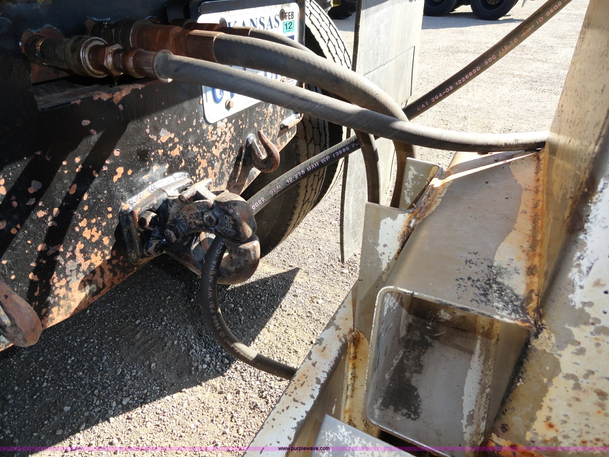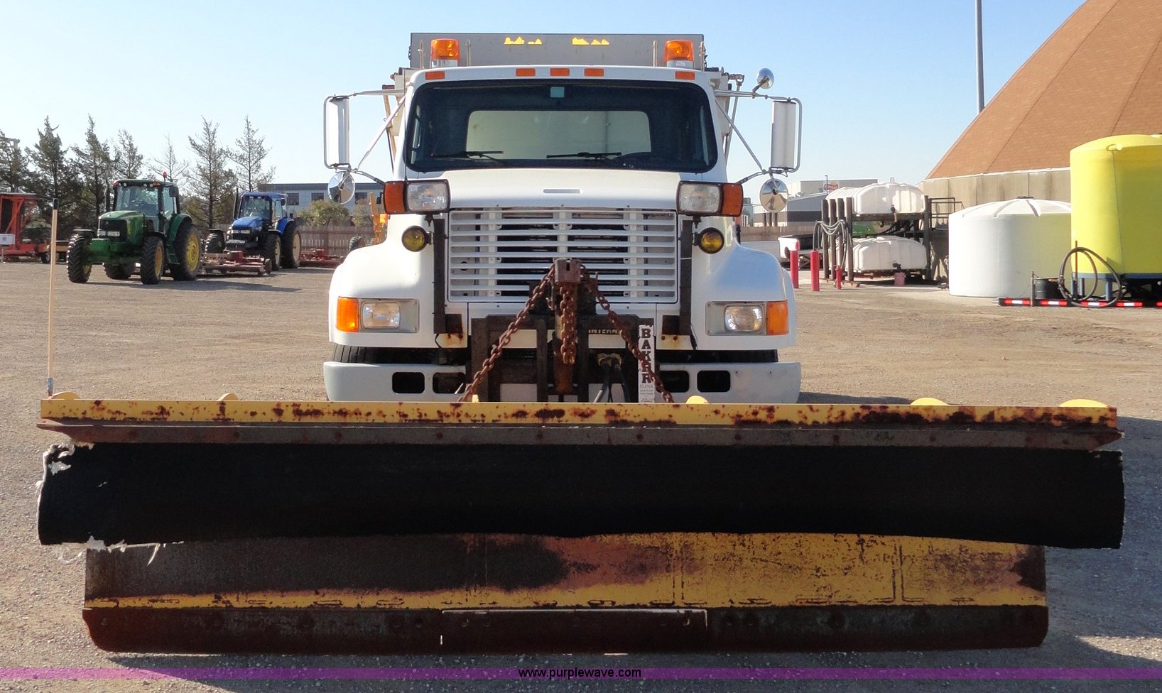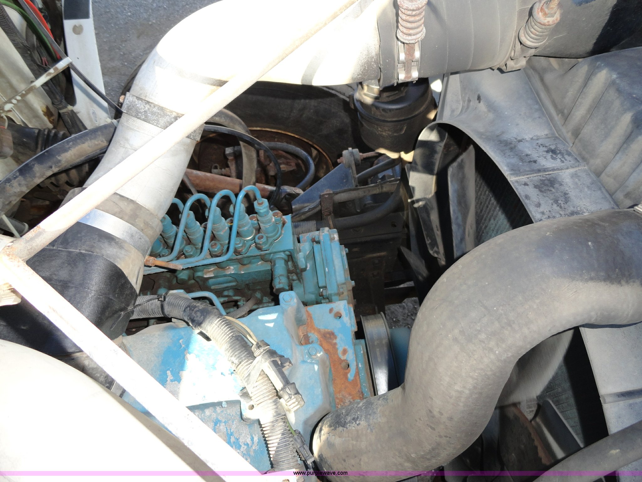 Purple Wave is selling a used Construction Dump Truck in Kansas. This item is a 1995 International 4900 tandem axle dump truck with plow and spreader with the following: 105,159 miles on odometer, 6,296 hours on meter, Navistar DT466 7.6L diesel engine, 250 HP, Eaton Fuller 10 speed manual transmission, Twin screw, Heater, AM/FM/Cassette, Power windows, 12' dump bed, Manual end gate, Flink 11' snow plow, Model 11PA38B, Serial 189, Plow lights, Flink 10 yd. stainless steel spreader, Tailgate included, Strobe lights and power supply, 6' x 20" x 12" toolbox, Spring suspension, Dual 50 gallon fuel tanks, PTO, Air brakes, Tow hooks, 11R22.5 tires, Equip# 2042