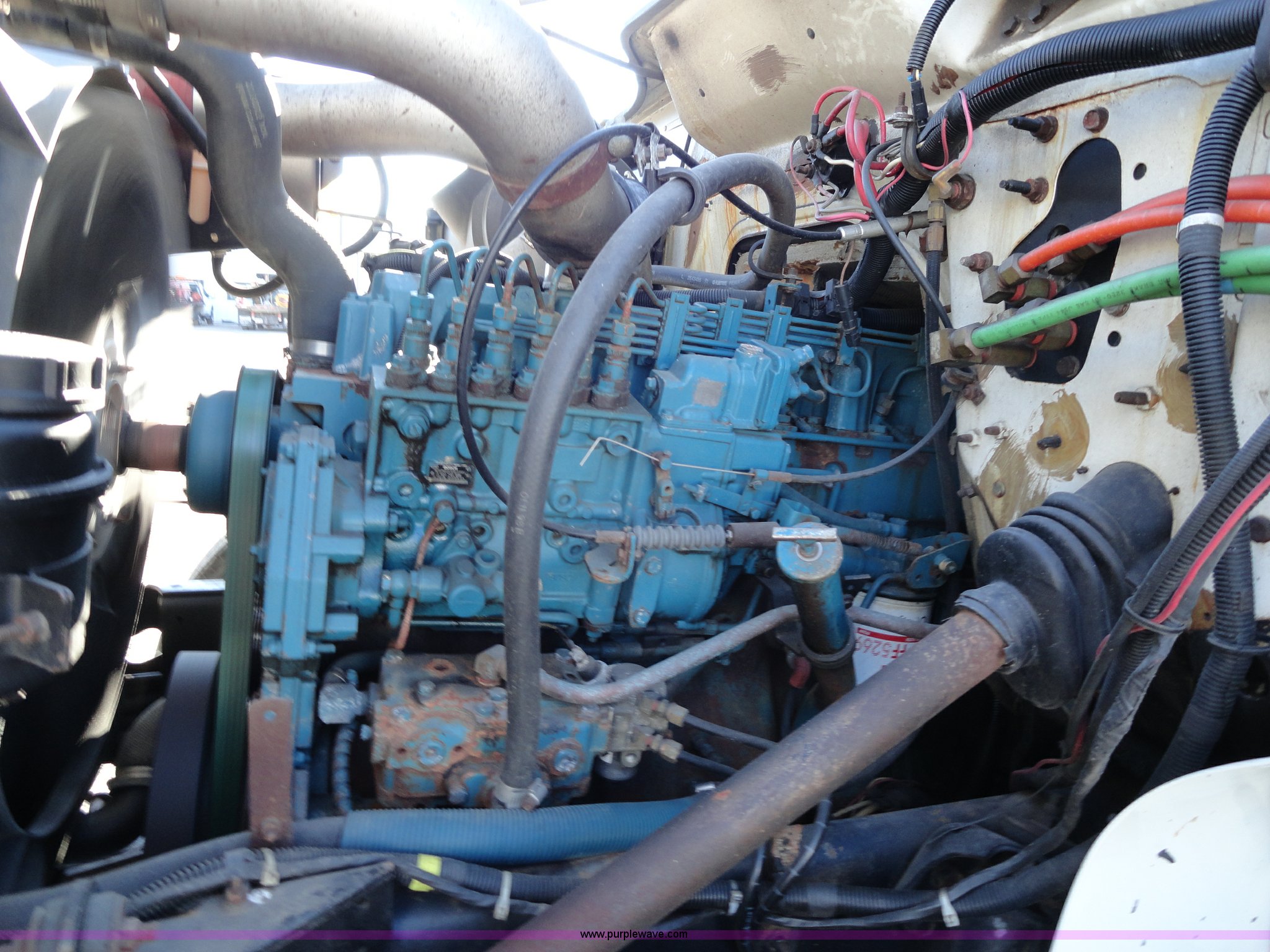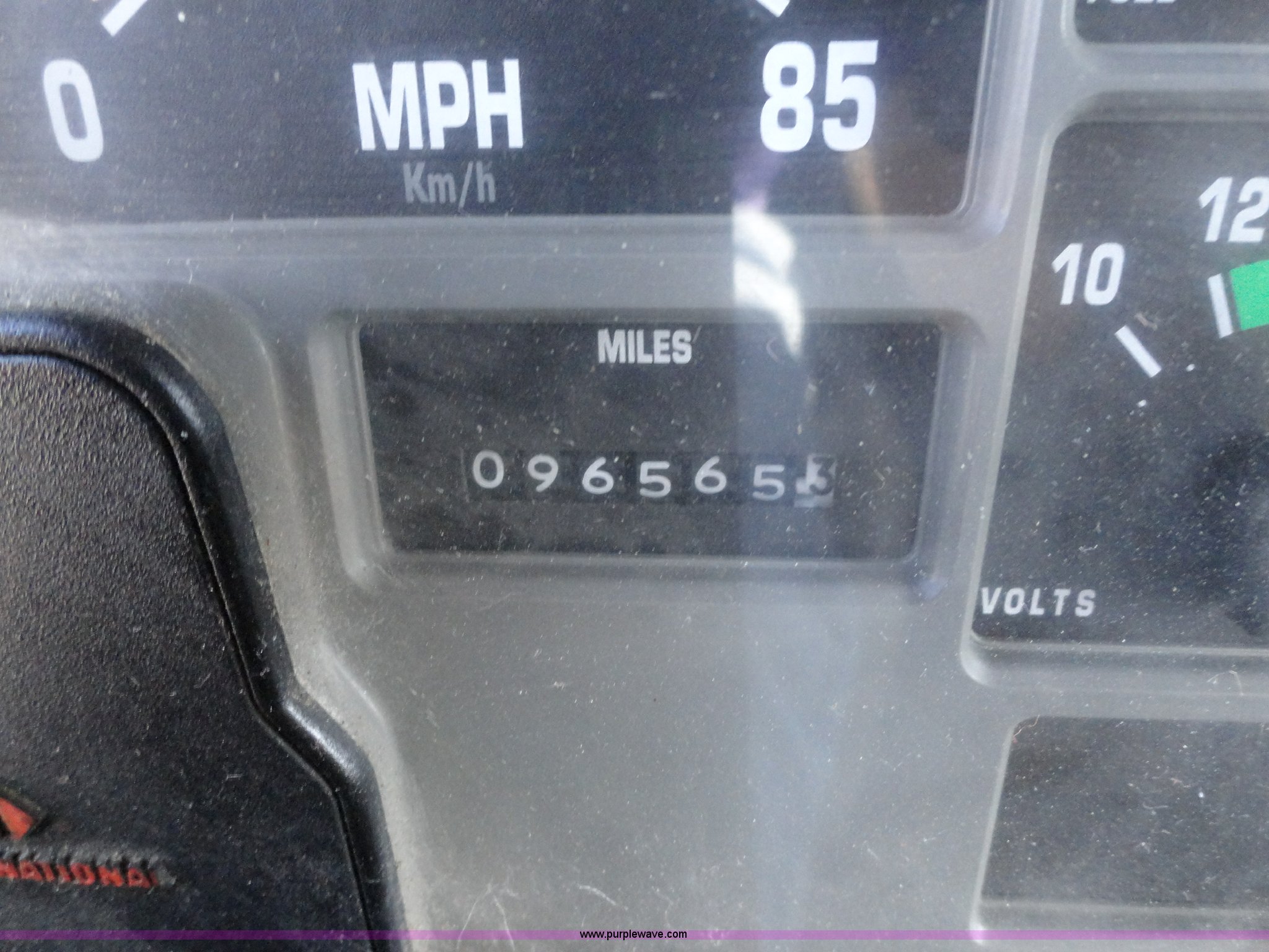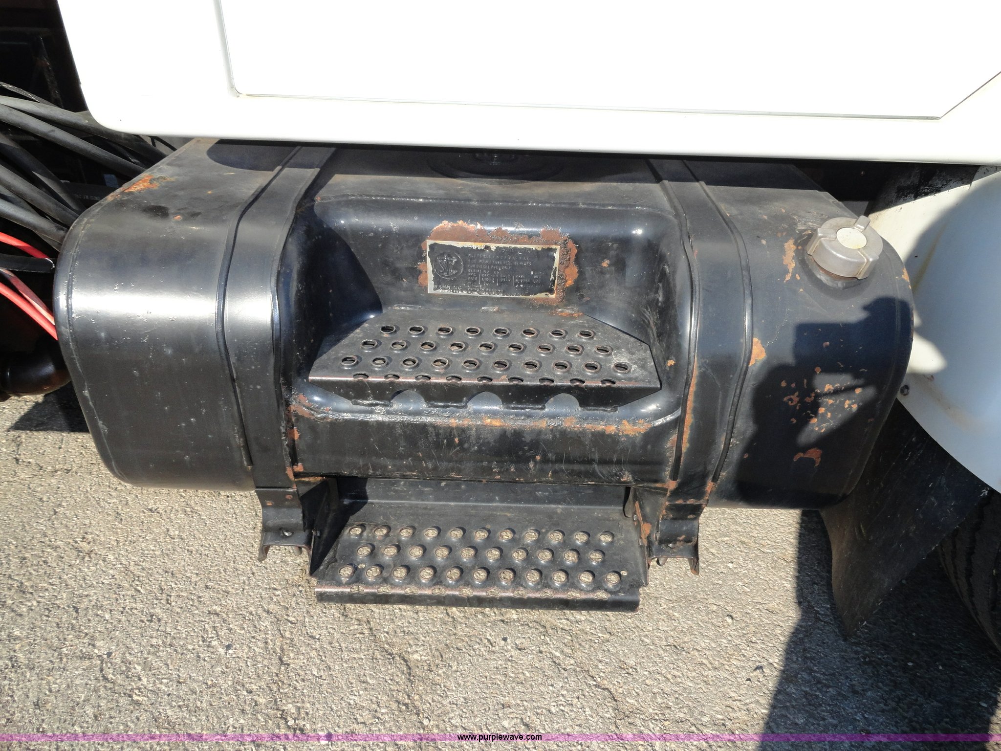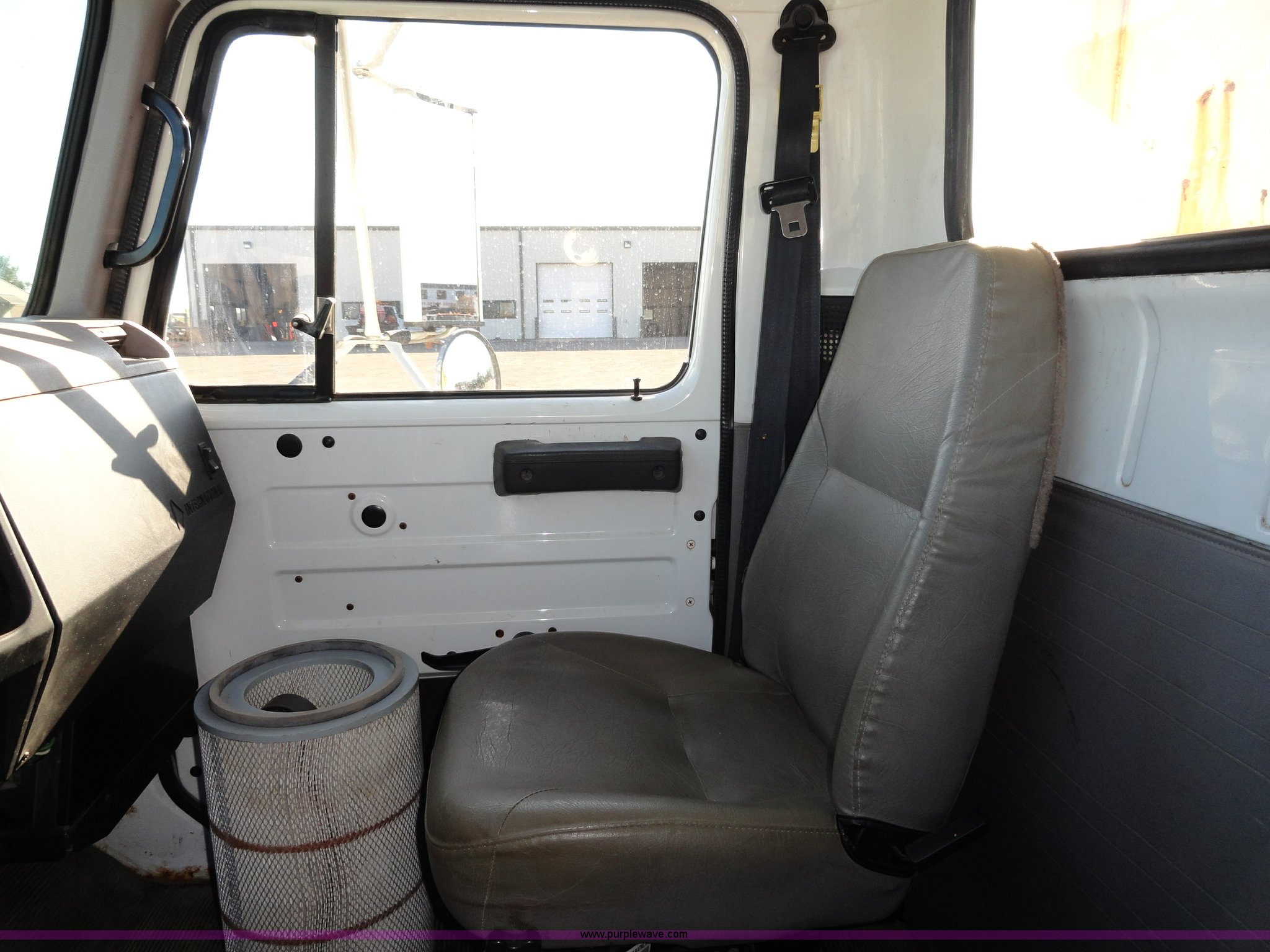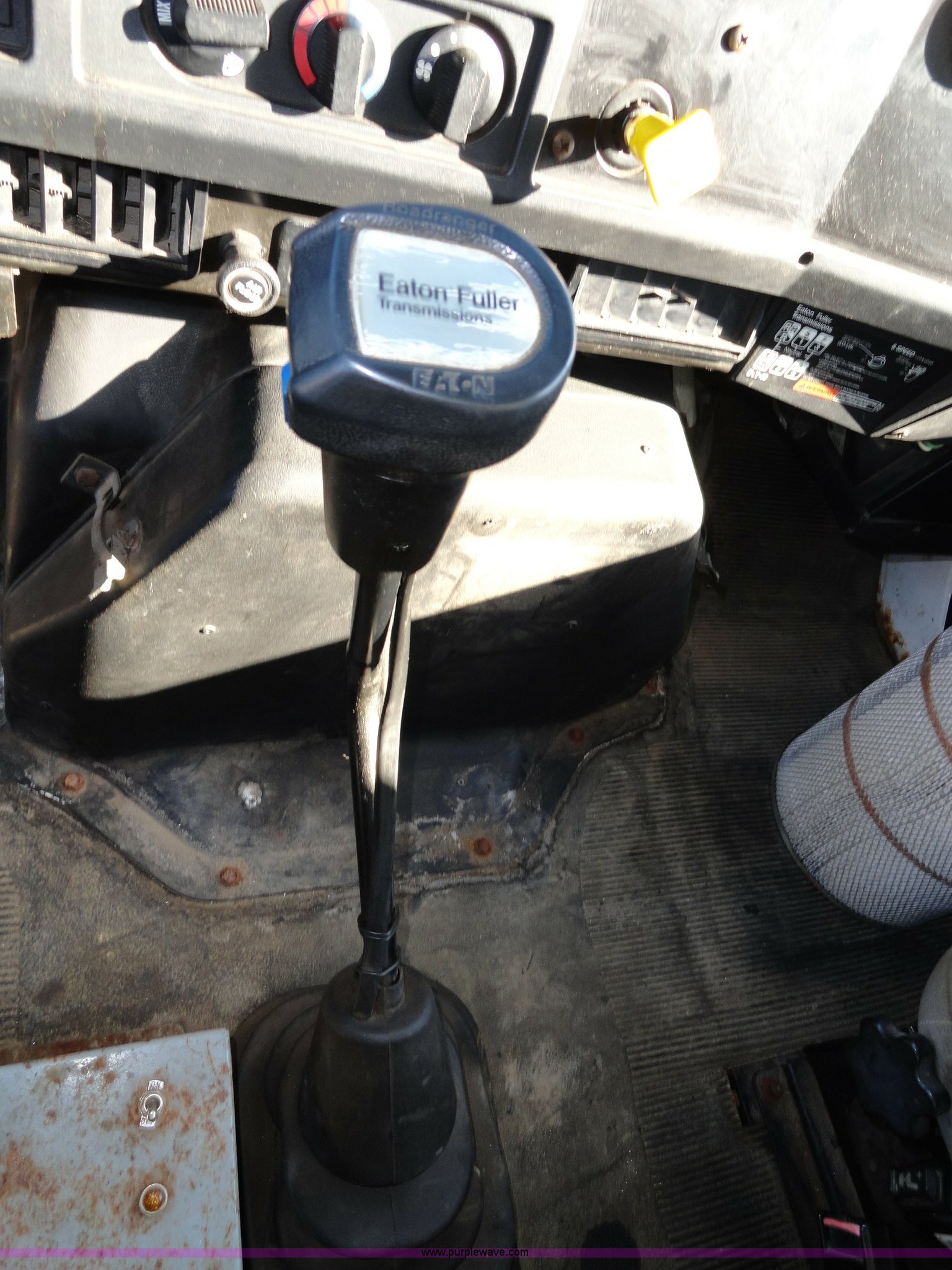 Purple Wave is selling a used Construction Dump Truck in Kansas. This item is a 1996 International 4900 dump truck with the following: 96,565 miles on odometer, Navistar DT466 7.6L diesel engine, 230 HP, Eaton Fuller eight speed manual transmission, Heater, AM/FM, Air ride seat, 9' dump bed, Manual end gate, Tailgate spreader, Flink 11' snow plow, Model 11PA38B, Serial 270, Flink plow mounting bracket, Strobe light power supply, 6' x 20" x 12" toolbox, Dual 50 gallon fuel tanks, Spring suspension, Pintle hitch, Trailer brake controller, Rear hydraulic hookup, PTO, Air brakes, 11R22.5 tires, Equip# 2067