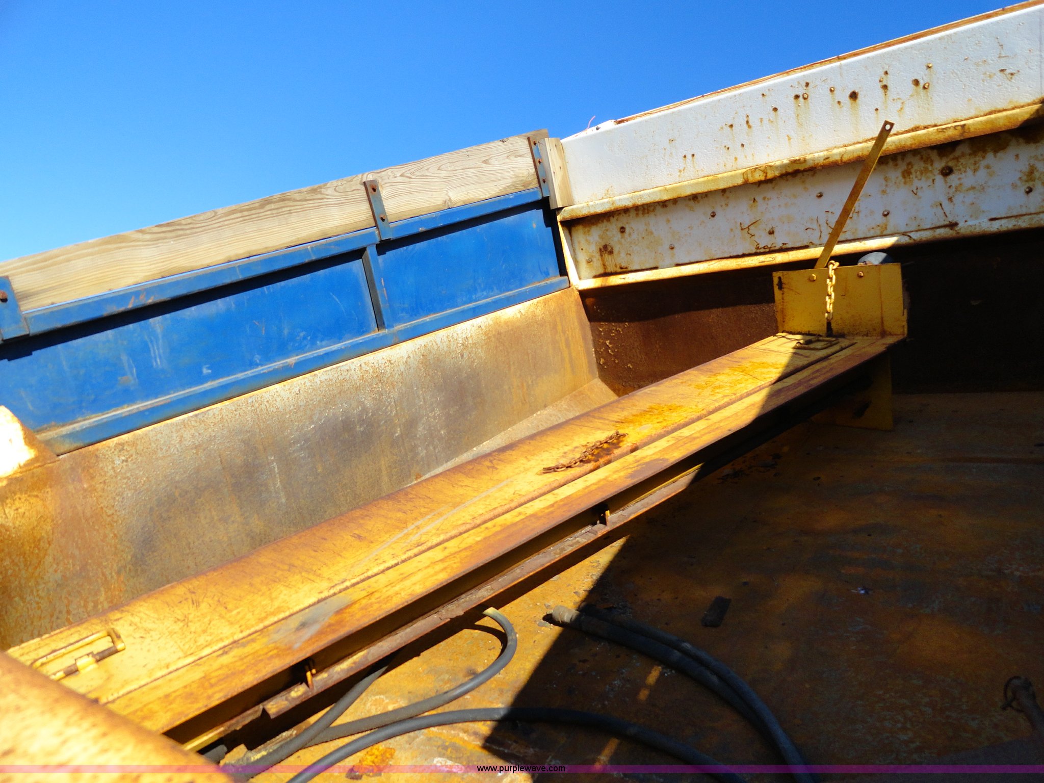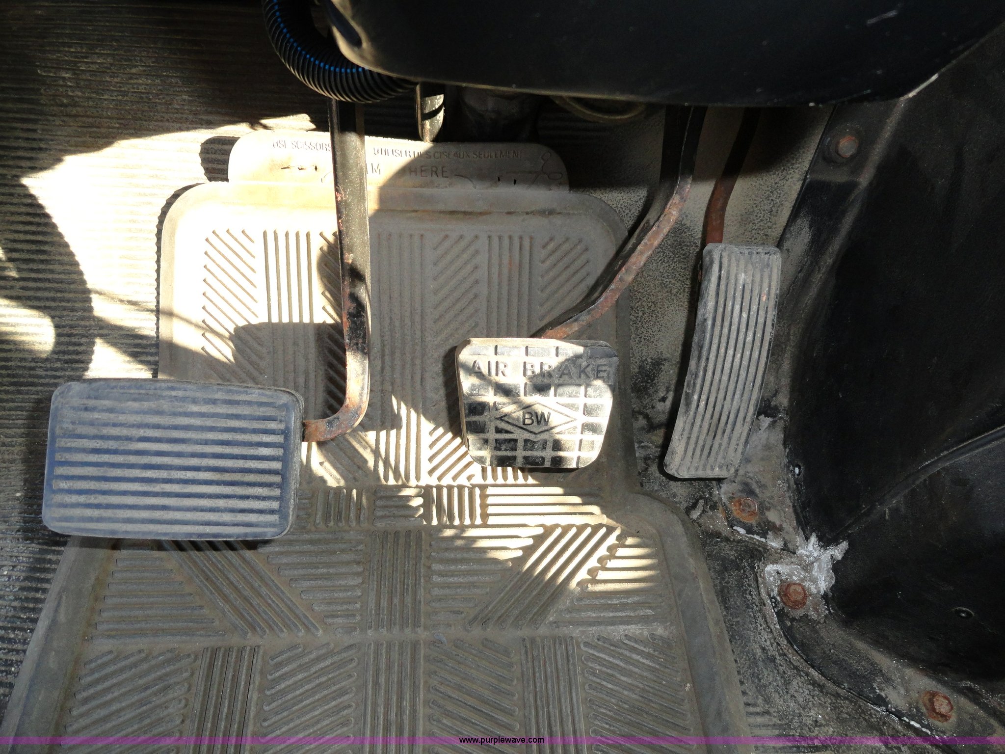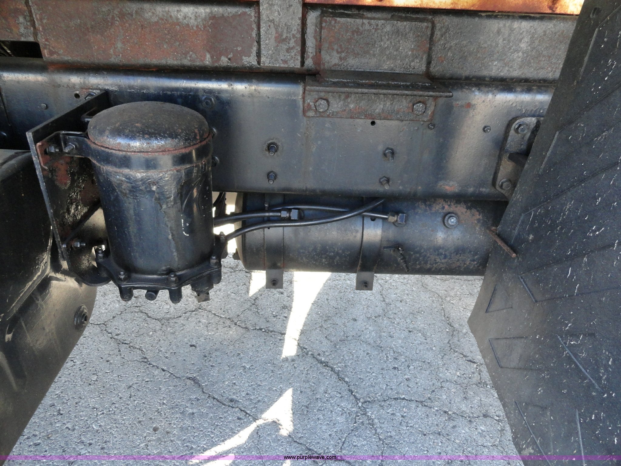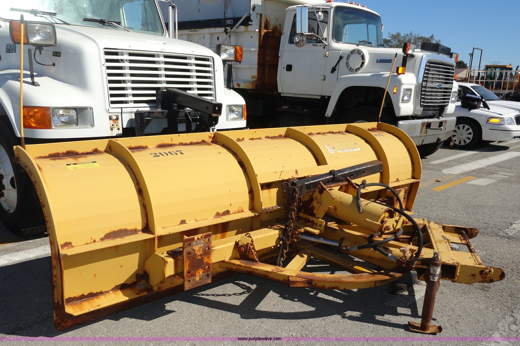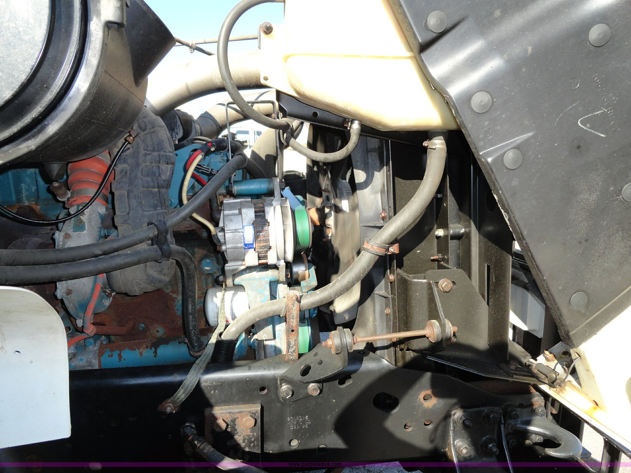 Purple Wave is selling a used Construction Dump Truck in Kansas. This item is a 1996 International 4900 dump truck with the following: 96,565 miles on odometer, Navistar DT466 7.6L diesel engine, 230 HP, Eaton Fuller eight speed manual transmission, Heater, AM/FM, Air ride seat, 9' dump bed, Manual end gate, Tailgate spreader, Flink 11' snow plow, Model 11PA38B, Serial 270, Flink plow mounting bracket, Strobe light power supply, 6' x 20" x 12" toolbox, Dual 50 gallon fuel tanks, Spring suspension, Pintle hitch, Trailer brake controller, Rear hydraulic hookup, PTO, Air brakes, 11R22.5 tires, Equip# 2067
