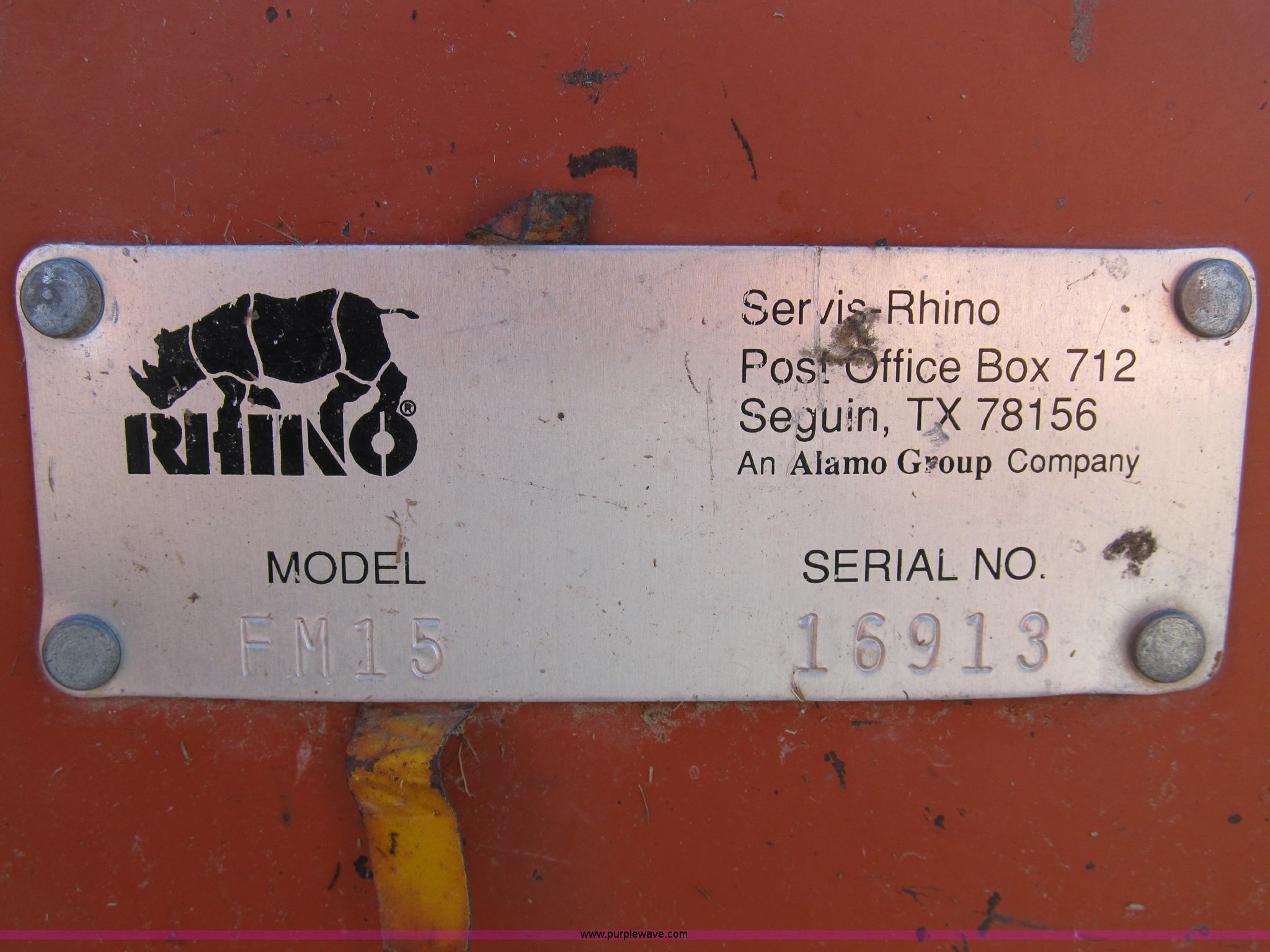 Take a look at this used Rhino FM15 rotary mower being sold on October 25th, 2011 in the SOLD! October 25 Kansas Turnpike Authority Internet Auction made by Rhino. Take a look at all of the item information below or take a look at similar auctions for Mowers and Other Ag Equipment.