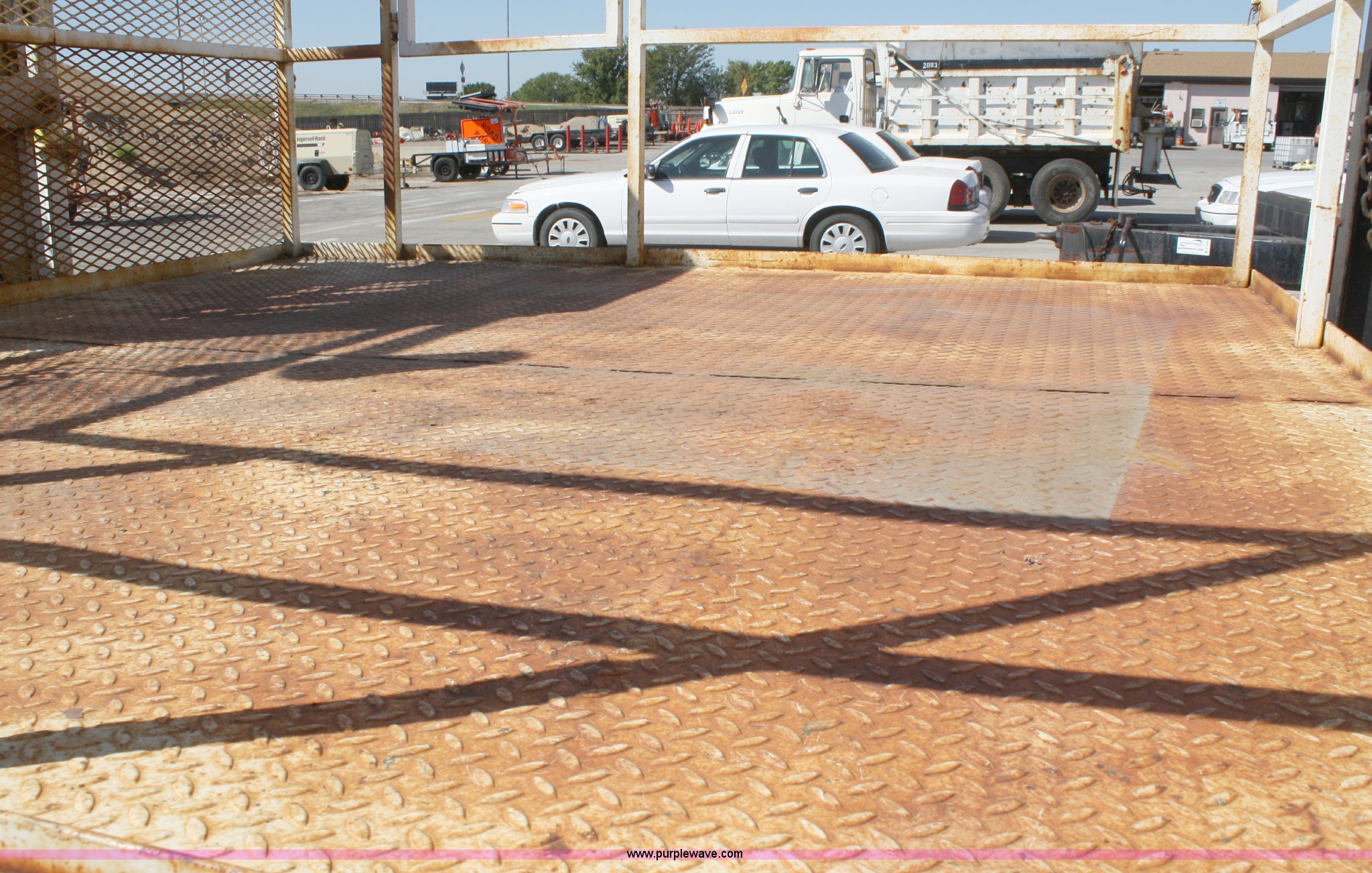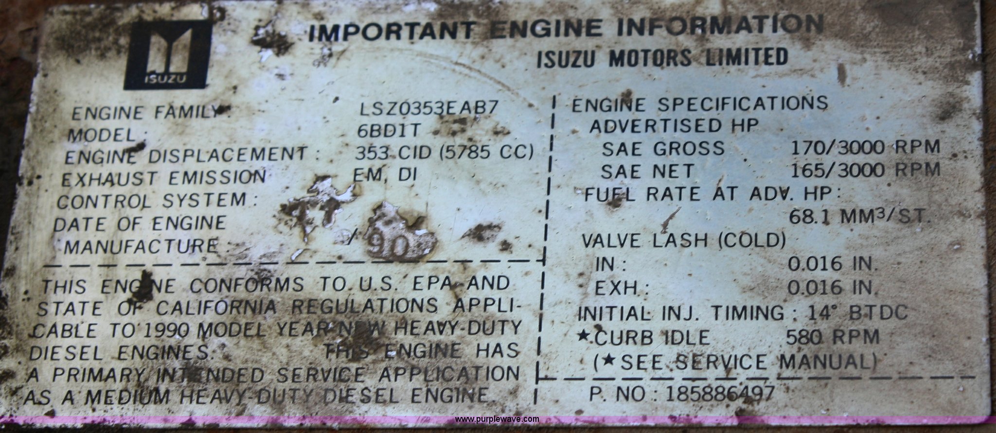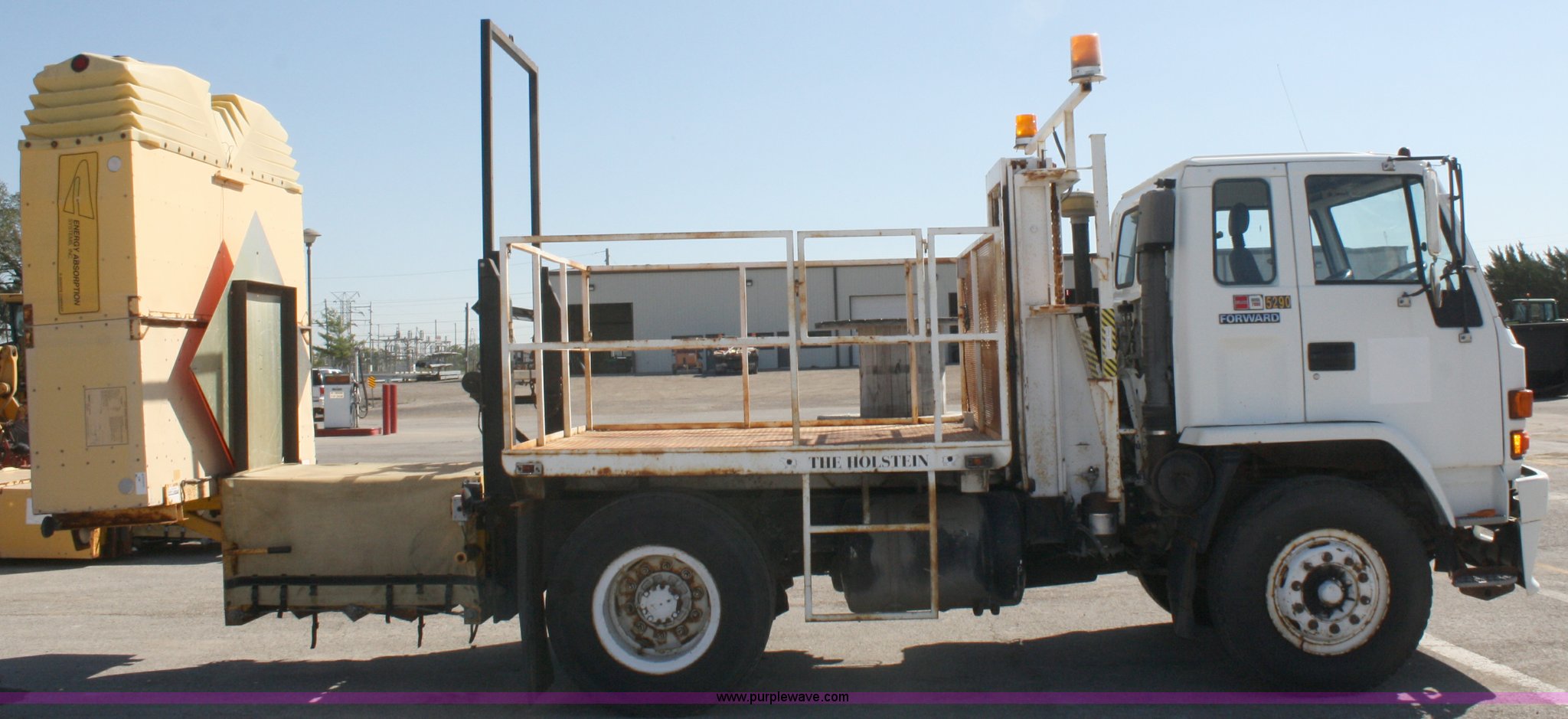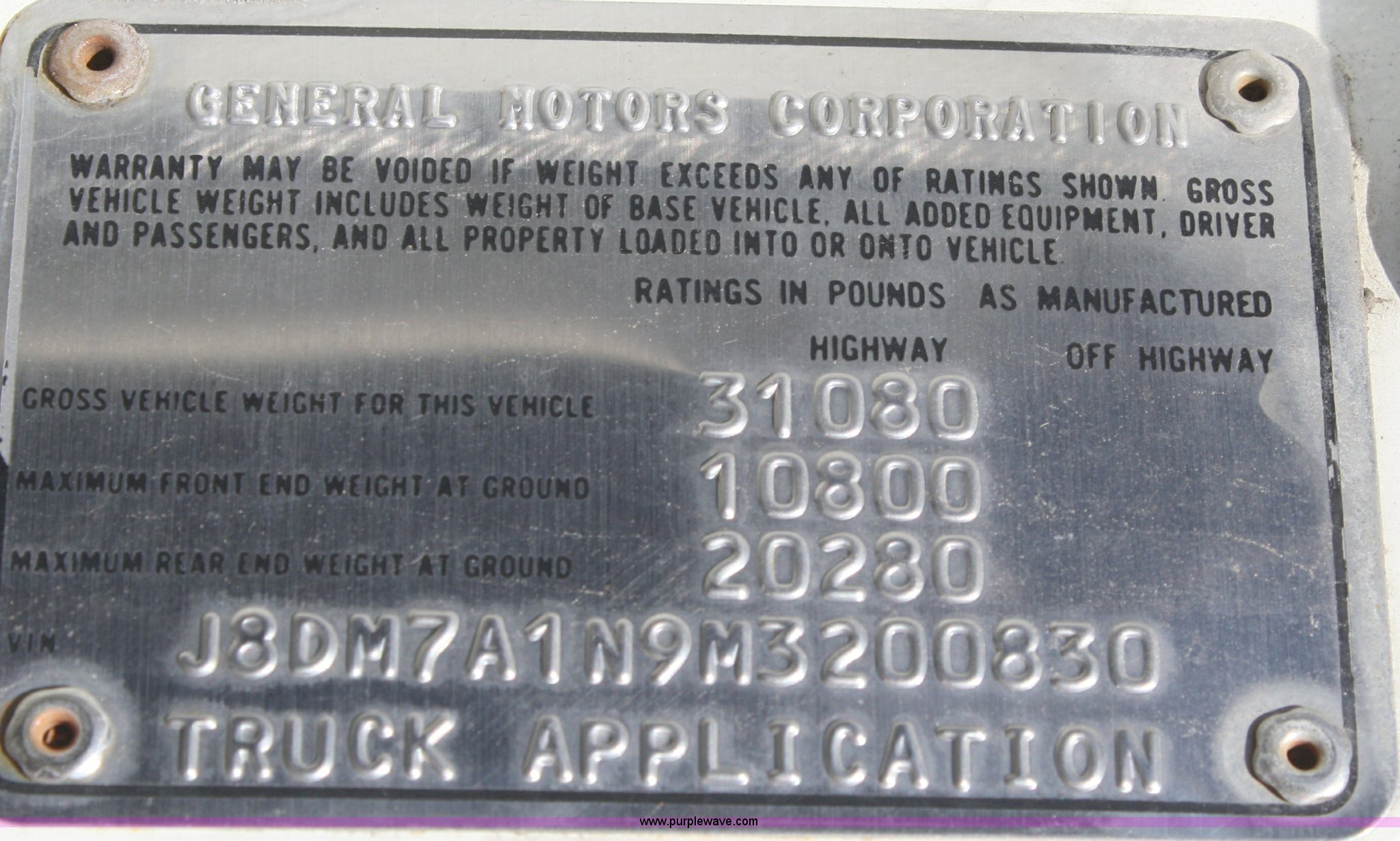 Purple Wave is selling a used Flat Bed Truck in Kansas. This item is a 1991 GMC 7000 lift truck with the following: 81,634 miles on odometer, 3,922 hours on meter, Isuzu 5.8L six cylinder diesel engine, 170 HP, Automatic transmission, 8' x 7.5' lift platform, 10.00R20 tires, 1996 energy absorption crash attenuator, Serial M02263