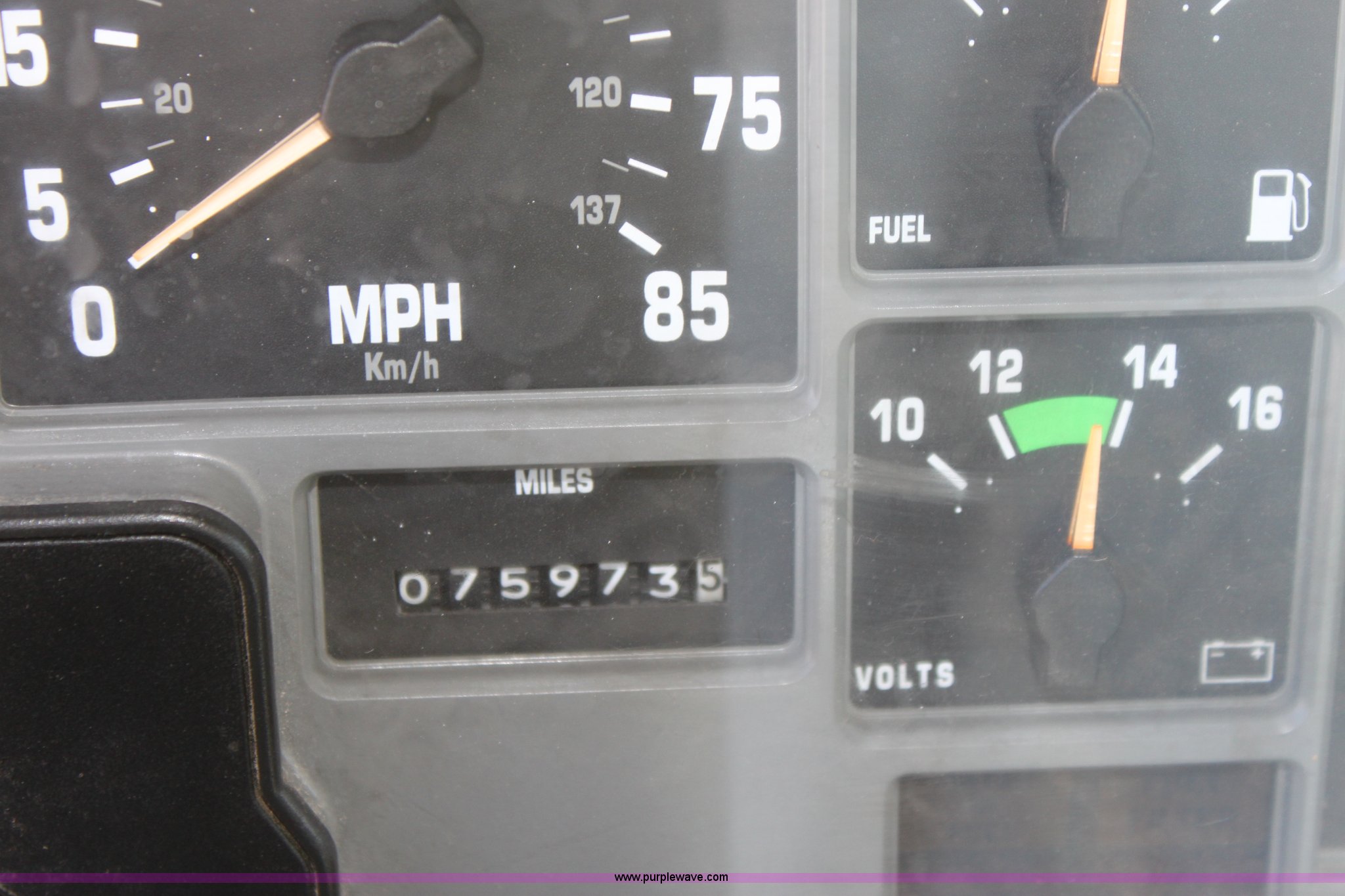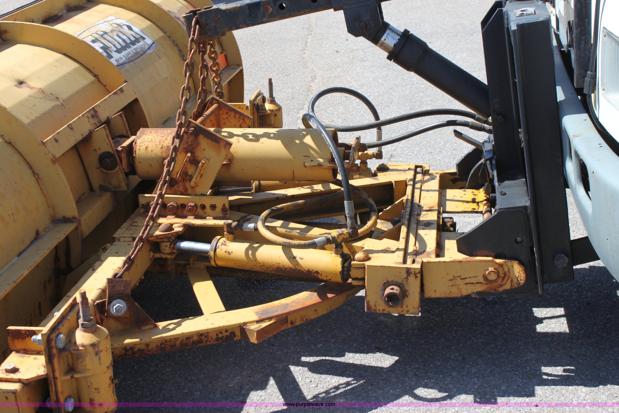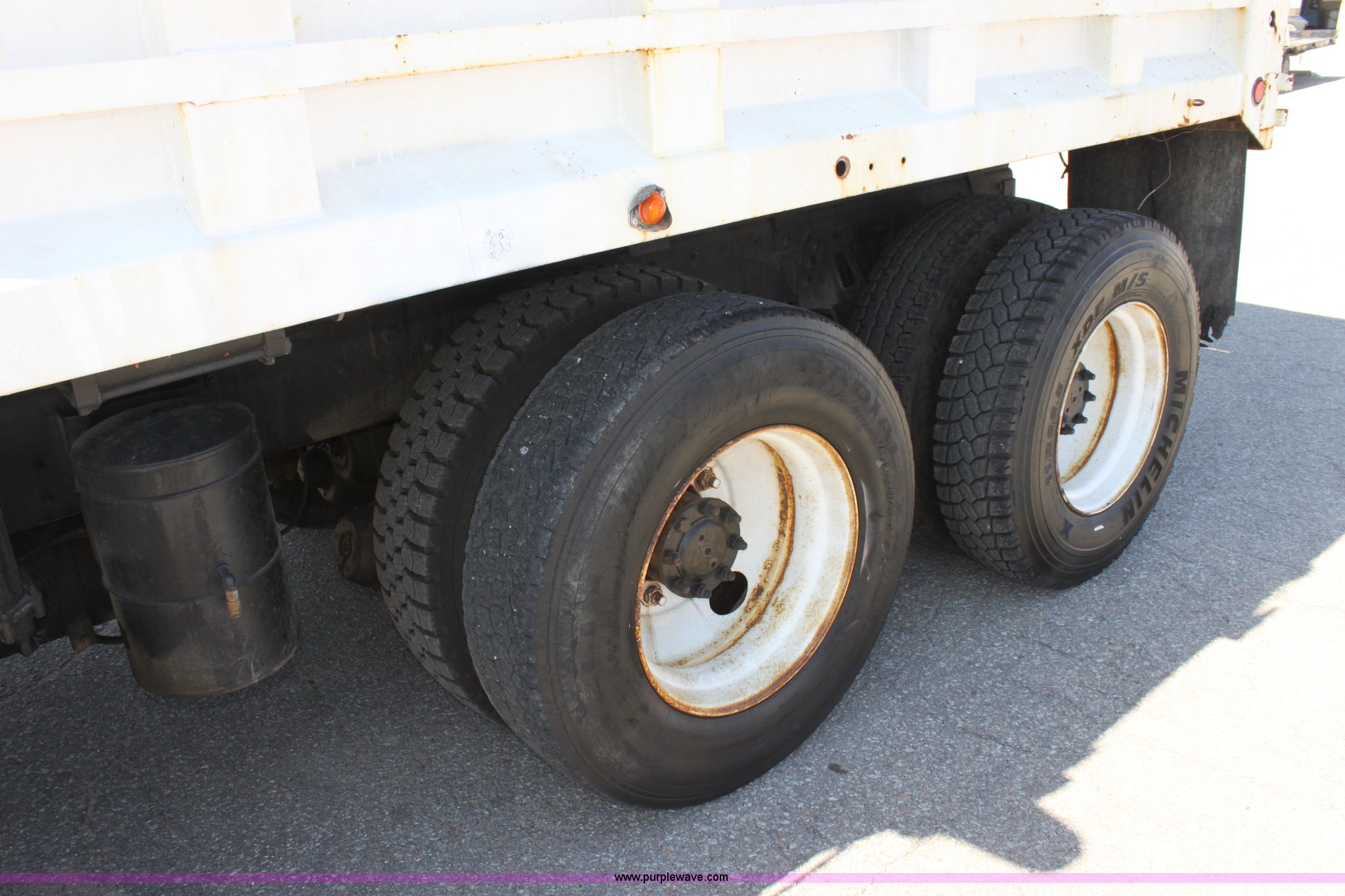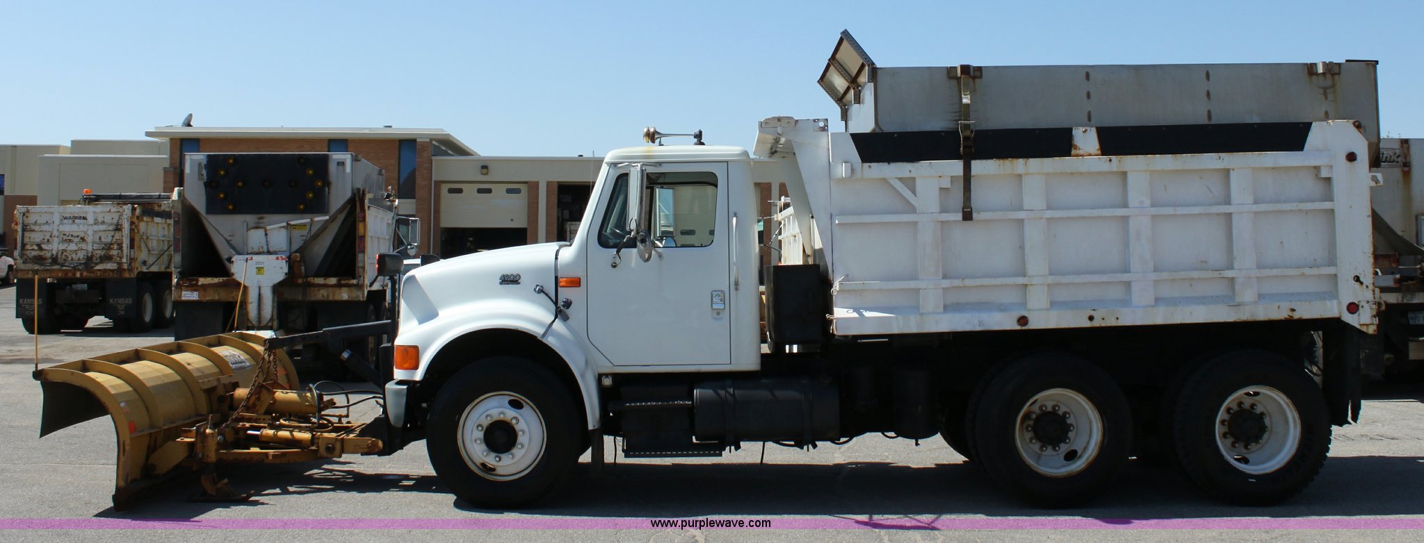 Purple Wave is selling a used Construction Dump Truck in Kansas. This item is a 1999 International 4900 tandem axle dump truck with plow and spreader with the following: 75,973 miles on odometer, 4,315 hours on meter, Navistar DT530 8.7L diesel engine, Allison automatic transmission, Heater, AM/FM/Cassette, Heated mirrors, Cruise, Power windows, Suspension seat, Chelsea PTO, Power divider lock, Gresen spreader controls, In-cab plow controls, Flink 11' snow plow, Stainless steel spreader box, Air brakes, Rear hydraulic remotes, Dual fuel tanks, Trailer wiring, Pintle hitch, 11R22.5 tires, Equip# 2040