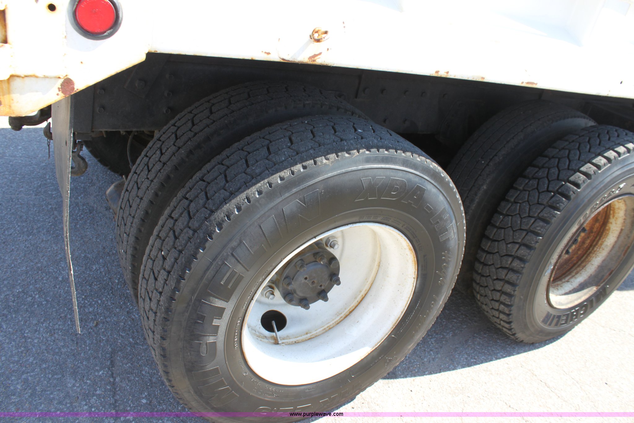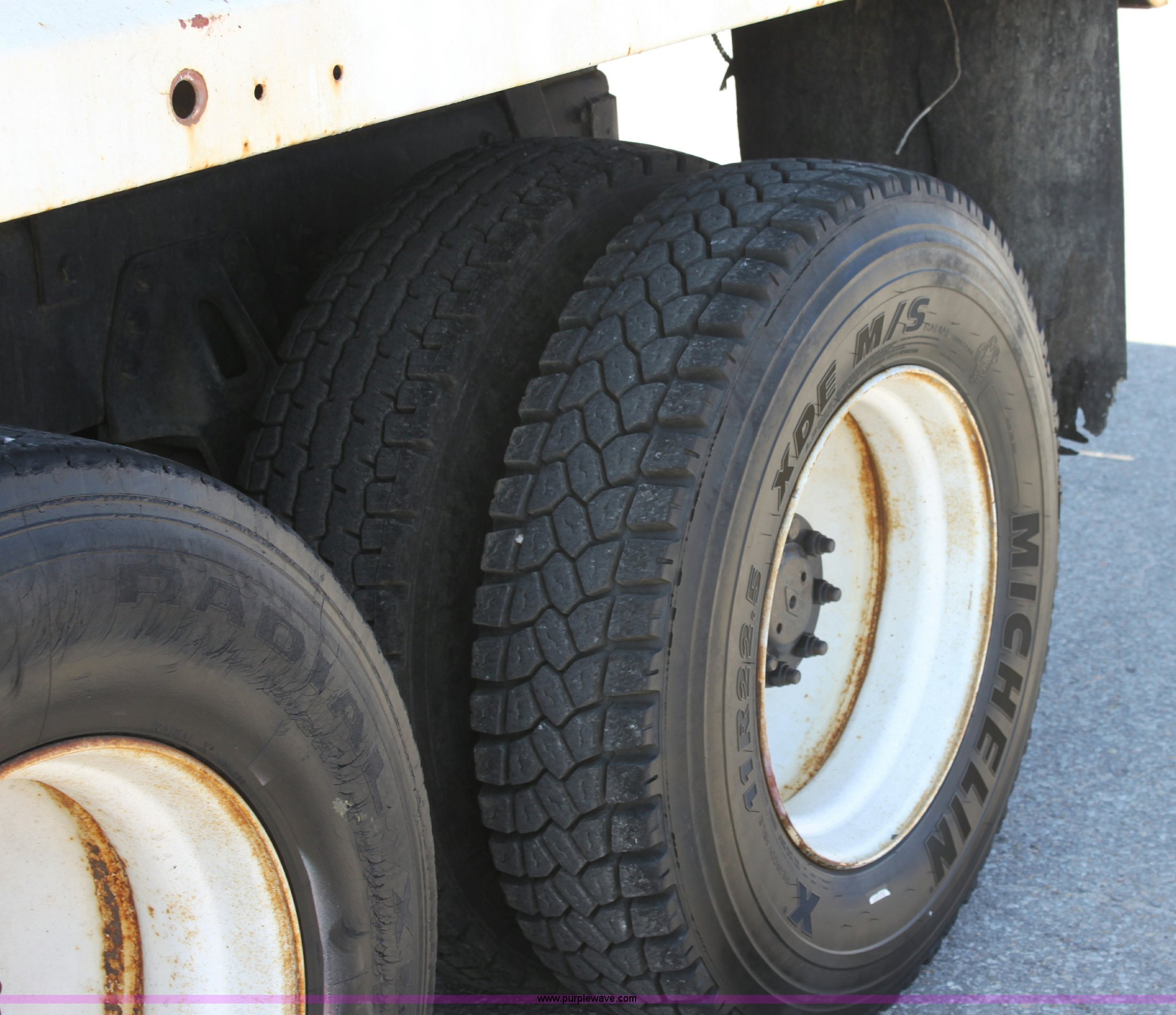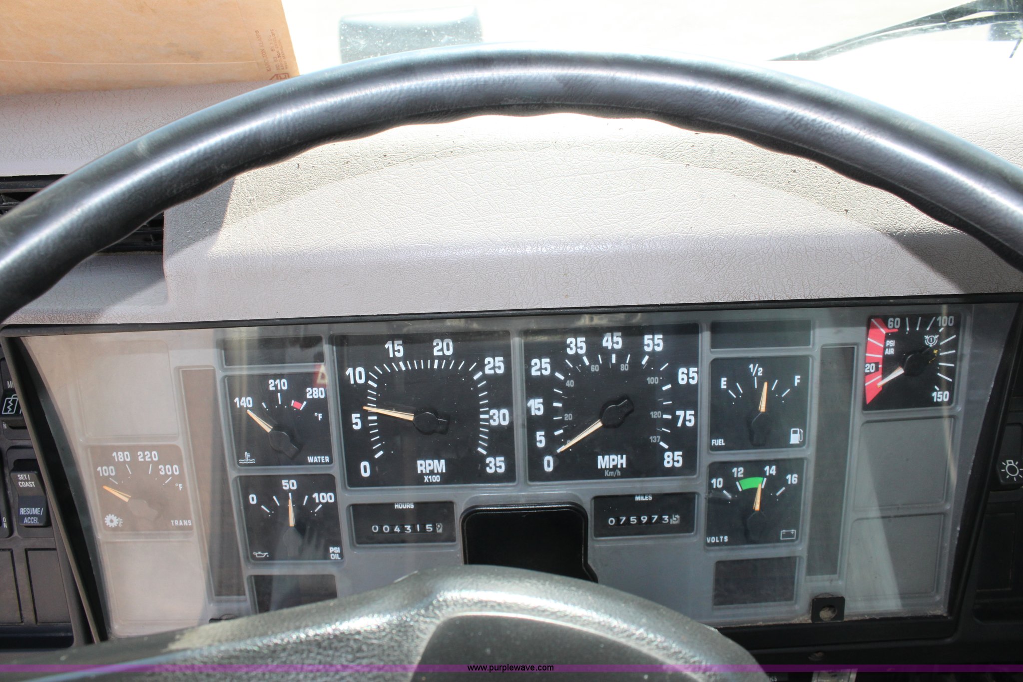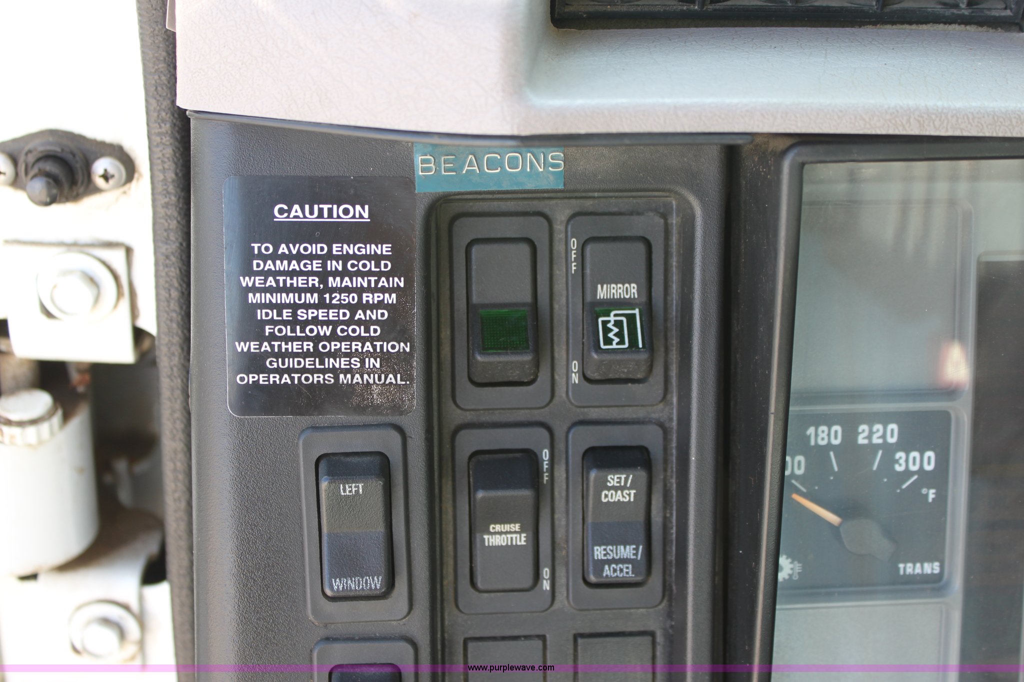 Purple Wave is selling a used Construction Dump Truck in Kansas. This item is a 1999 International 4900 tandem axle dump truck with plow and spreader with the following: 75,973 miles on odometer, 4,315 hours on meter, Navistar DT530 8.7L diesel engine, Allison automatic transmission, Heater, AM/FM/Cassette, Heated mirrors, Cruise, Power windows, Suspension seat, Chelsea PTO, Power divider lock, Gresen spreader controls, In-cab plow controls, Flink 11' snow plow, Stainless steel spreader box, Air brakes, Rear hydraulic remotes, Dual fuel tanks, Trailer wiring, Pintle hitch, 11R22.5 tires, Equip# 2040