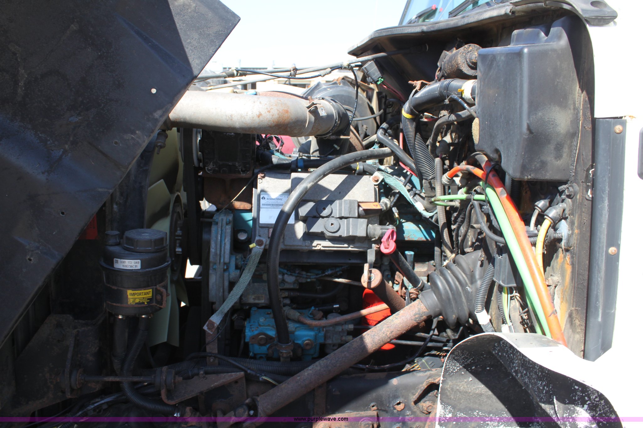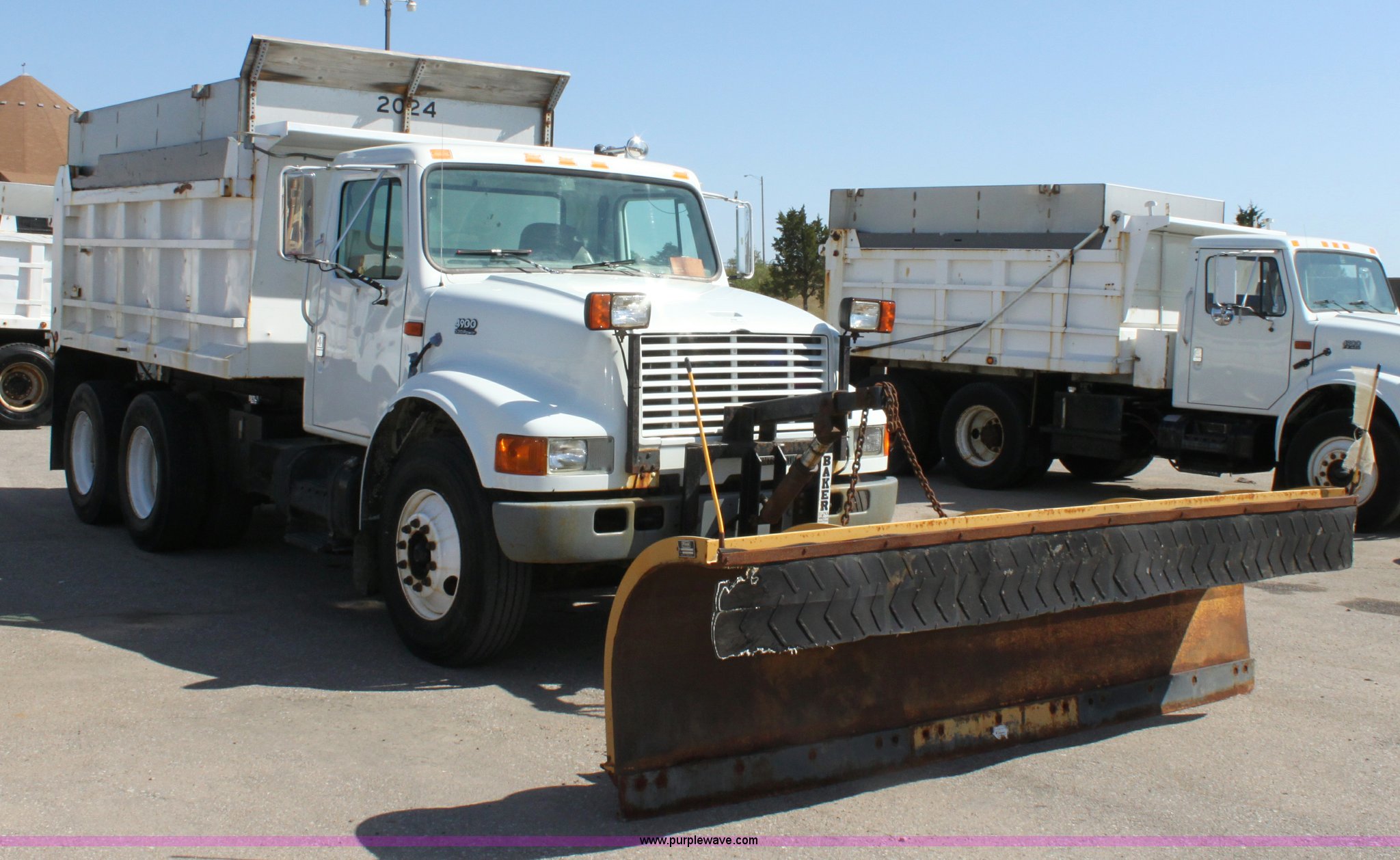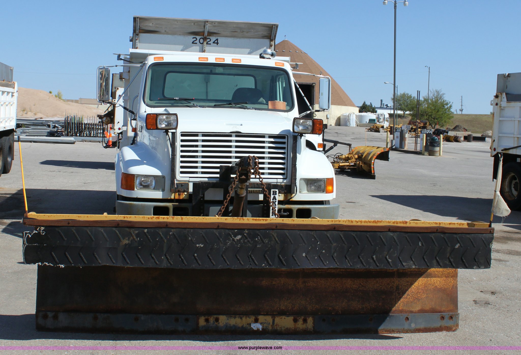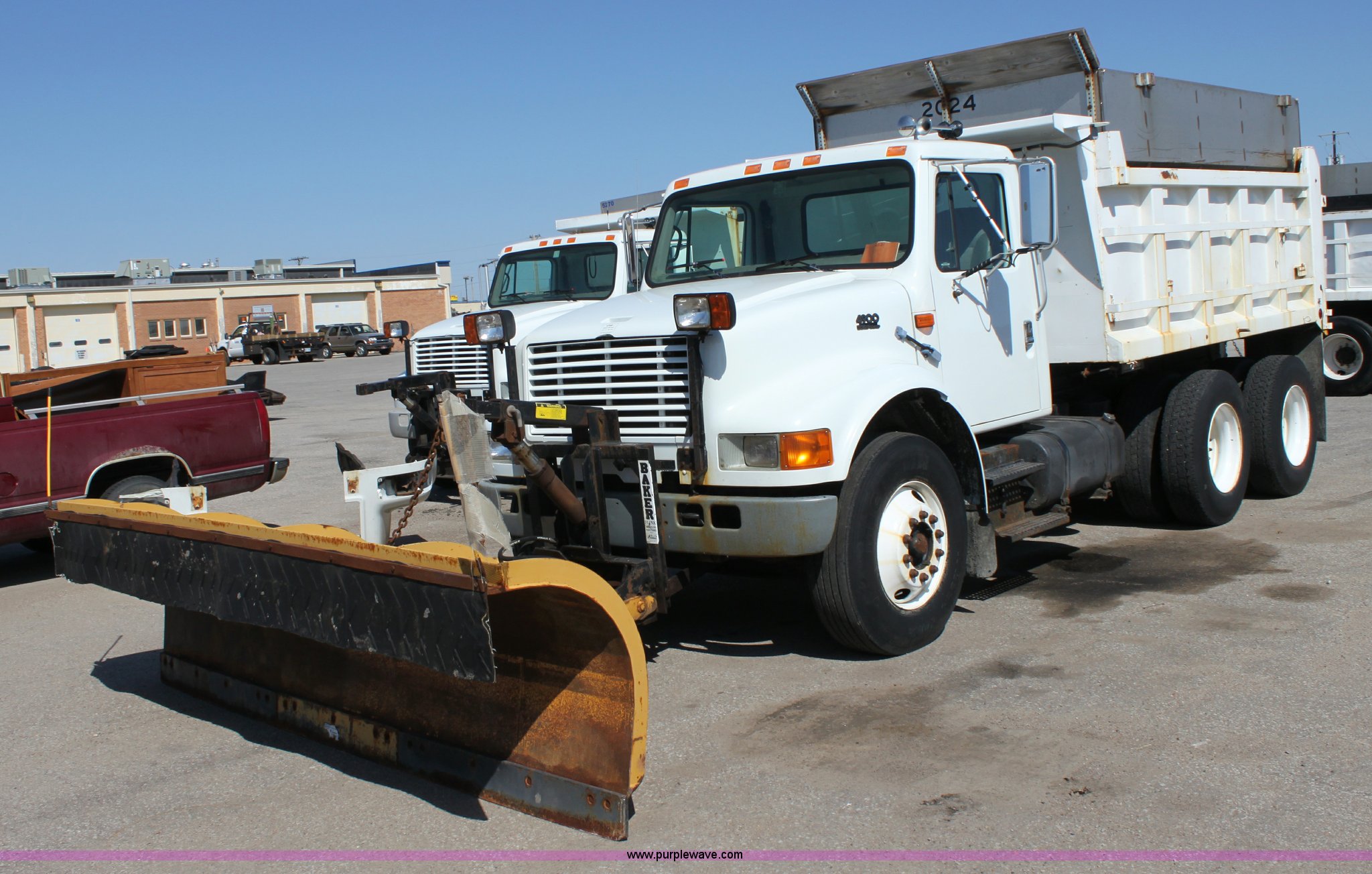 Purple Wave is selling a used Construction Dump Truck in Kansas. This item is a 1999 International 4900 tandem axle dump truck with plow and spreader with the following: 78,123 miles on odometer, 4,092 hours on meter, Navistar DT530 8.7L diesel engine, Allison automatic transmission, Low clutch pressure, AC and heat, AM/FM/Cassette, Heated mirrors, Cruise, Power windows, Suspension seat, Chelsea PTO, Locking power divider, Greesen in-cab plow controls, Air operated end gate, Flink 11' snow plow, Flink stainless steel spreader, Air brakes, Rear hydraulic remotes, Pintle hitch, 11R22.5 tires, Equip# 2024