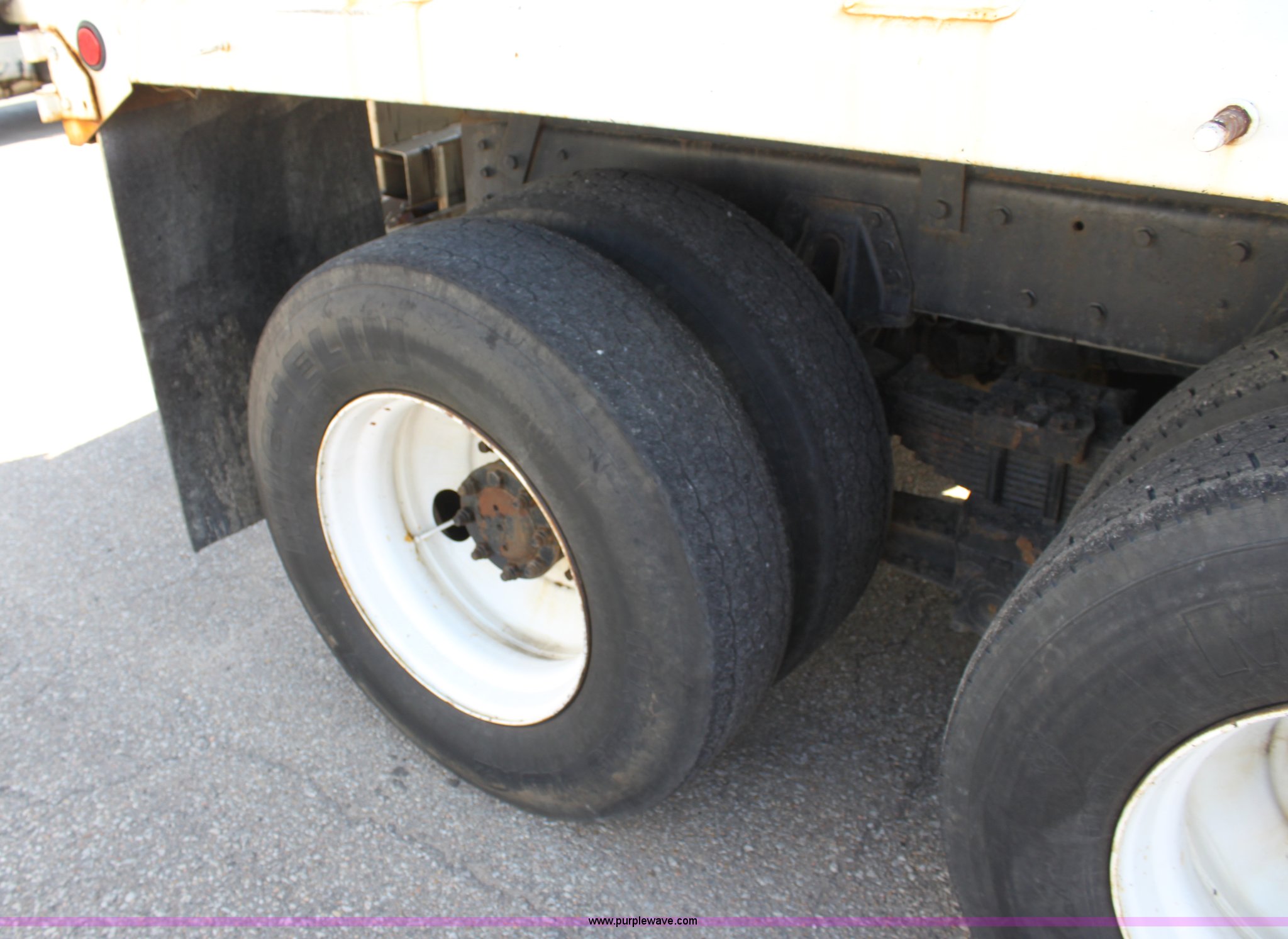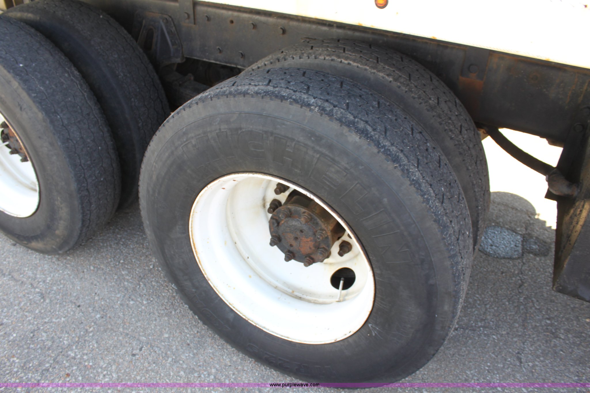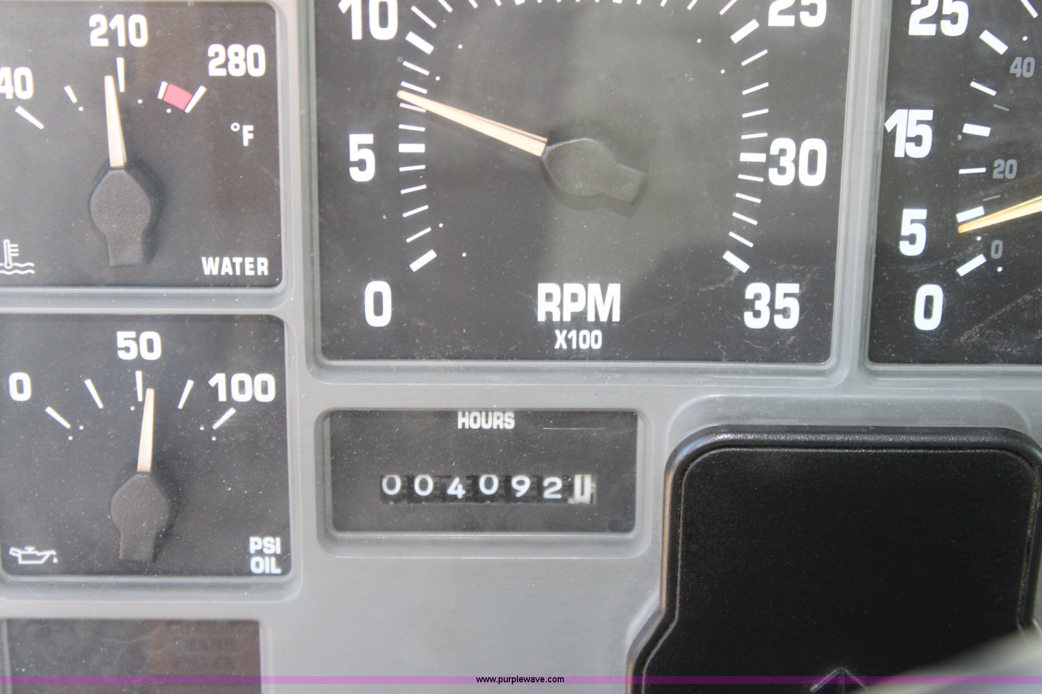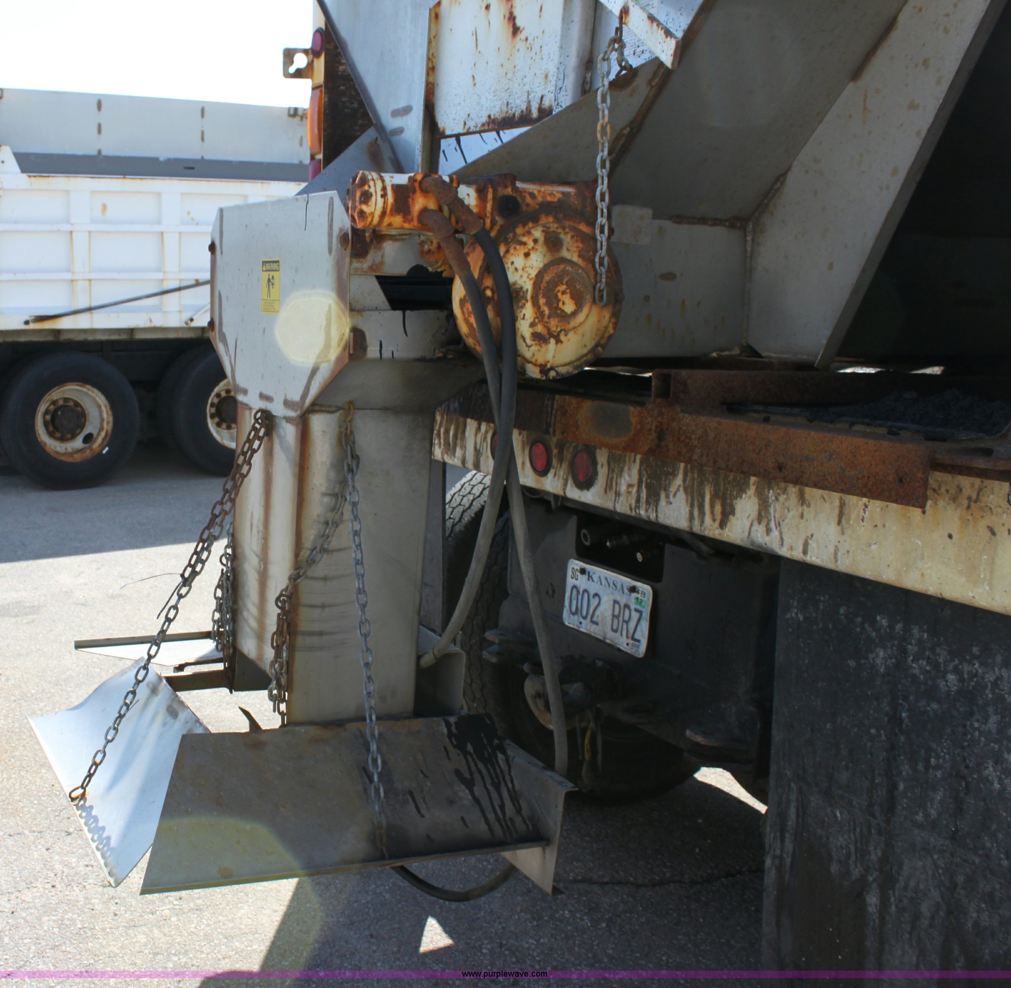 Purple Wave is selling a used Construction Dump Truck in Kansas. This item is a 1999 International 4900 tandem axle dump truck with plow and spreader with the following: 78,123 miles on odometer, 4,092 hours on meter, Navistar DT530 8.7L diesel engine, Allison automatic transmission, Low clutch pressure, AC and heat, AM/FM/Cassette, Heated mirrors, Cruise, Power windows, Suspension seat, Chelsea PTO, Locking power divider, Greesen in-cab plow controls, Air operated end gate, Flink 11' snow plow, Flink stainless steel spreader, Air brakes, Rear hydraulic remotes, Pintle hitch, 11R22.5 tires, Equip# 2024