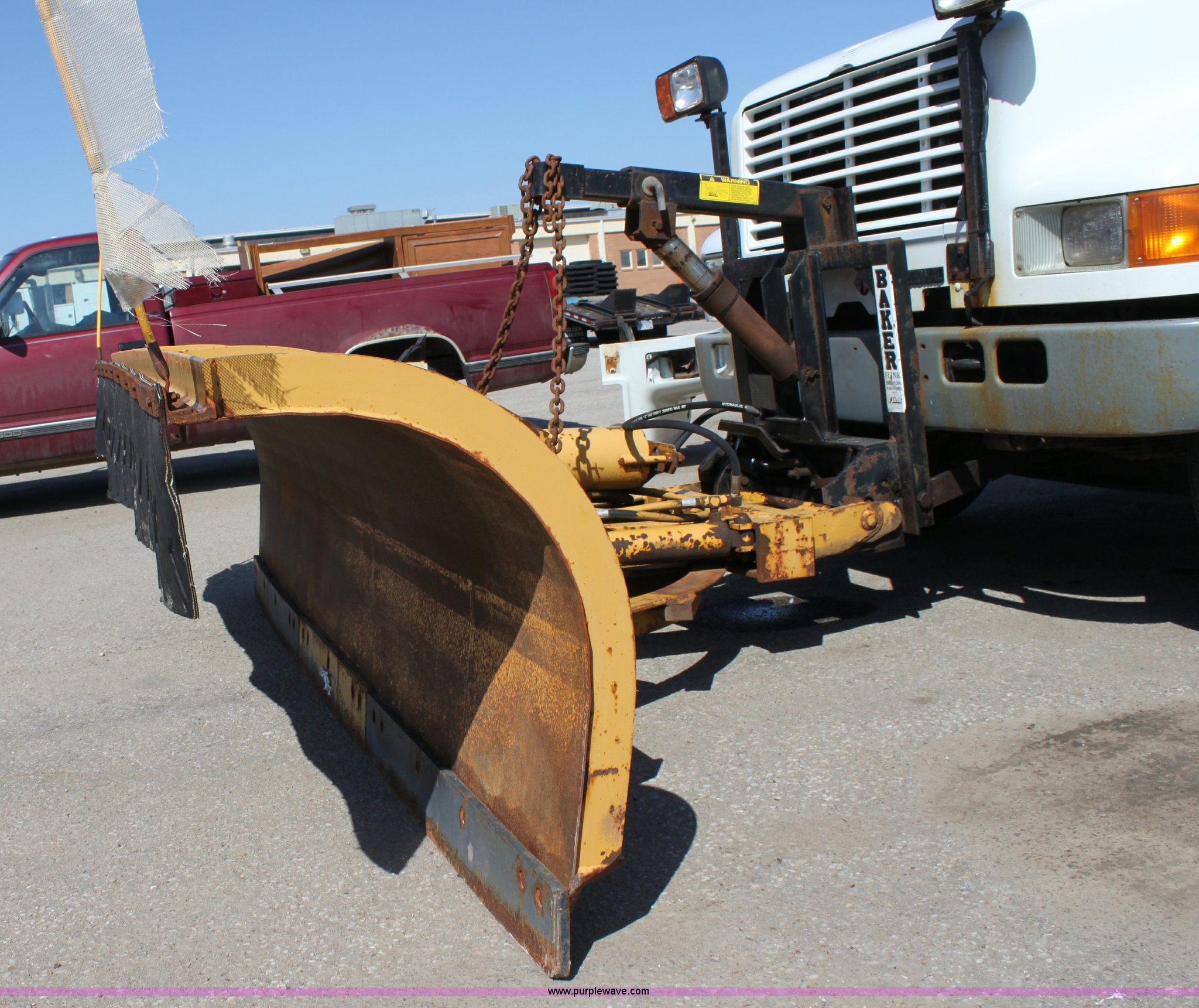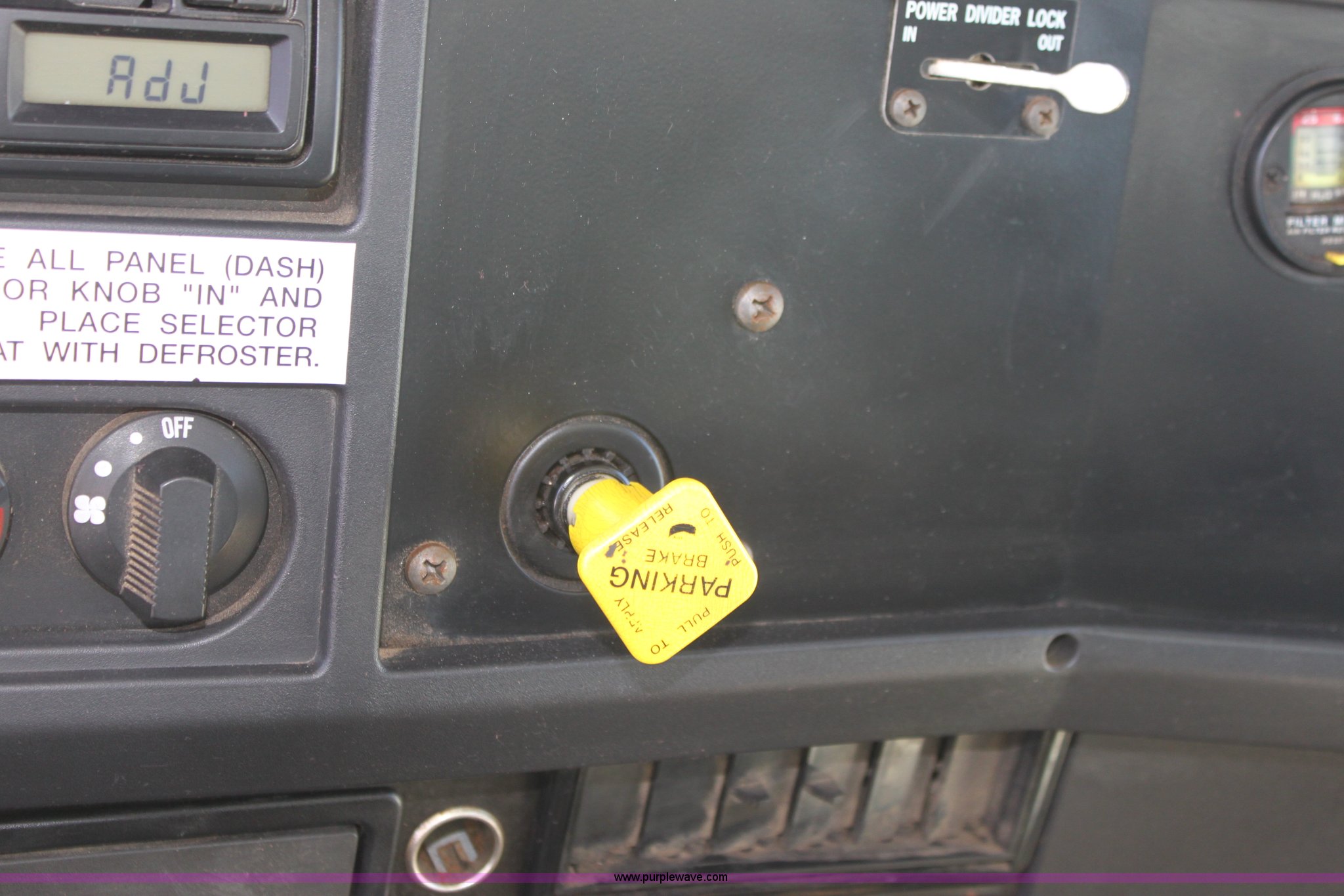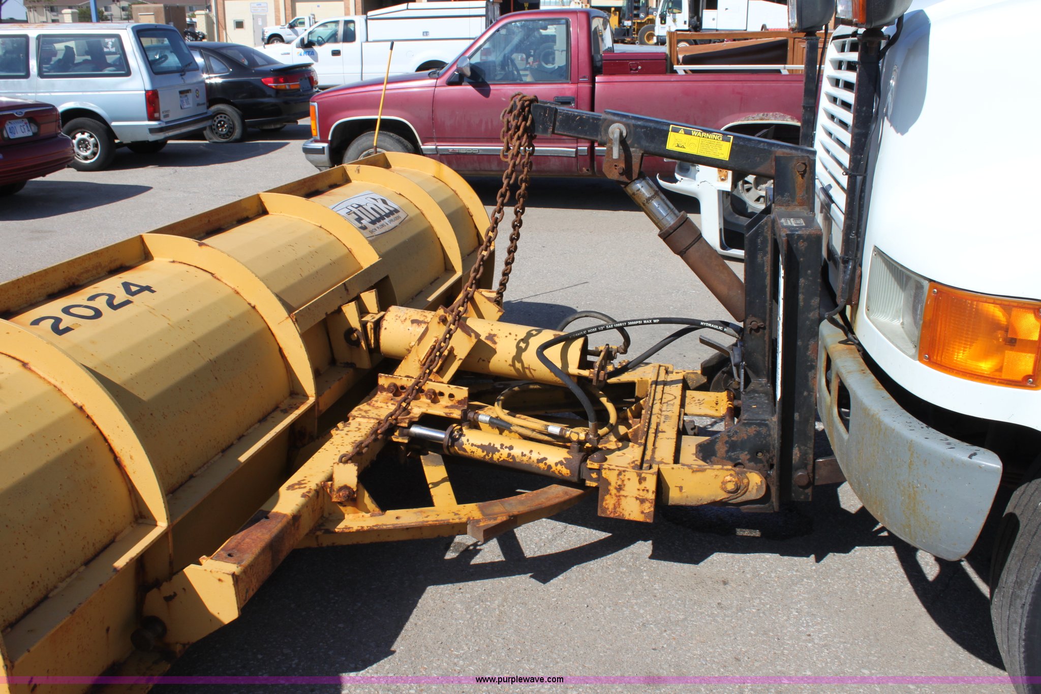 1999 International 4900 tandem axle dump truck with plow and spreader. 78,123 miles on odometer, 4,092 hours on meter, Navistar DT530 8.7L diesel engine, Allison automatic transmission Low clutch pressure, AC and heat, AM/FM/Cassette, Heated mirrors, Cruise, Power windows, Suspension seat, Chelsea PTO, Locking power divider, Greesen in-cab plow controls, Air operated end gate, Flink 11' snow plow, Flink stainless steel spreader, Air brakes, Rear hydraulic remotes, Pintle hitch, 11R22.5 tires, Equip# 2024. 1HTSHADR9XH636575. Shipping quotes available. Kansas Turnpike Authority. 9401 E Kellog. Wichita, KS 67207