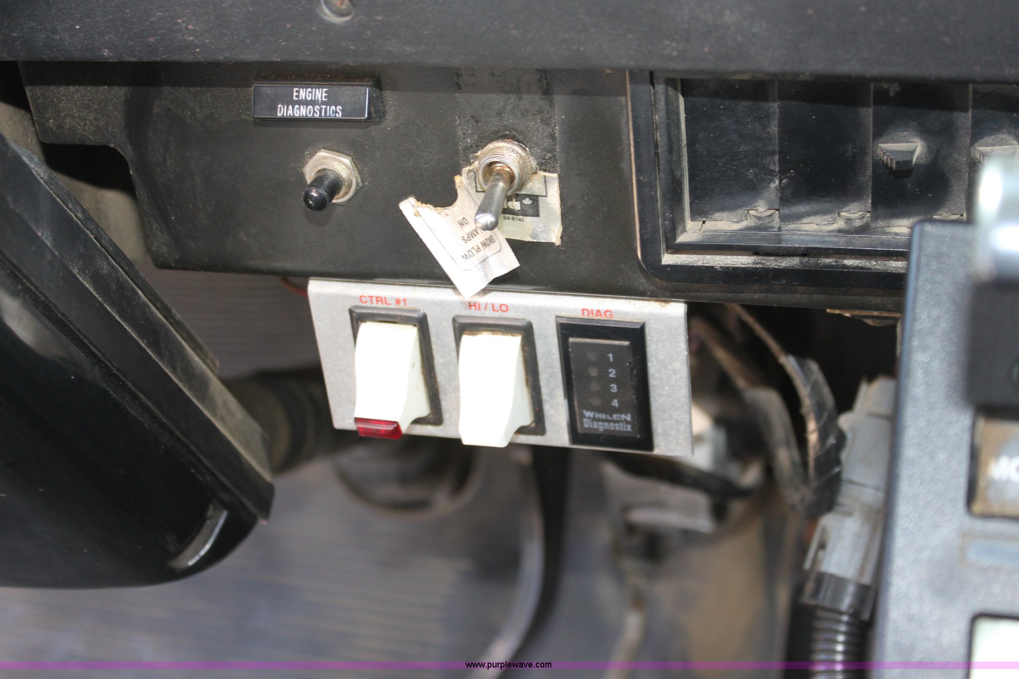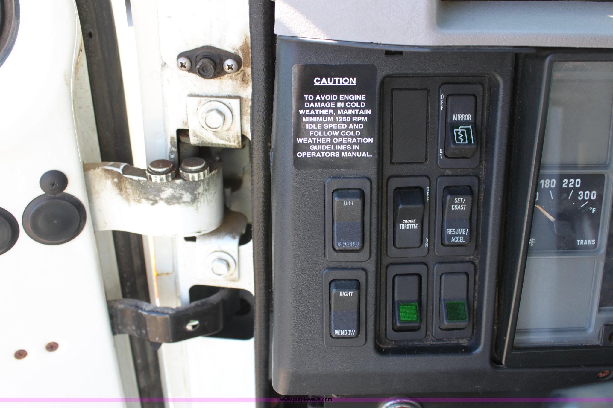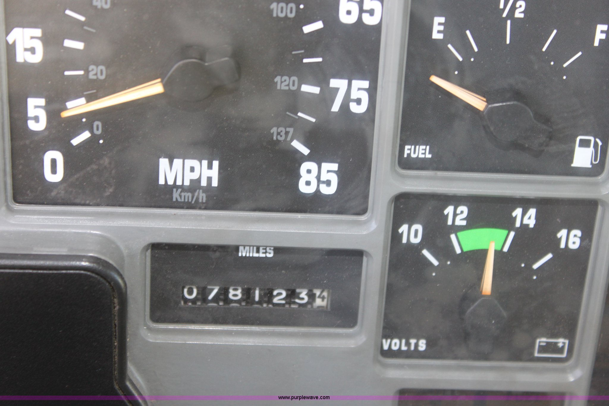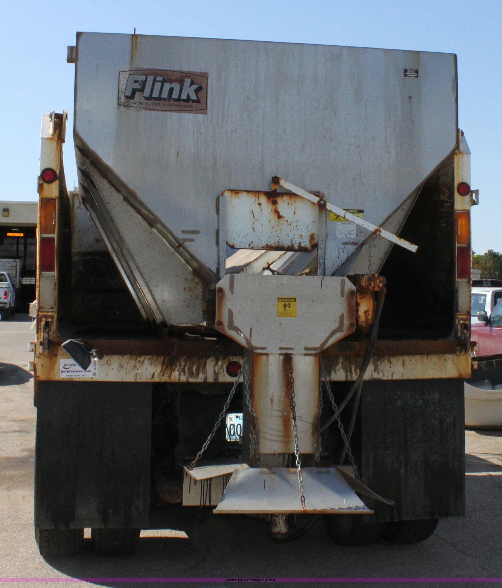 1999 International 4900 tandem axle dump truck with plow and spreader. 78,123 miles on odometer, 4,092 hours on meter, Navistar DT530 8.7L diesel engine, Allison automatic transmission Low clutch pressure, AC and heat, AM/FM/Cassette, Heated mirrors, Cruise, Power windows, Suspension seat, Chelsea PTO, Locking power divider, Greesen in-cab plow controls, Air operated end gate, Flink 11' snow plow, Flink stainless steel spreader, Air brakes, Rear hydraulic remotes, Pintle hitch, 11R22.5 tires, Equip# 2024. 1HTSHADR9XH636575. Shipping quotes available. Kansas Turnpike Authority. 9401 E Kellog. Wichita, KS 67207
