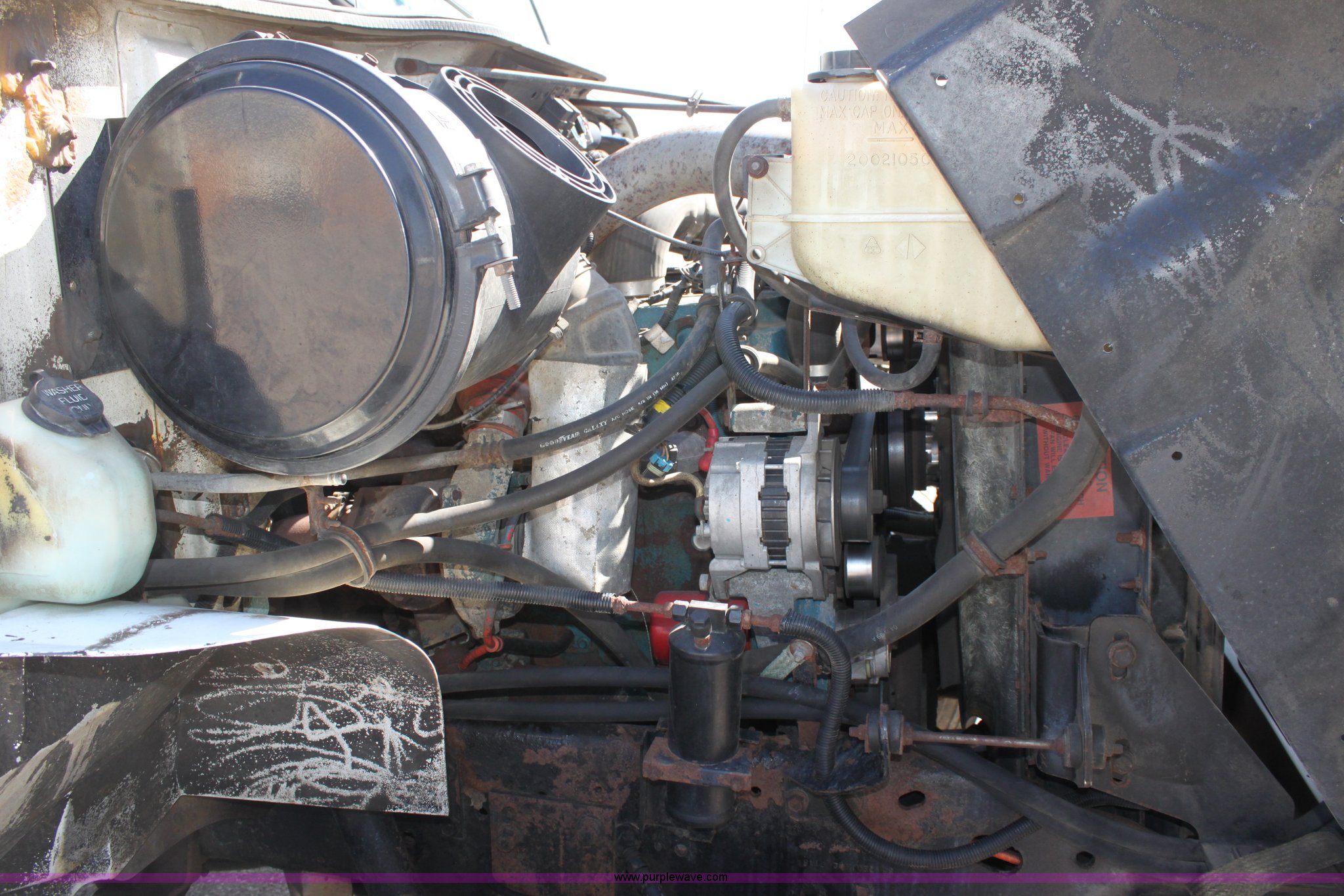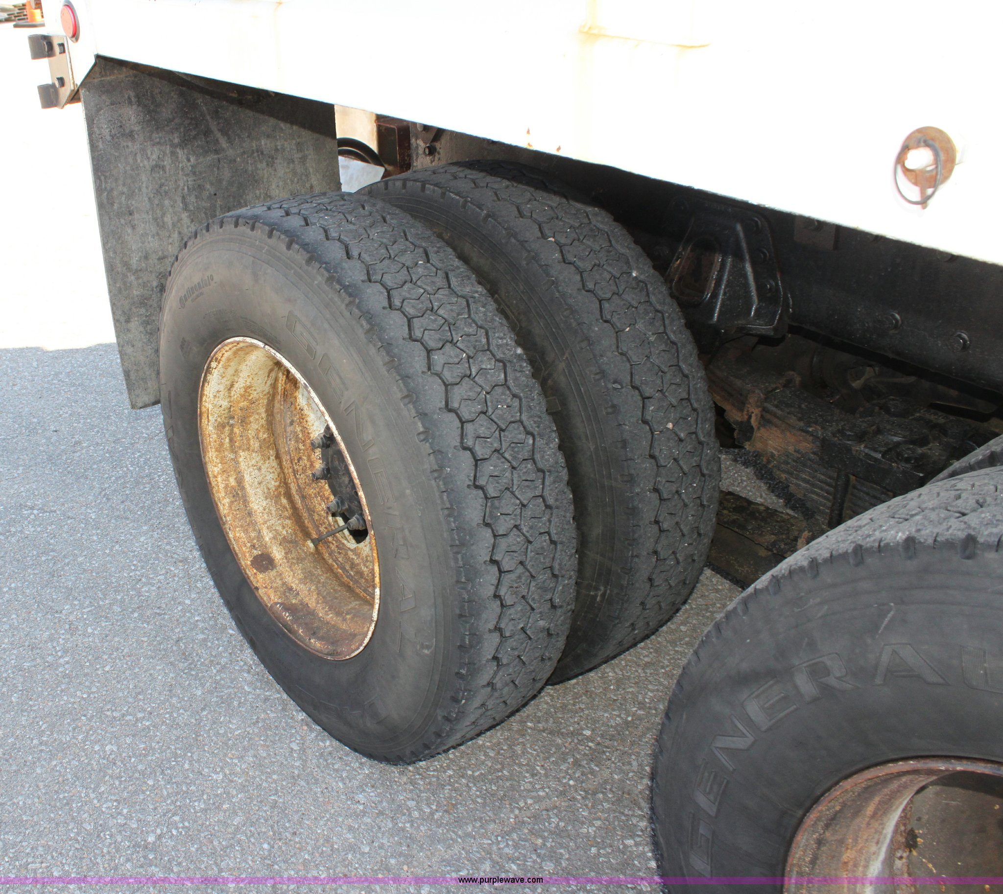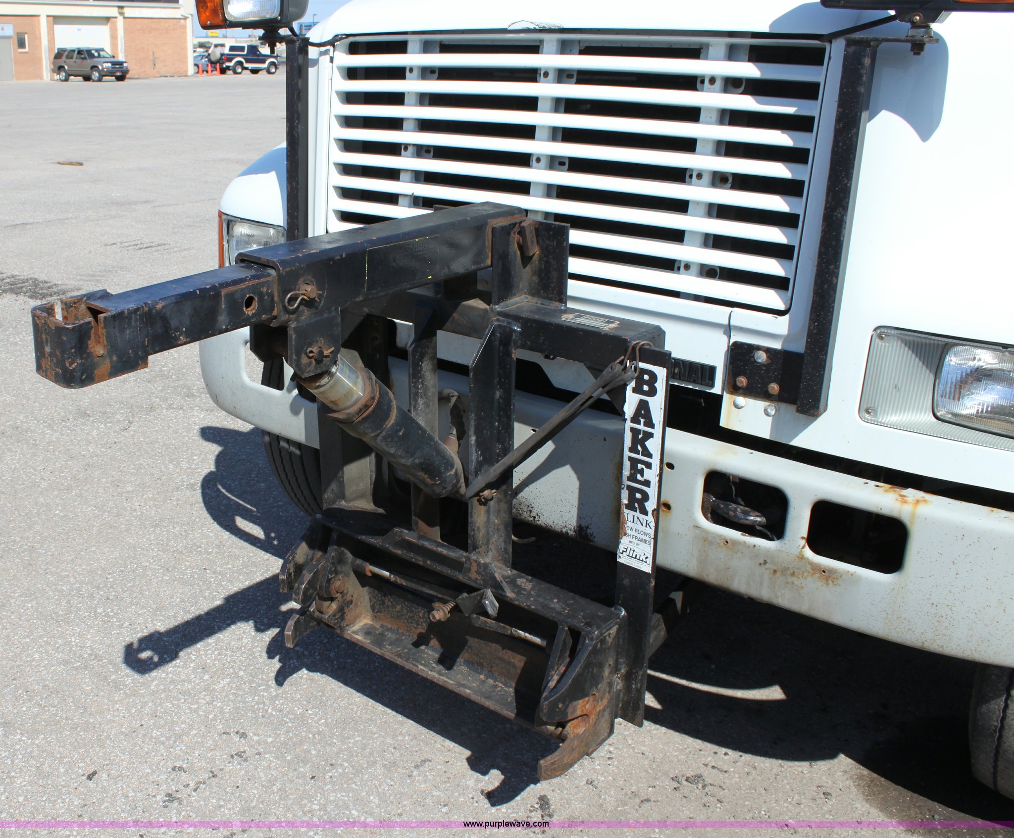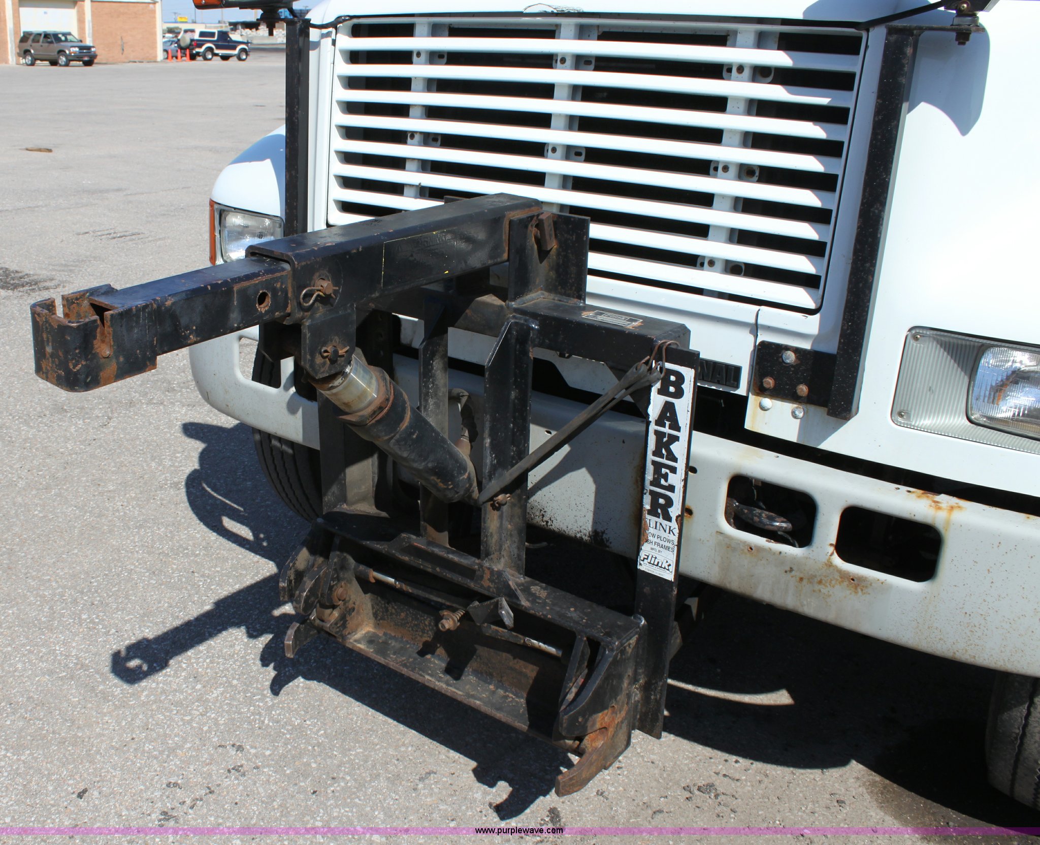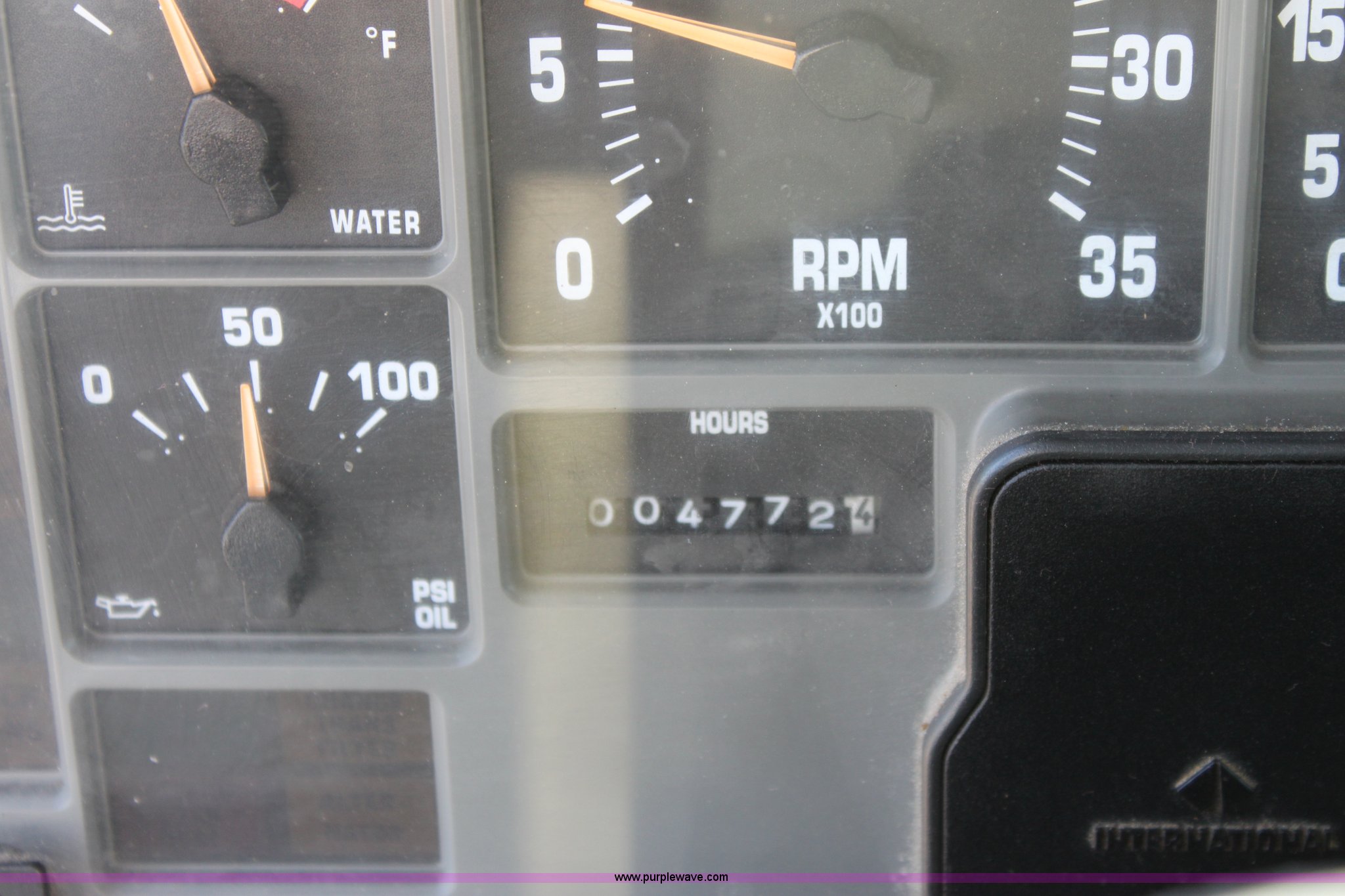 Purple Wave is selling a used Construction Dump Truck in Kansas. This item is a 2000 International F4900 tandem axle dump truck with the following: 81,490 miles on odometer, 4,772 hours on meter, Navistar DT530 8.7L diesel engine, Allison automatic transmission, AC and heat, AM/FM/Cassette, Heated mirrors, Cruise, Power windows, Suspension seat, Chelsea PTO, Locking power divider, Prodigy brake controller, Force spreader controls, In-cab plow controls, Air operated end gate, Flink stainless steel spreader, Air brakes, Rear hydraulic remotes, Pintle hitch, Trailer wiring, 295/75R22.5 tires, Motorola radio not included, Equip# 2046